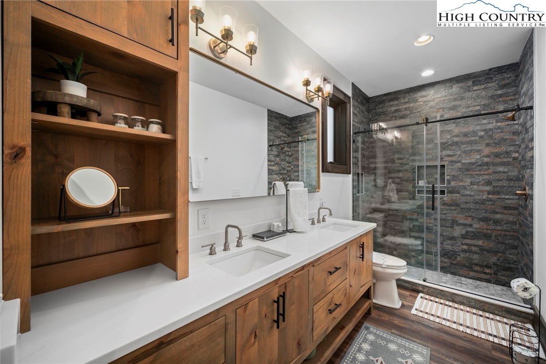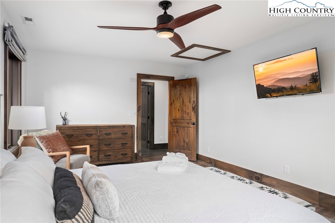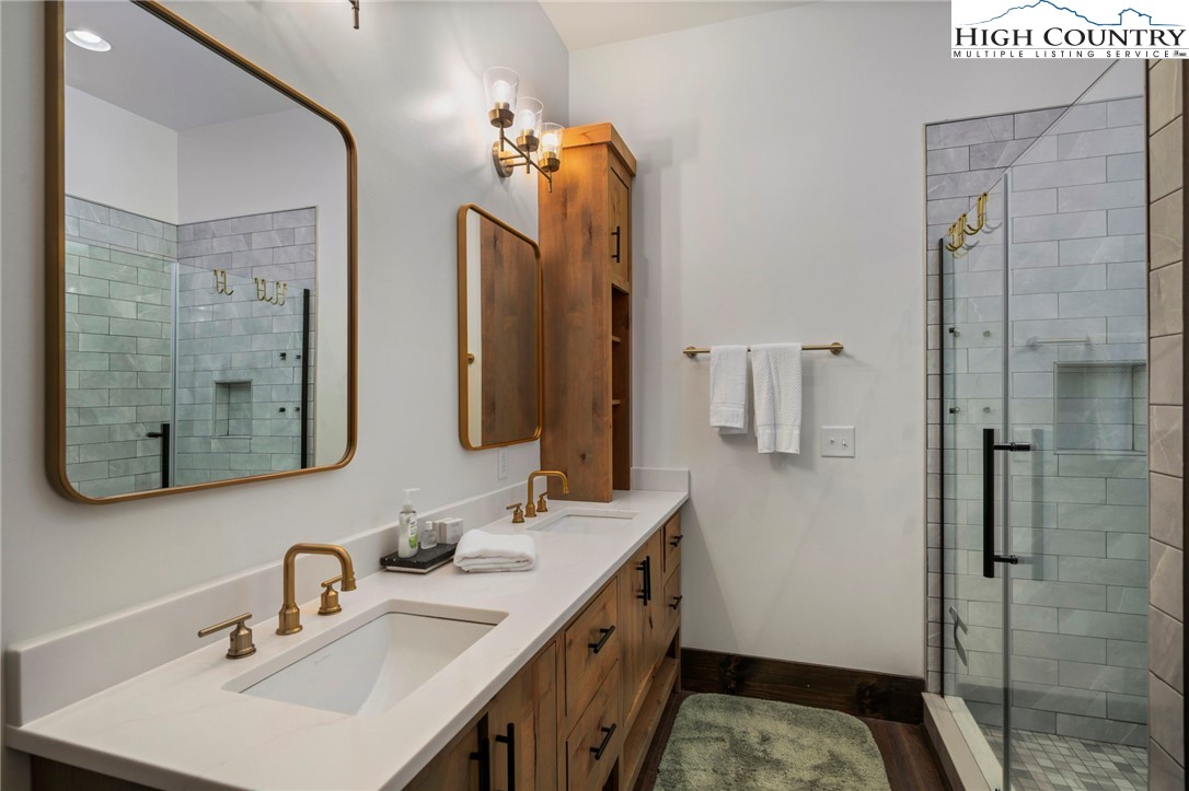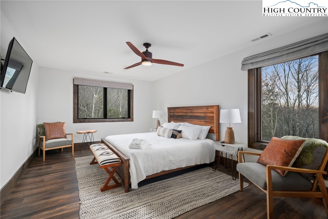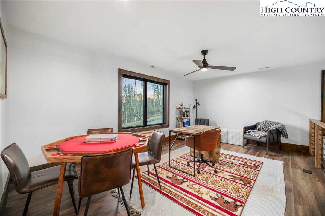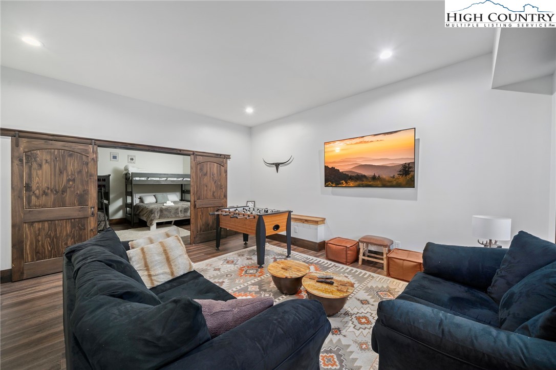Welcome to Dark Horse Lodge, a beautifully crafted 2023-built home in the highly sought-after Lodges at Eagles Nest. Offering more than 2,800 square feet of luxury living space and sold fully furnished, this creekside retreat blends modern comfort with timeless mountain charm and stands out as one of the best values in the community at $424 per square foot. The main level features a stunning open-concept layout with a cathedral-ceiling great room anchored by a floor-to-ceiling stone fireplace, a chef’s kitchen with a striking rock backsplash and oversized island, a spacious dining area for larger gatherings, and a covered outdoor deck complete with its own fireplace and tranquil wooded views. The primary suite is also on this level and offers generous closet space and a beautifully finished en suite bath. Upstairs, a large loft provides an ideal space for lounging, gaming, or working, along with an additional sleeping area and full bathroom. The lower level is designed for relaxation and entertainment, featuring a family room that opens to a second expansive deck with a hot tub and seating area, along with a bedroom, a bunk room, and another full bath. Although listed as a two-bedroom home, there are 4 sleeping areas, allowing it to sleep up to twelve comfortably, which has contributed to its strong vacation-rental performance with Carolina Cabin Rentals. Owners also enjoy access to Eagles Nest’s exceptional amenities, including hiking and ATV trails, disc golf, tennis and pickleball courts, pavilions, and year-round activities. Whether relaxing by the fire, soaking in the hot tub, or enjoying the peaceful natural surroundings, Dark Horse Lodge delivers an unforgettable mountain experience in every season. Inquire today for details.