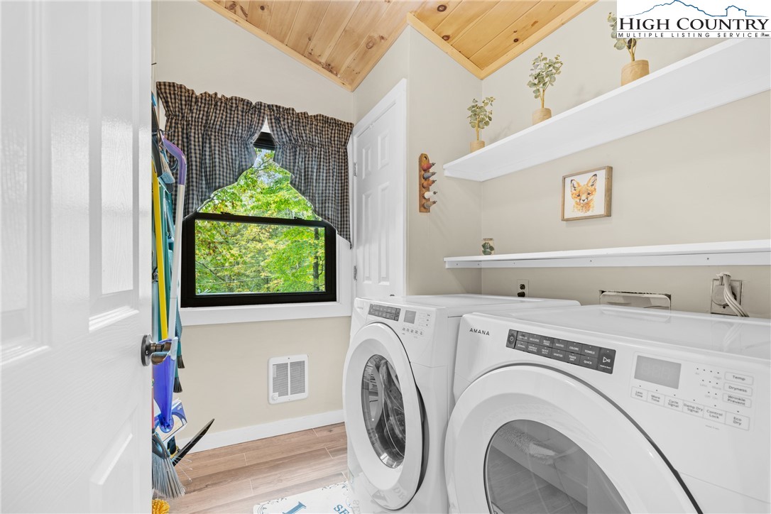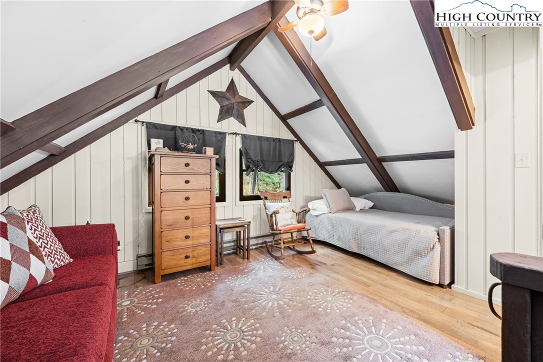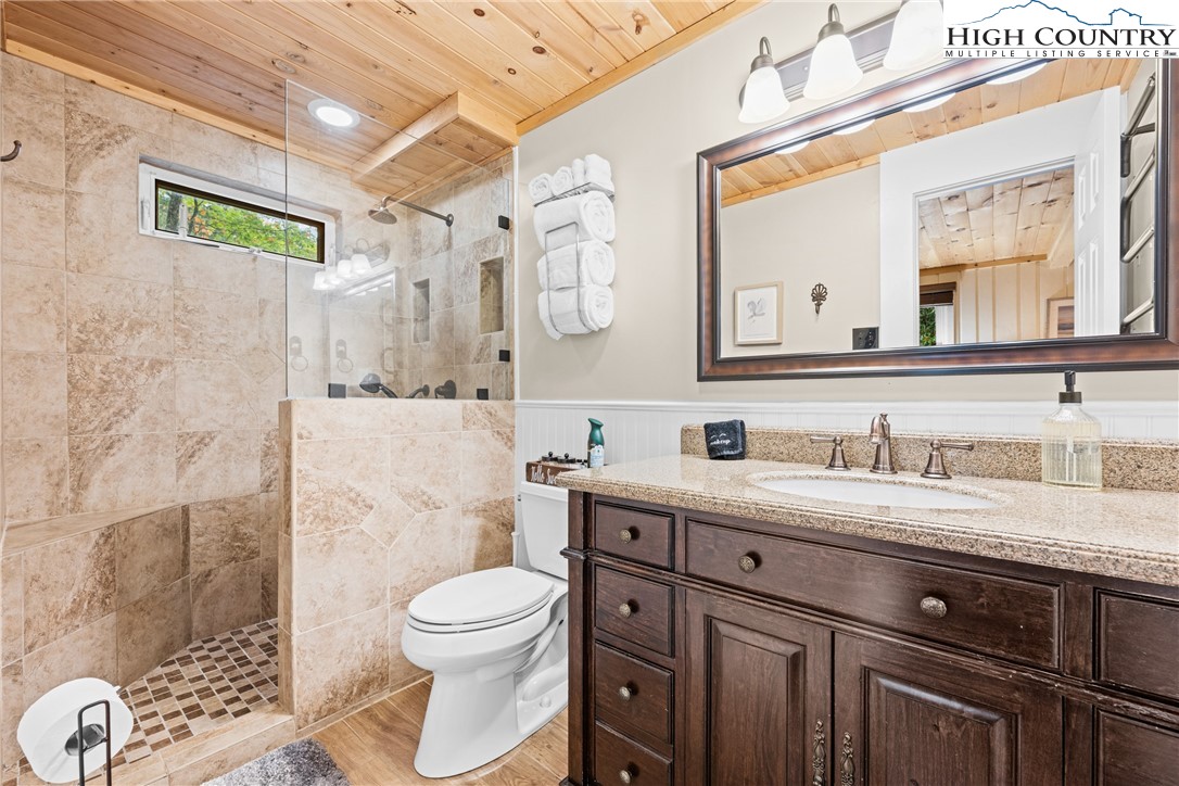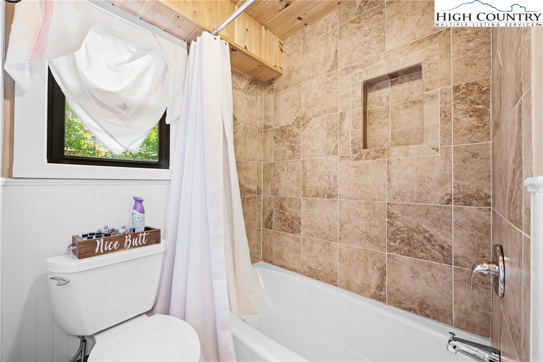 Experience the pinnacle of Beech Mountain living at Stay La Vie, an exceptional 3 BEDROOM - 3 BATH beautifully updated home where luxury and seclusion converge. Nestled on 1.95 private wooded acres, this home delivers the peaceful mountain escape you've been dreaming of and over 1500 sq ft of outdoor decking! Step inside and be greeted by the warm elegance of the main floor. Soaring vaulted tongue-and-groove ceilings crown the spacious family room highlighted by a gorgeous stone gas log fireplace and rustic wood flooring. The adjacent dining area flows seamlessly into the gourmet Chef's Kitchen with exposed wooden beams, a gas range, copper farmhouse sink & a 2nd gas log fireplace perfect for setting the mood for entertaining. The main-level primary suite offers a serene retreat, featuring a spa-inspired bathroom with a walk-in shower. The interior flow is matched by the exterior's appeal with 2 covered rear decks perfect spots for relaxation. Guest accommodations are thoughtfully arranged across two levels: a charming upper-level loft with a private en-suite bath and a lower-level suite that includes a full bath plus flexible bonus room (furnished with a twin bed). The home is offered beautifully furnished with minor exclusions, making your transition to mountain living immediate and effortless. Also you can purchase a membership to the Beech Mountain Club which offers a wealth of member only amenities including golf, fine dining, pickleball/tennis courts, a fitness center and outdoor pool. Stay La Vie is a true Beech Mountain gem that will leave you in awe! Don’t miss your chance to call this stunning property home—this is mountain living at its finest!