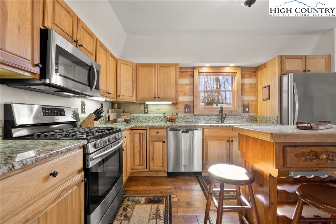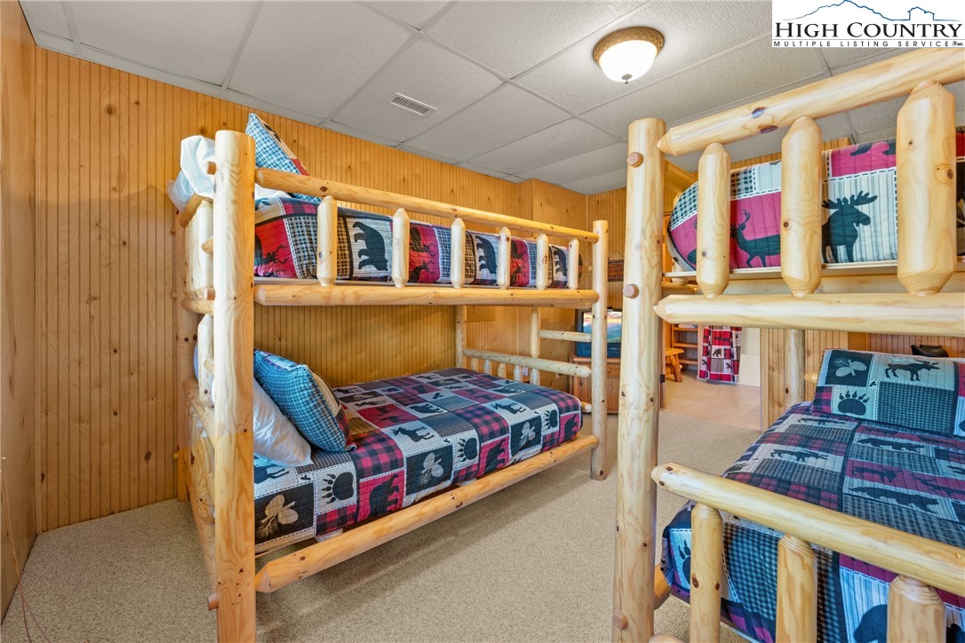 Meticulously maintained and beautifully furnished, this classic log cabin offers 3 bedrooms, 3 bathrooms, mountain views, and an ideal setting in the gated community of River Ridge—just minutes from the New River. With paved access, plenty of parking, and rental history, this property is perfectly suited as a second home, investment property, or full-time mountain retreat. Step inside to a warm and inviting living room featuring vaulted ceilings, exposed beams, and a propane stone fireplace. The main level, upper level, and lower level each offer a bedroom and full bathroom, providing exceptional privacy for guests. The upstairs loft offers additional lounging or office space, while the finished basement (completed approximately 20 years ago without a permit - 765 sq ft) includes a game room for year-round enjoyment. Outdoor living spaces include both covered and open decking—perfect for taking in the mountain views, dining al fresco, or relaxing after a day on the river. The home has been thoughtfully updated over the years, with major improvements including: Roof replacement in 2023, Exterior staining in 2023, Propane furnace replaced in 2022, Gutters with screens added in 2019, Heat pump (central air conditioning) installed in 2015 & new hot water heater & UV light filtration system added in 2025. The cabin is located a short drive to Boone, where you’ll enjoy the best of the High Country—renowned for its cool summers, vibrant four-season living, award-winning restaurants, Appalachian State University, outdoor recreation, and charming downtown atmosphere. From floating the New River to exploring the Blue Ridge Parkway, accessing ski slopes, hiking trails, and local markets, this location offers a true mountain lifestyle with the convenience of nearby town amenities. Offered fully furnished and turn-key, this log cabin is ready for its next owner to enjoy the peace, privacy, and natural beauty of River Ridge. A rare opportunity to own a well-cared-for mountain getaway with rental income potential and unbeatable proximity to the New River.