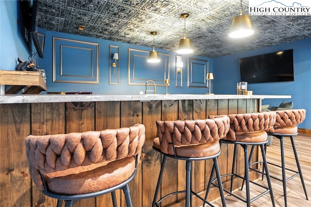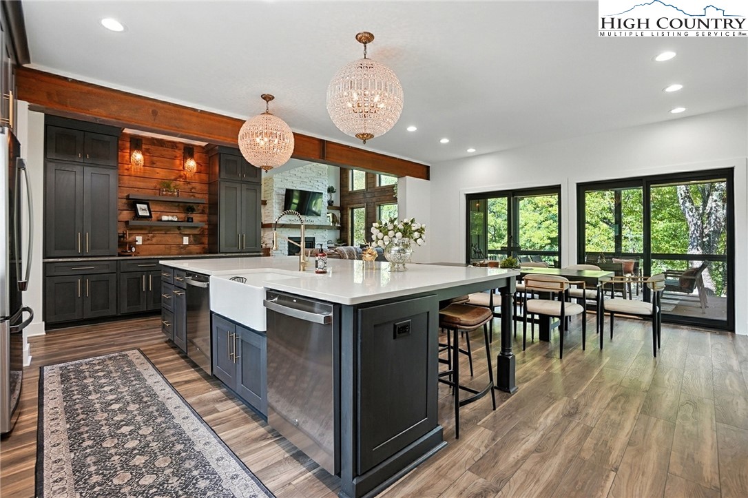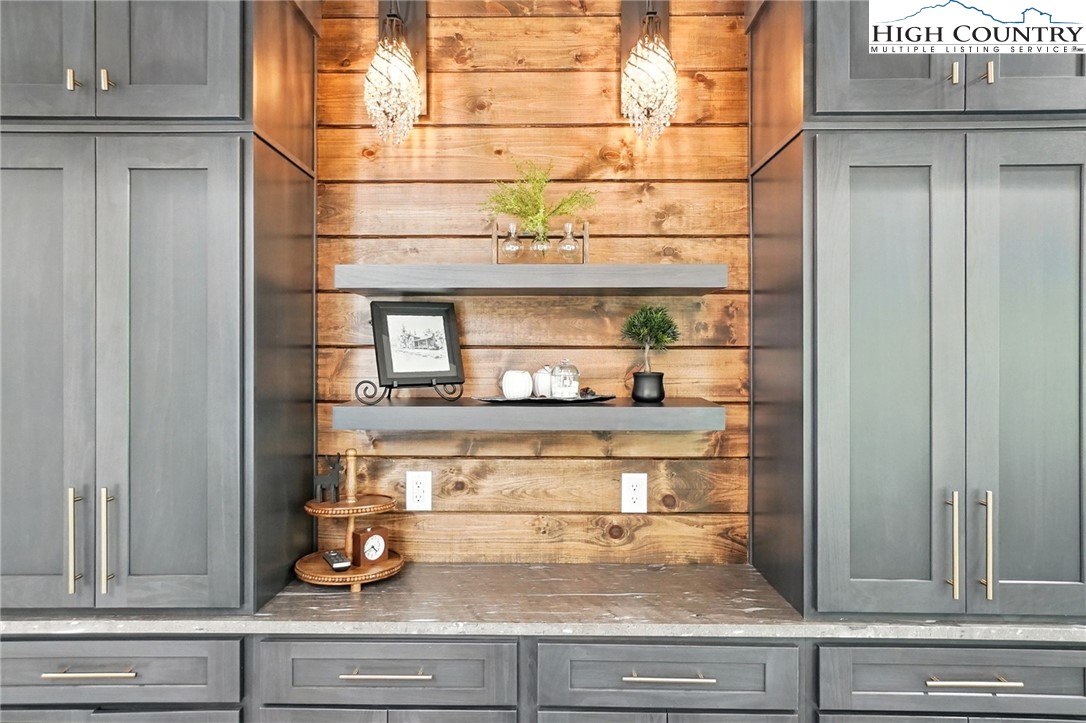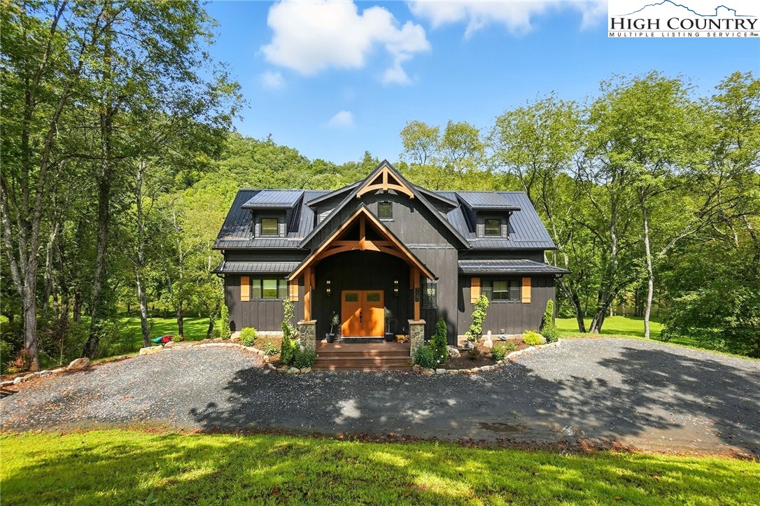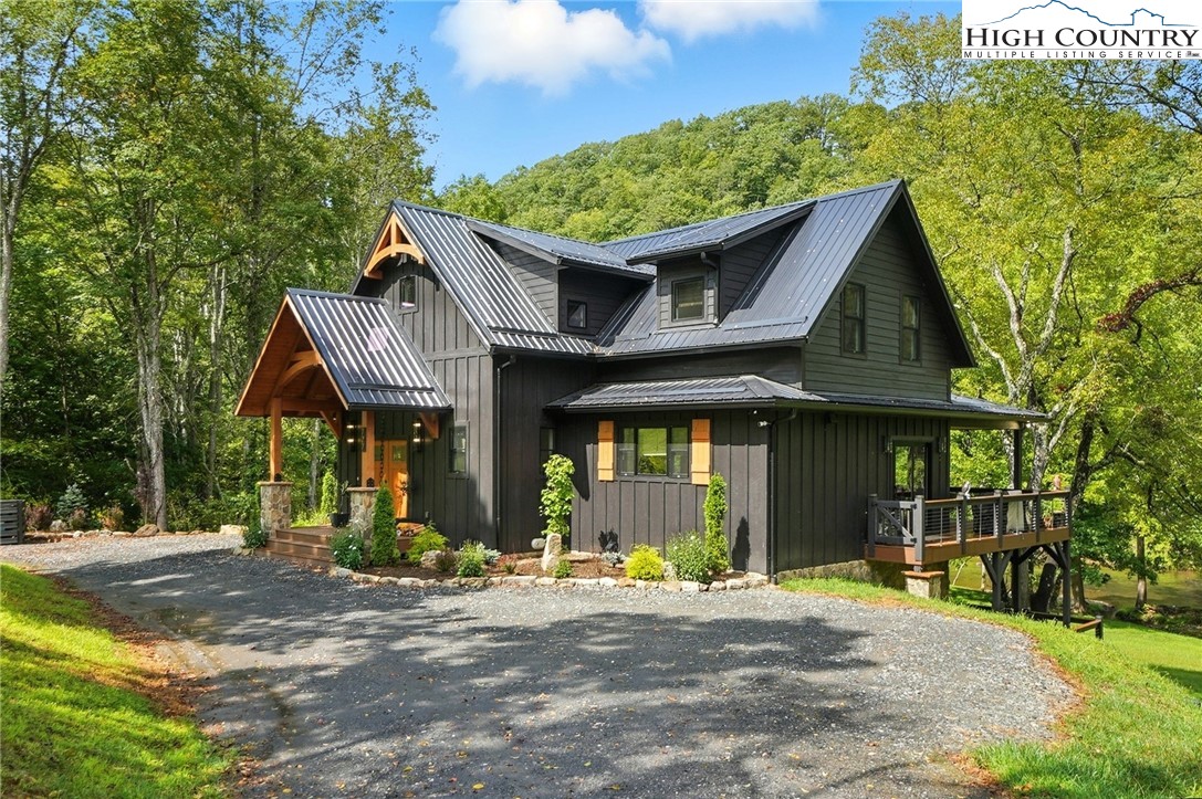 Step inside to discover the modern finishes and thoughtful details that adorn this home, from the open concept layout to the abundance of natural light that shines through the expansive windows overlooking the New River! The heart of the home is the contemporary kitchen, complete with sleek appliances, Quartz countertops, custom cabinetry, a coffee bar, accent wall, and ample storage space for all your culinary needs. The primary bedroom is on the main level with wood accent beams, walk-in closet, and views of the river. Primary bathroom continues the modern theme of the home with a floor-to-ceiling tiled shower, dual vanities, and elegant fixtures. On the third level of the home, you will find two large bedrooms with en-suite bathrooms and a loft area that can be used for a home office. Entertain in the spacious living area or take the festivities outdoors to the 1.5 acre lot and large wraparound deck. Unwind in the evenings in your very own hot tub, creating an oasis of relaxation and breathtaking views of the river and the surrounding mountainside. You may even see a family of deer. For those seeking additional space, the large basement offers more entertainment options with a recreation area and well-equipped bar with a ‘speak easy’ vibe. The bunk room with a full bathroom completes the basement area. Don't miss your chance to make this modern farmhouse property your own personal sanctuary, where peaceful riverside living meets contemporary luxury. Schedule your showing today and start living the lifestyle you've always dreamed of. Property is being sold fully furnished aside from a few items.