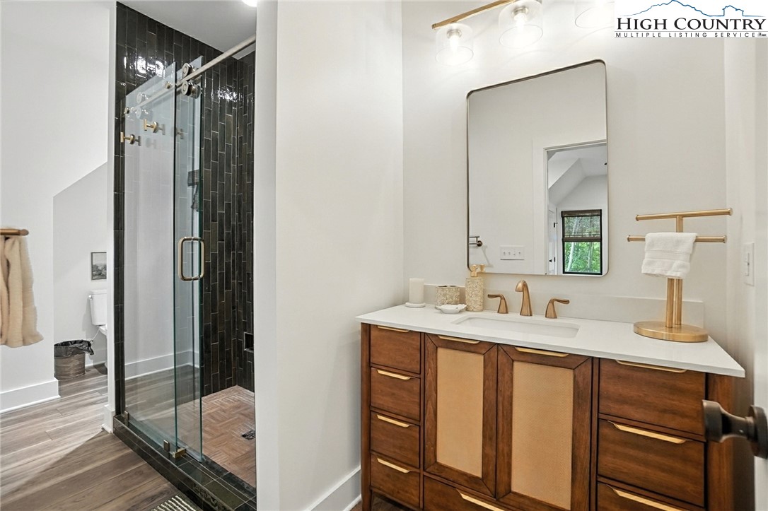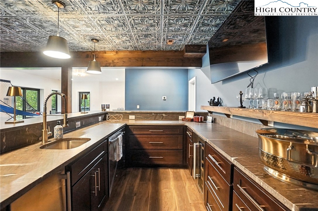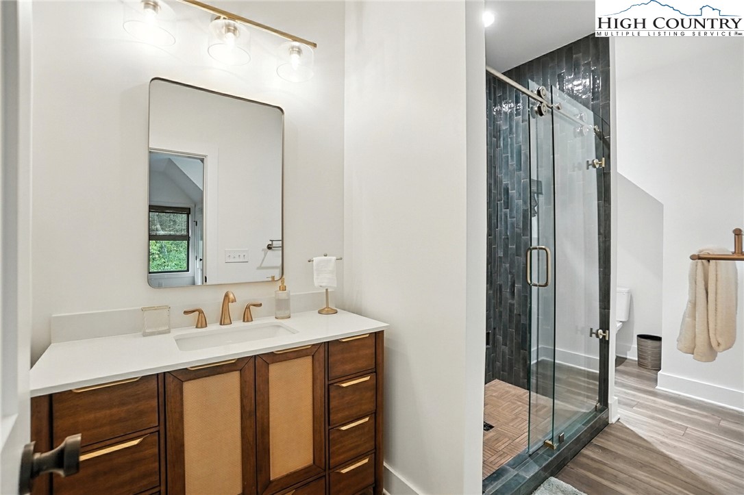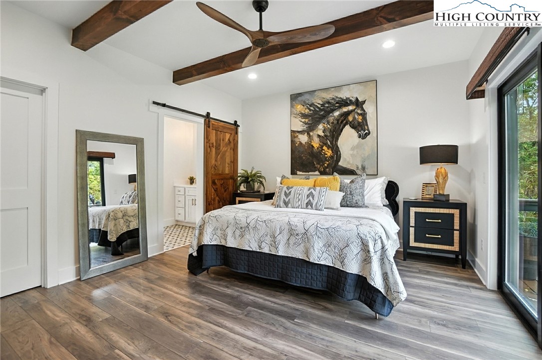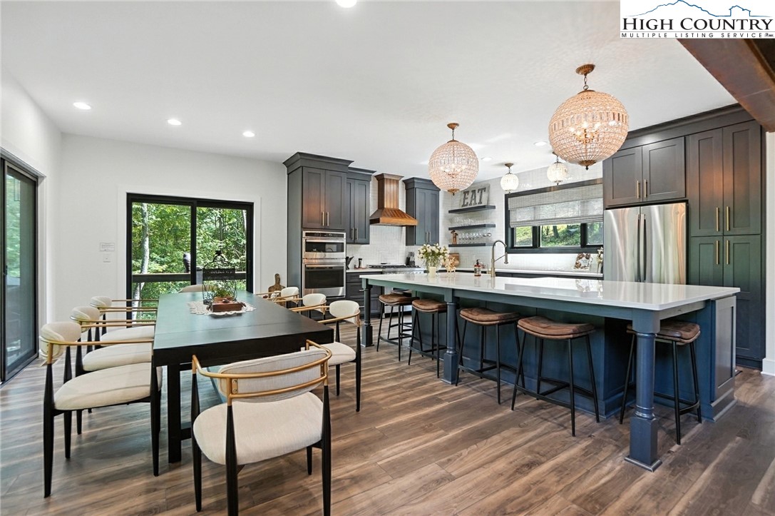 Step inside to discover the modern finishes and thoughtful details that adorn this home, from the open concept layout to the abundance of natural light that shines through the expansive windows overlooking the New River! The heart of the home is the contemporary kitchen, complete with sleek appliances, Quartz countertops, custom cabinetry, a coffee bar, accent wall, and ample storage space for all your culinary needs. The primary bedroom is on the main level with wood accent beams, walk-in closet, and views of the river. Primary bathroom continues the modern theme of the home with a floor-to-ceiling tiled shower, dual vanities, and elegant fixtures. On the third level of the home, you will find two large bedrooms with en-suite bathrooms and a loft area that can be used for a home office. Entertain in the spacious living area or take the festivities outdoors to the 1.5 acre lot and large wraparound deck. Unwind in the evenings in your very own hot tub, creating an oasis of relaxation and breathtaking views of the river and the surrounding mountainside. You may even see a family of deer. For those seeking additional space, the large basement offers more entertainment options with a recreation area and well-equipped bar with a ‘speak easy’ vibe. The bunk room with a full bathroom completes the basement area. Don't miss your chance to make this modern farmhouse property your own personal sanctuary, where peaceful riverside living meets contemporary luxury. Schedule your showing today and start living the lifestyle you've always dreamed of. Property is being sold fully furnished aside from a few items.