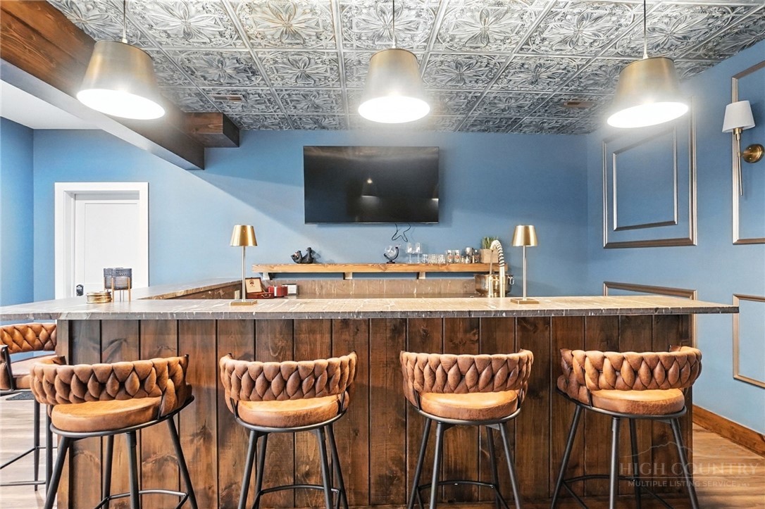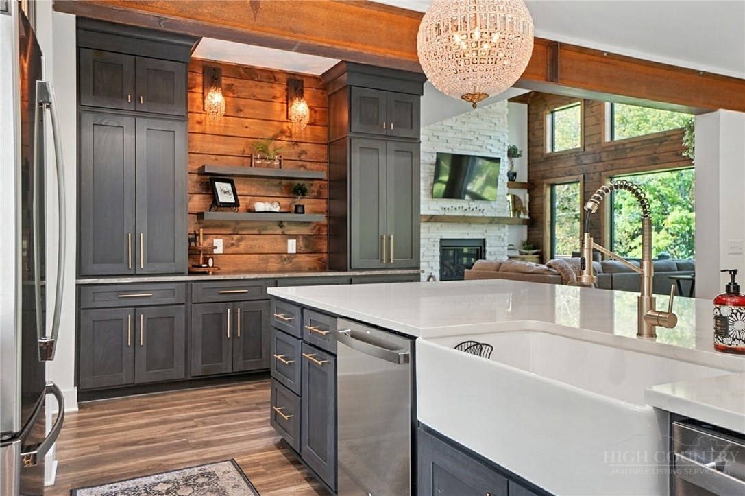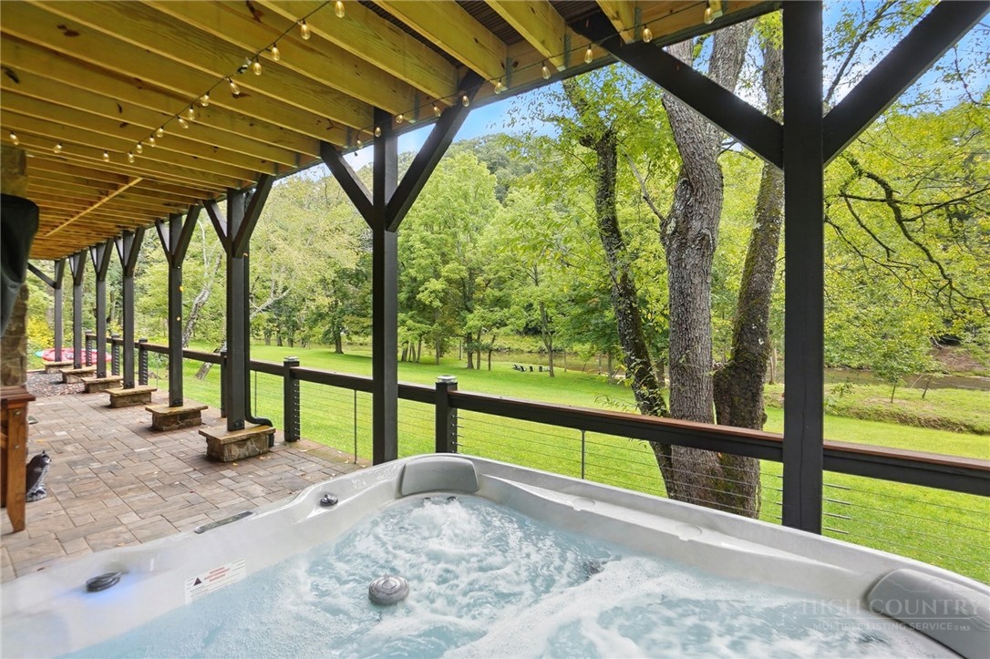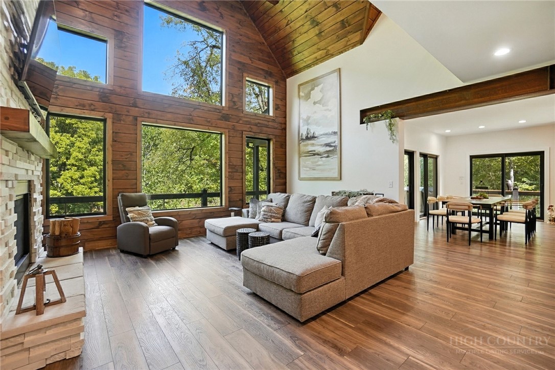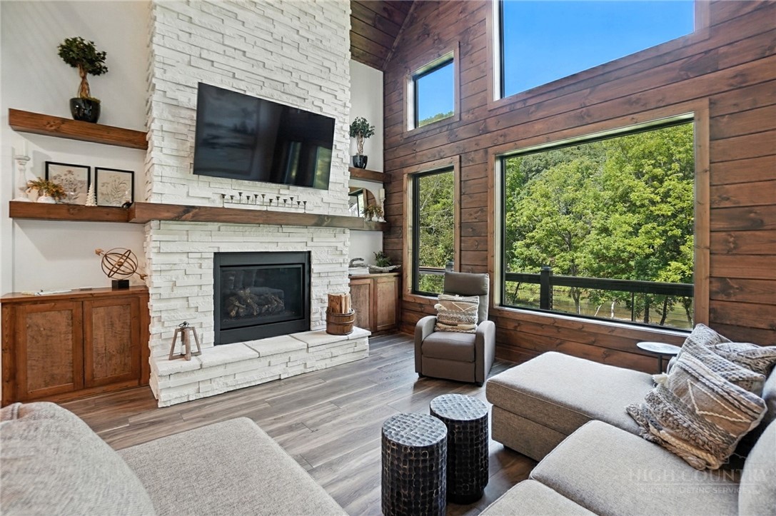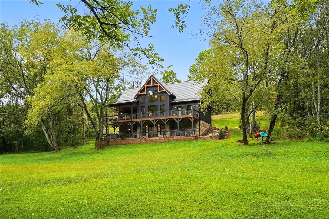 Step inside to discover the modern finishes and thoughtful details that adorn this home, from the open concept layout to the abundance of natural light that shines through the expansive windows overlooking the New River! The heart of the home is the contemporary kitchen, complete with sleek appliances, Quartz countertops, custom cabinetry, a coffee bar, accent wall, and ample storage space for all your culinary needs. The primary bedroom is on the main level with wood accent beams, walk-in closet, and views of the river. Primary bathroom continues the modern theme of the home with a floor-to-ceiling tiled shower, dual vanities, and elegant fixtures. On the third level of the home, you will find two large bedrooms with en-suite bathrooms and a loft area that can be used for a home office. Entertain in the spacious living area or take the festivities outdoors to the 1.5-acre lot and large wraparound deck. Unwind in the evenings in your very own hot tub, creating an oasis of relaxation and breathtaking views of the river and the surrounding mountainside. You may even see a family of deer. For those seeking additional space, the large basement offers more entertainment options with a recreation area and well-equipped bar with a ‘speak easy’ vibe. The bunk room with a full bathroom completes the basement area. Don't miss your chance to make this modern farmhouse property your own personal sanctuary, where peaceful riverside living meets contemporary luxury. Schedule your showing today and start living the lifestyle you've always dreamed of. Property is being sold fully furnished aside from a few items.