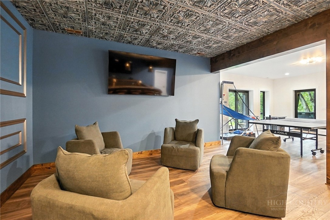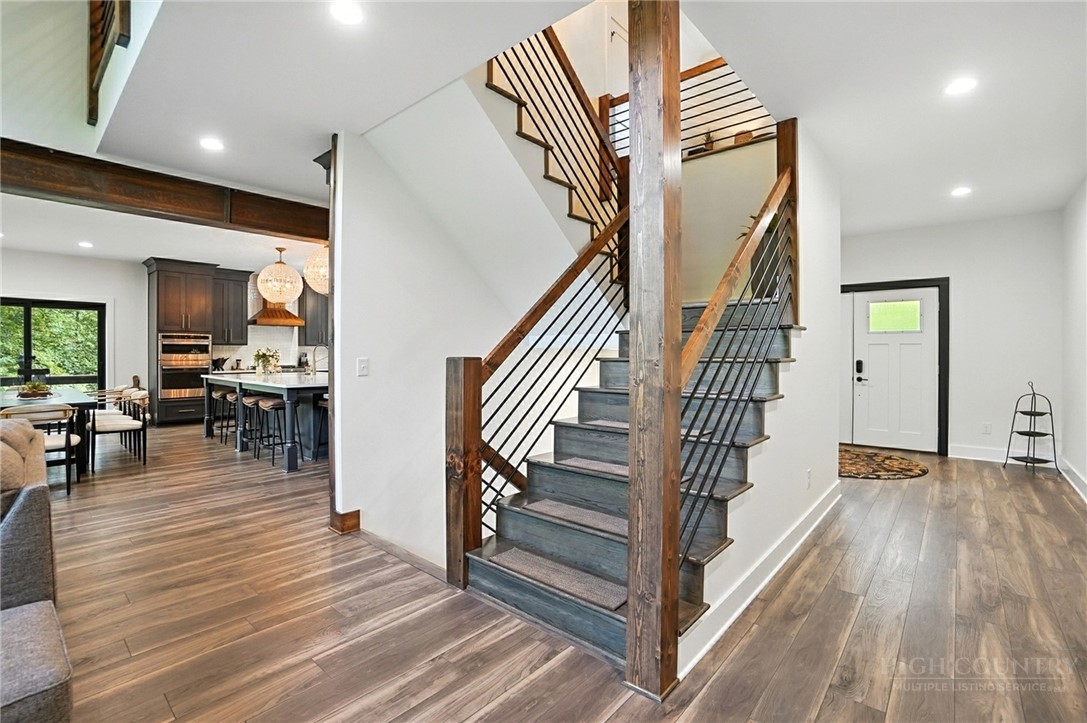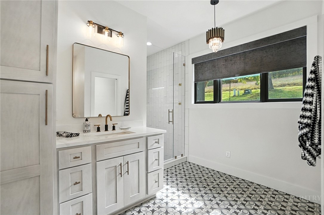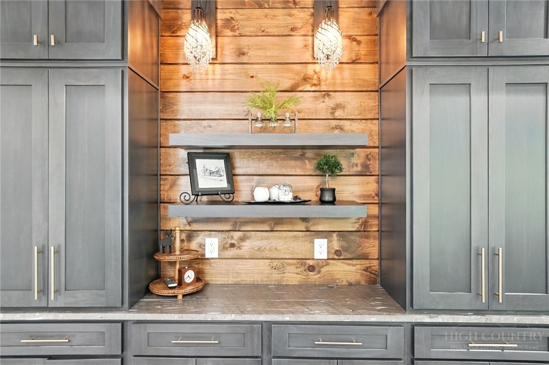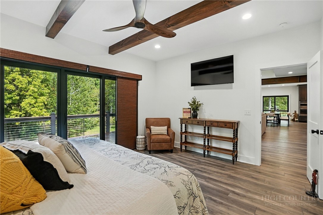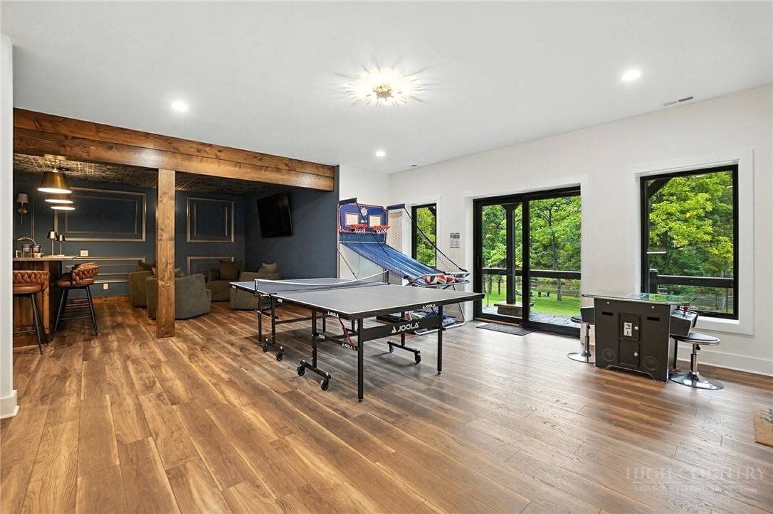 Step inside to discover the modern finishes and thoughtful details that adorn this home, from the open concept layout to the abundance of natural light that shines through the expansive windows overlooking the New River! The heart of the home is the contemporary kitchen, complete with sleek appliances, Quartz countertops, custom cabinetry, a coffee bar, accent wall, and ample storage space for all your culinary needs. The primary bedroom is on the main level with wood accent beams, walk-in closet, and views of the river. Primary bathroom continues the modern theme of the home with a floor-to-ceiling tiled shower, dual vanities, and elegant fixtures. On the third level of the home, you will find two large bedrooms with en-suite bathrooms and a loft area that can be used for a home office. Entertain in the spacious living area or take the festivities outdoors to the 1.5-acre lot and large wraparound deck. Unwind in the evenings in your very own hot tub, creating an oasis of relaxation and breathtaking views of the river and the surrounding mountainside. You may even see a family of deer. For those seeking additional space, the large basement offers more entertainment options with a recreation area and well-equipped bar with a ‘speak easy’ vibe. The bunk room with a full bathroom completes the basement area. Don't miss your chance to make this modern farmhouse property your own personal sanctuary, where peaceful riverside living meets contemporary luxury. Schedule your showing today and start living the lifestyle you've always dreamed of. Property is being sold fully furnished aside from a few items.