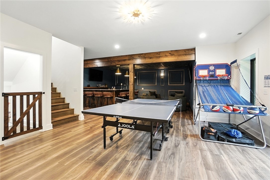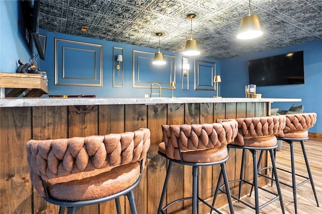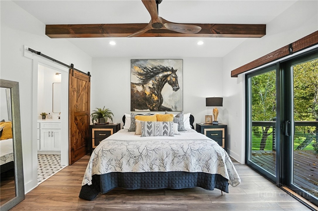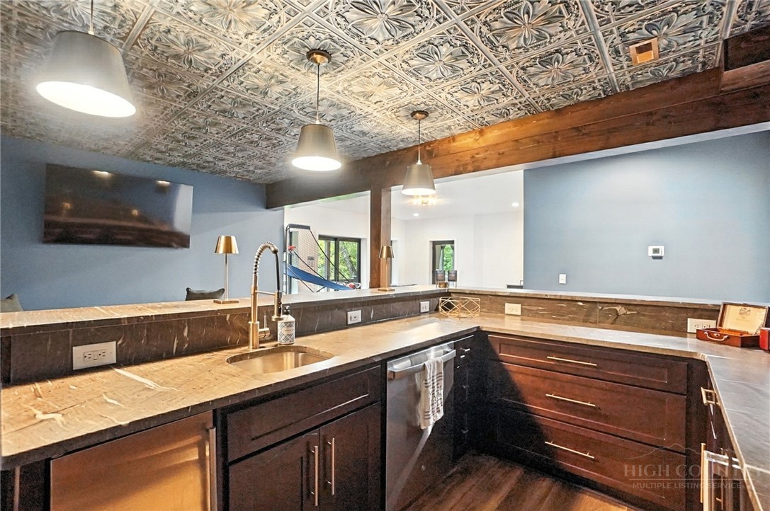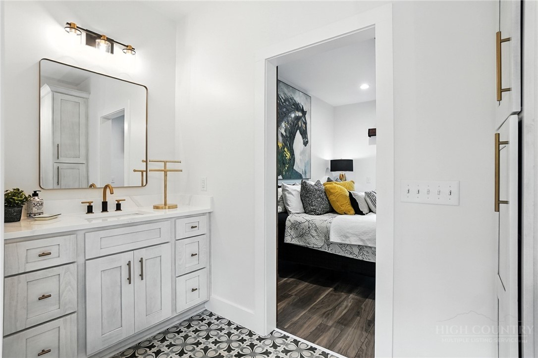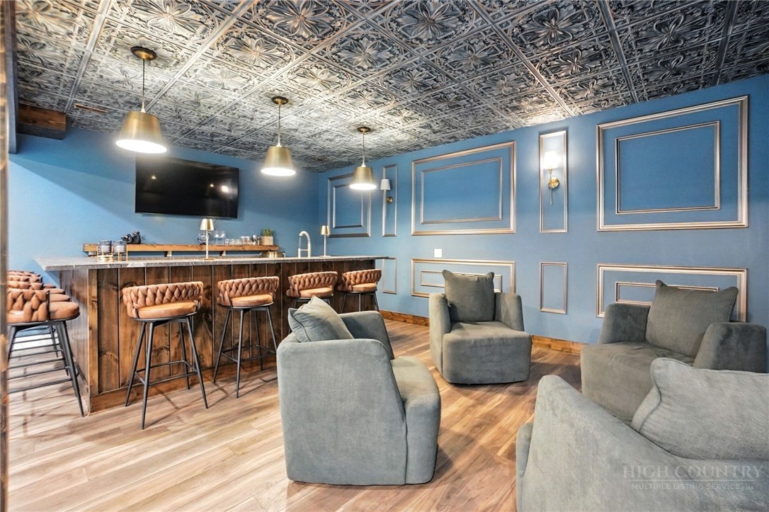 Step inside to discover the modern finishes and thoughtful details that adorn this home, from the open concept layout to the abundance of natural light that shines through the expansive windows overlooking the New River! The heart of the home is the contemporary kitchen, complete with sleek appliances, Quartz countertops, custom cabinetry, a coffee bar, accent wall, and ample storage space for all your culinary needs. The primary bedroom is on the main level with wood accent beams, walk-in closet, and views of the river. Primary bathroom continues the modern theme of the home with a floor-to-ceiling tiled shower, dual vanities, and elegant fixtures. On the third level of the home, you will find two large bedrooms with en-suite bathrooms and a loft area that can be used for a home office. Entertain in the spacious living area or take the festivities outdoors to the 1.5-acre lot and large wraparound deck. Unwind in the evenings in your very own hot tub, creating an oasis of relaxation and breathtaking views of the river and the surrounding mountainside. You may even see a family of deer. For those seeking additional space, the large basement offers more entertainment options with a recreation area and well-equipped bar with a ‘speak easy’ vibe. The bunk room with a full bathroom completes the basement area. Don't miss your chance to make this modern farmhouse property your own personal sanctuary, where peaceful riverside living meets contemporary luxury. Schedule your showing today and start living the lifestyle you've always dreamed of. Property is being sold fully furnished aside from a few items.