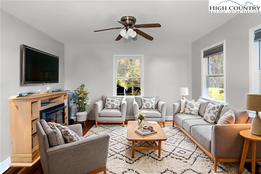 Only 3 miles to Downtown Blowing Rock: While technically located in Lenoir, this property is just minutes from Downtown Blowing Rock and offers the Blowing Rock lifestyle, amenities, and rental demand buyers are searching for. Situated on 3 unrestricted acres, this property lends itself as a primary residence, second home, or short-term rental investment property. This three-bedroom, two-and-a-half-bath home features desirable one-level living with easy entry, an oversized garage, and a functional layout well suited for vacation rental use or personal enjoyment. The open-concept main level is designed to highlight the surrounding mountain views and includes a spacious great room, freestanding propane fireplace, and sliding glass doors that connect indoor and outdoor living. The primary suite, two guest bedrooms, full guest bath, and main-level laundry room are all conveniently located on the main floor. The lower level offers additional flexible space, including a bunk room, half bath, and workshop creating options for guest accommodations, recreation, or rental functionality. The basement closet, bathroom, and bunk room were finished without permits. Outdoor living is a standout feature with a wraparound, partially covered porch, to enjoying sunrises, crisp mountain air, fall color, and year-round Blue Ridge Mountain views. Additional highlights include a radon mitigation system, recent interior and exterior paint, portable generator, and the property is being offered partially furnished, with the option to purchase workshop tools separately. A local rental management company estimates $25,000 to $45,000 in gross annual rental income, making this an attractive opportunity for buyers seeking investment property near Blowing Rock. Some photos have been virtually staged. See the documents section for a list of additional improvements.