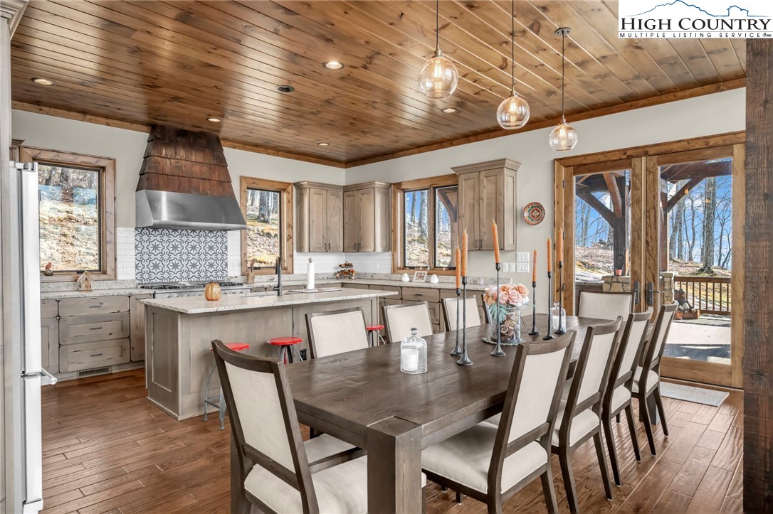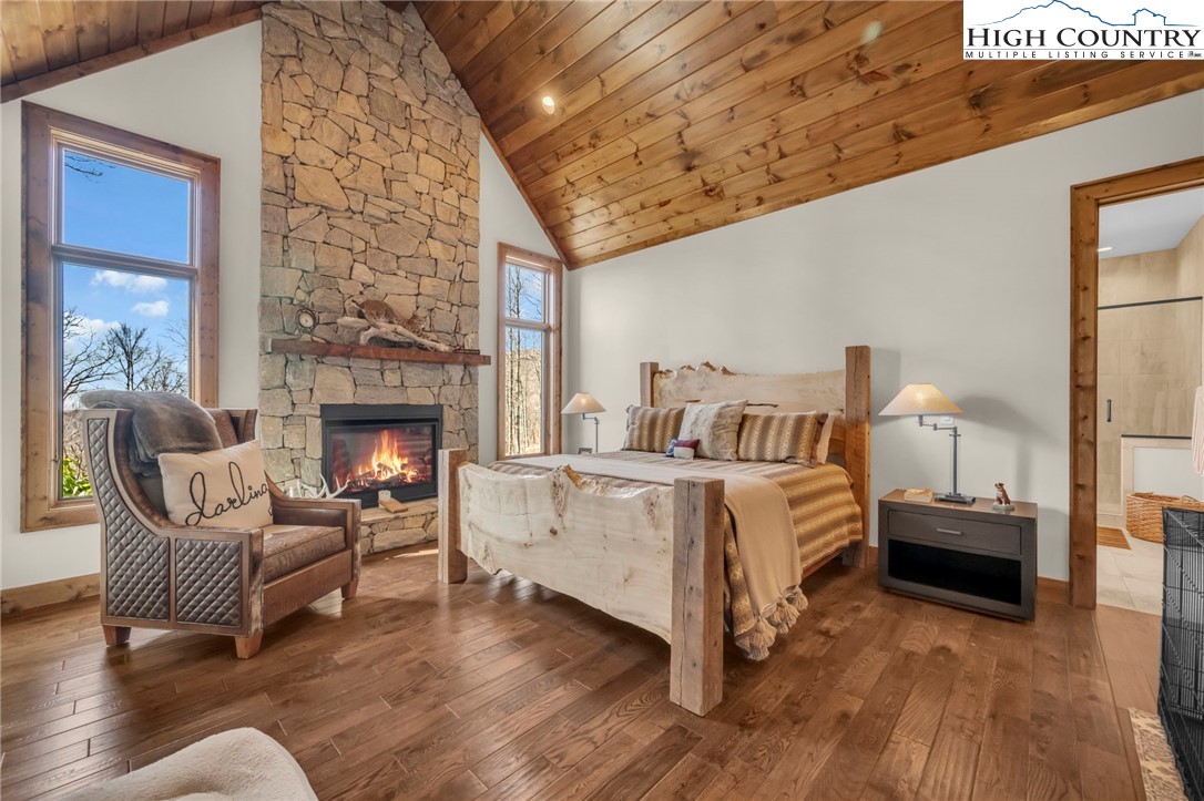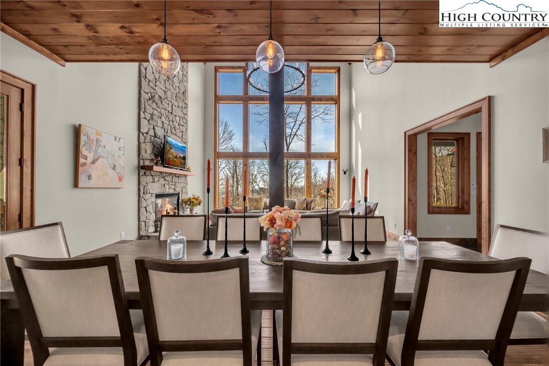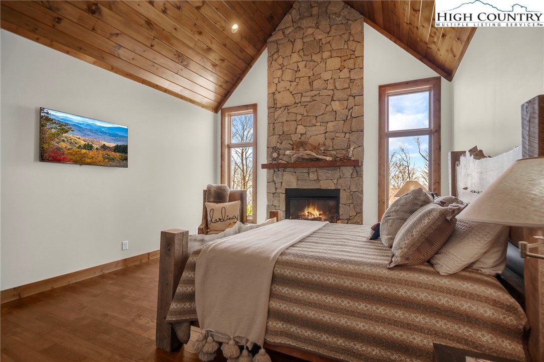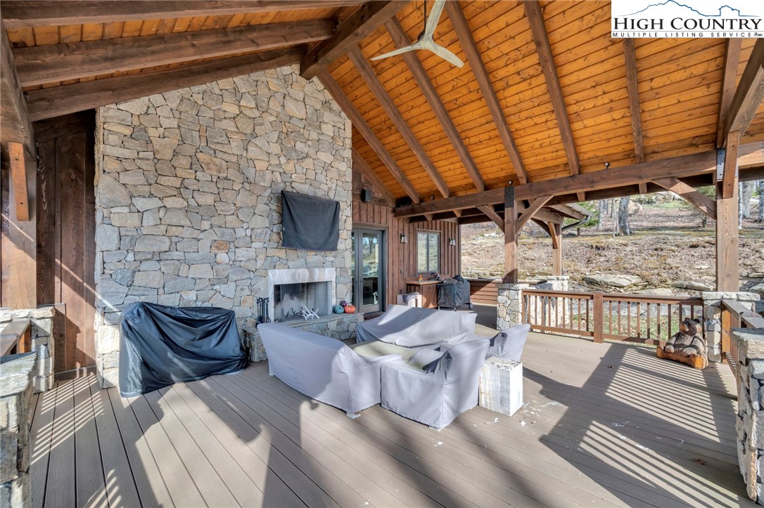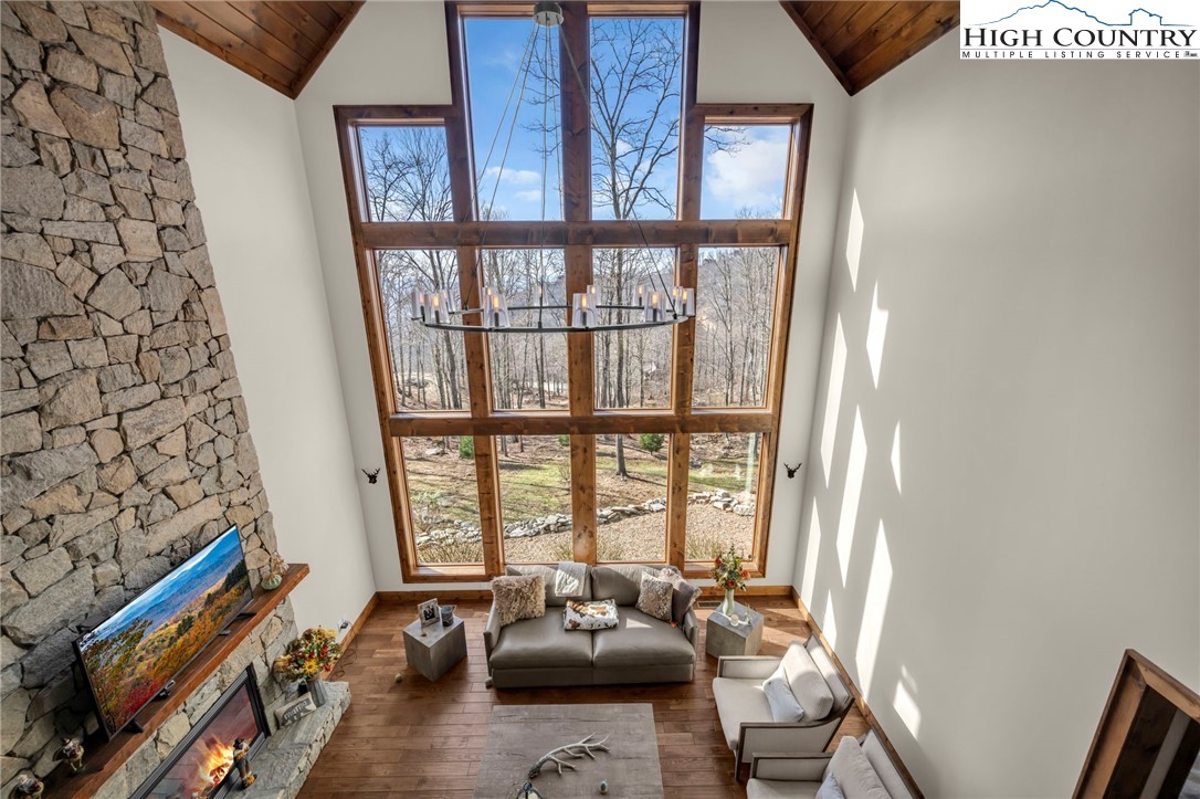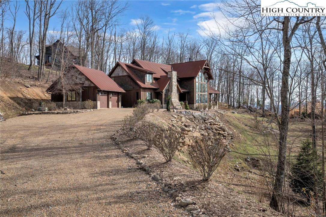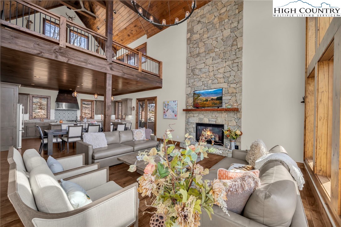 Nestled within the prestigious Lodges at Eagles Nest, this exceptional custom mountain home built by Wheels Contracting embodies the perfect balance of rustic elegance and modern comfort. Thoughtfully designed to capture the beauty of its natural surroundings, this 3-bedroom, 3.5-bath residence offers an elevated mountain living experience in one of North Carolina’s most sought-after communities. Step inside to a stunning great room featuring soaring ceilings, expansive windows, and a striking floor-to-ceiling stone fireplace, creating a warm and inviting atmosphere filled with natural light. Rich wood finishes, exposed beams, and refined craftsmanship throughout showcase the quality and attention to detail synonymous with Wheels Contracting. The open-concept layout flows seamlessly into a well-appointed kitchen, complete with custom cabinetry, stone countertops, and a spacious island—perfect for entertaining or quiet evenings at home. The primary suite serves as a private retreat, highlighted by its own cozy fireplace and a spa-inspired en-suite bath. Each additional bedroom offers generous space and private baths, ensuring comfort for family and guests alike. Outdoor living is equally impressive, featuring a covered deck with a wood-burning fireplace—ideal for year-round enjoyment, whether you’re taking in crisp mountain air or relaxing under the stars. Adding both convenience and flexibility, the property includes a detached two-car garage, providing ample storage for vehicles, gear, or recreational equipment. Located within The Lodges at Eagles Nest, residents enjoy access to premier amenities including ATV and hiking trails, sports courts, dining, and year-round community events—all surrounded by the breathtaking Blue Ridge Mountains. This home is more than a residence—it’s a mountain lifestyle, offering privacy, luxury, and adventure in one remarkable setting