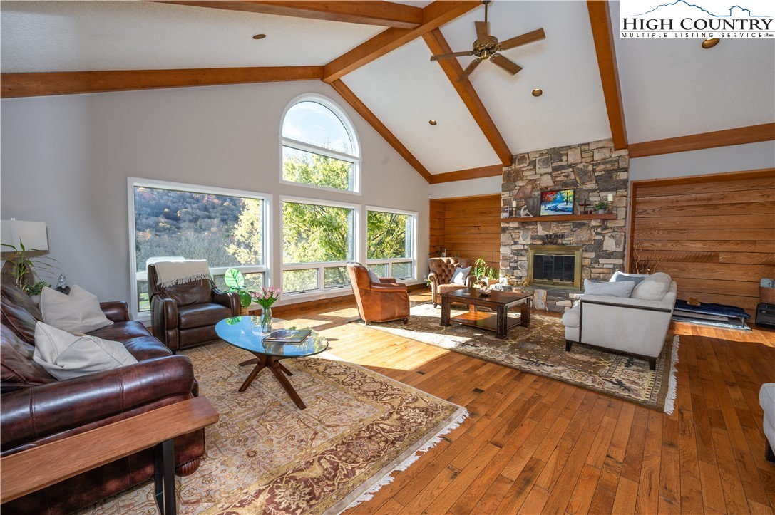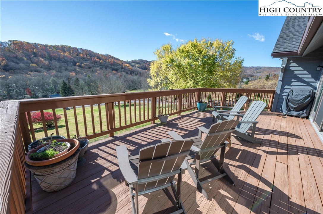 Downtown Banner Elk Retreat with Panoramic Mountain Views & Dual Living Spaces Discover this rare opportunity in the heart of Banner Elk, just one minute from downtown, perfectly positioned on 2.66 acres overlooking Lees-McRae College, Grandfather Mountain, and the surrounding Blue Ridge peaks. This beautifully manicured property sits atop a gentle hill, offering privacy, rolling green space, and the peaceful sounds of nature — all while being just moments from local dining, shops, and outdoor adventures. It’s common to spot deer, black bear, and native wildlife roaming the property, and a hiking trail at the edge of the land connects to a stream leading directly to the Lees-McRae duck pond, adding to the tranquil mountain charm. The home is thoughtfully designed with two distinct living spaces — think large family home, a multi-generational retreat, or a turnkey short-term rental investment. Main Level (Primary Residence) Enter through the welcoming front porch into a spacious living room with vaulted ceilings, a stone fireplace, and sweeping mountain views from the back porch. The main level includes: • 3 bedrooms • Kitchen and dining area • Walk-in pantry • Sauna — envision après-ski relaxation Upper Level (Short-Term Rental Suite) With a separate entrance and dedicated parking, the upstairs is fully equipped as a separate rental or guest suite. Features include: • Open living room and kitchen • Small office/flex space • 3 bedrooms, each with en-suite bathroom Outside, enjoy a storage shed for tools and gear, plus ample space for gardens or outdoor living areas. Whether you’re seeking a peaceful mountain home, a multi-family getaway, or a revenue-producing property, this Banner Elk gem offers the perfect balance of seclusion, scenery, and convenience.