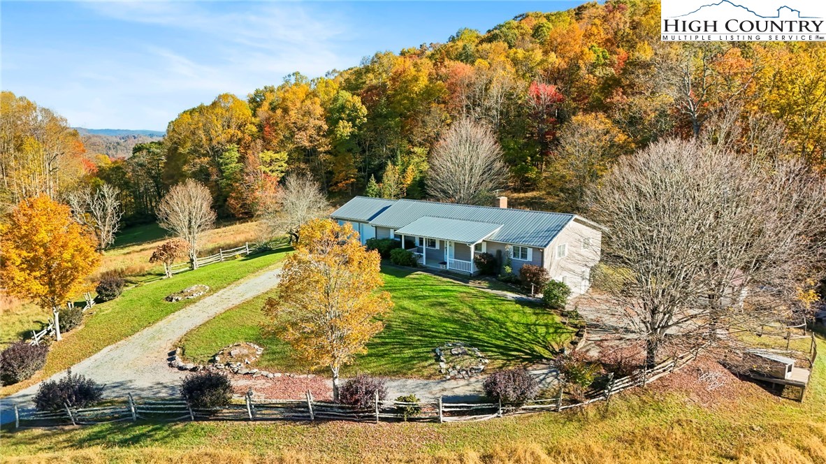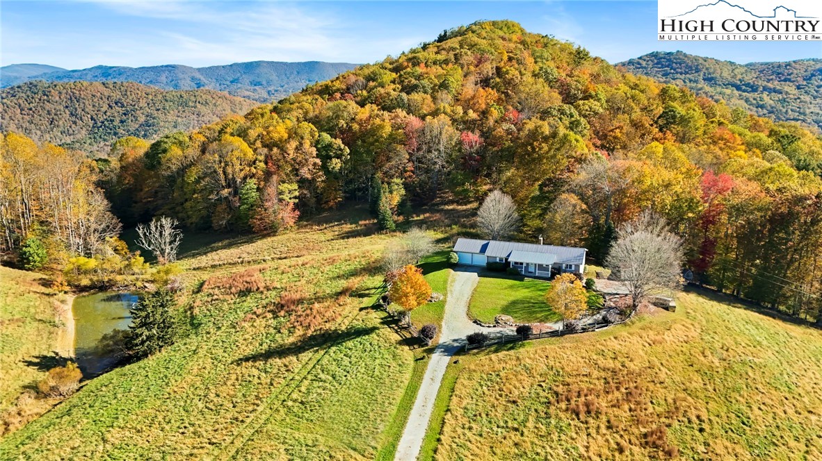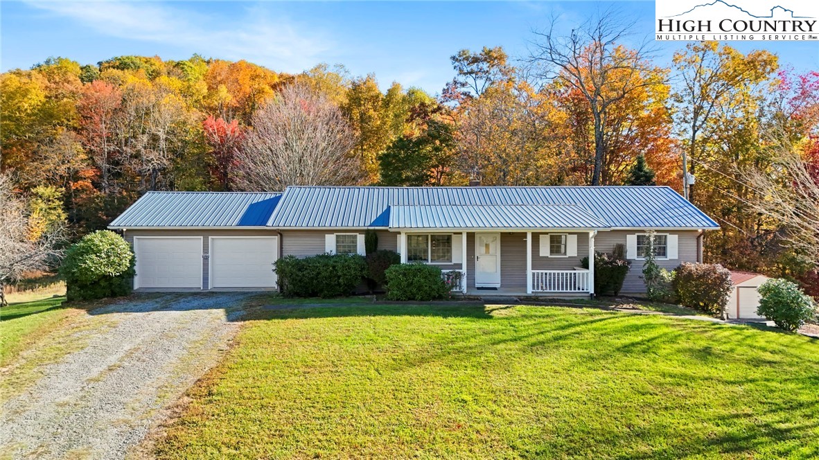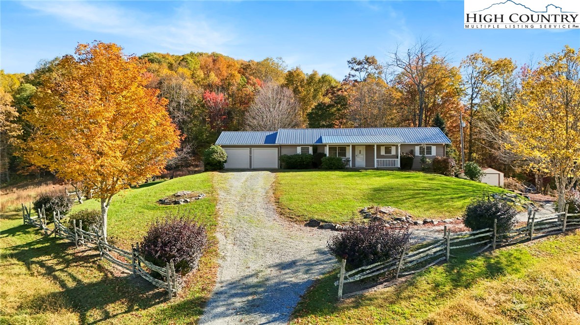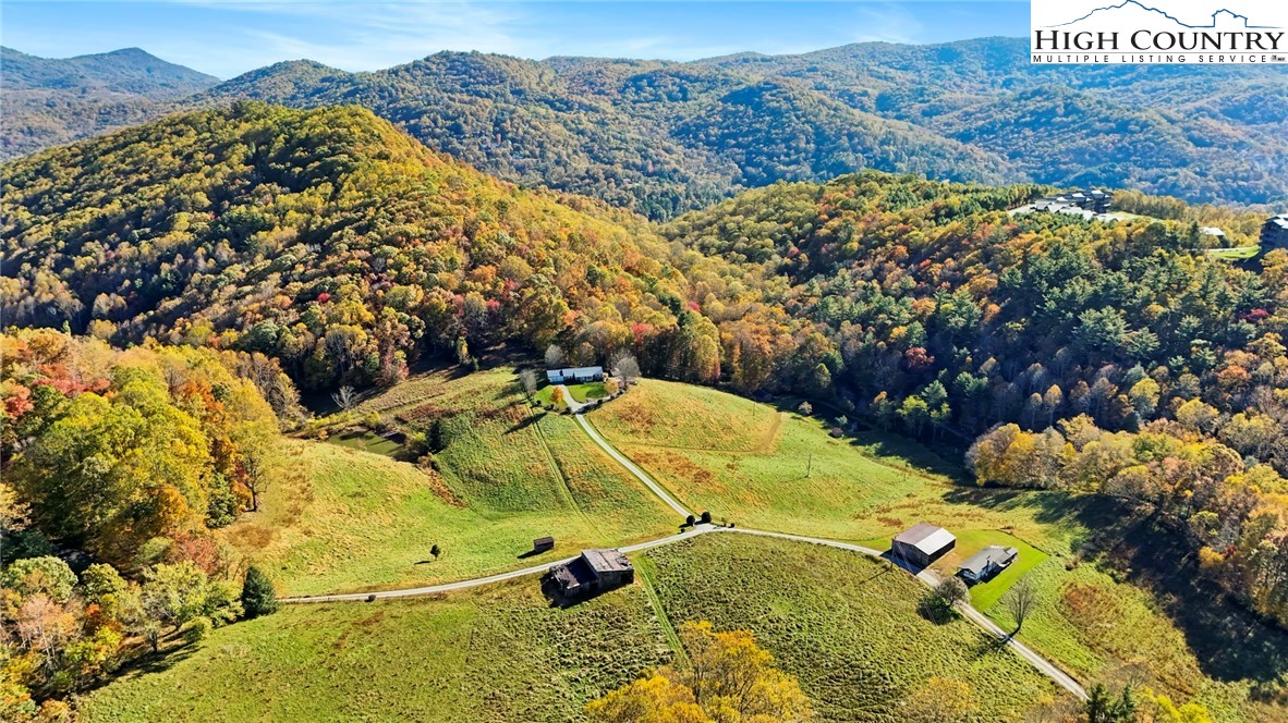 Experience the beauty of the High Country with stunning Grandfather Mountain views from this exceptional 12.5-acre estate featuring rolling meadows, two ponds, and a charming 2BR/2BA, plus one (1) additional sleeping quarter. Offering one-level living with an open-concept great room and kitchen, there is an additional 200 sqft which is a sunroom, primary suite with walk-in closet, guest bedroom and bath, laundry room, and a full unfinished basement. Highlights include a stone fireplace, attached two-car garage on the main level, additional basement garage, wood stove, new metal roof, fiber optic internet, and a covered front porch great for relaxing and taking in the scenery. The land offers usable pasture, a large barn, and multiple outbuildings—great for a family estate, horse farm, or vineyard. Perfectly situated in the Valle Crucis/Foscoe area between Boone and Banner Elk, just 15 minutes to App State, shopping, and all High Country attractions. Subdivision: Southern Watauga Rural