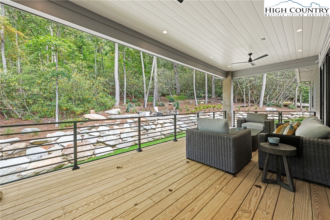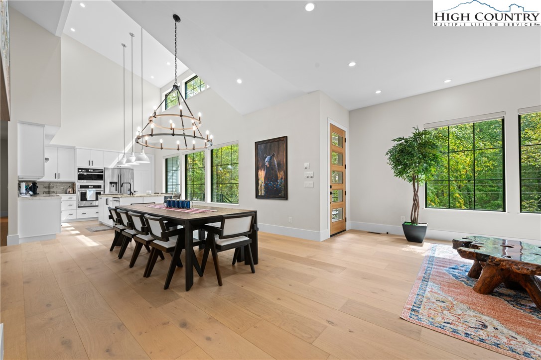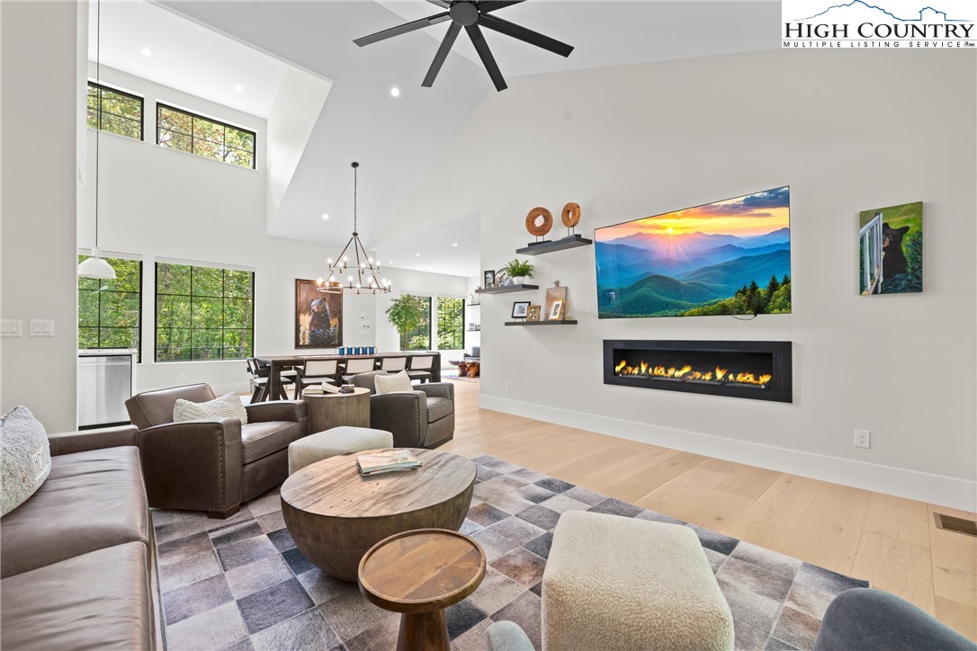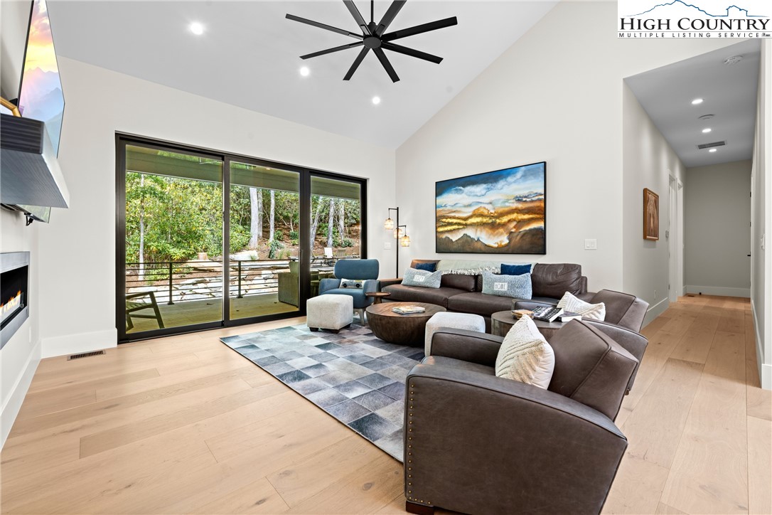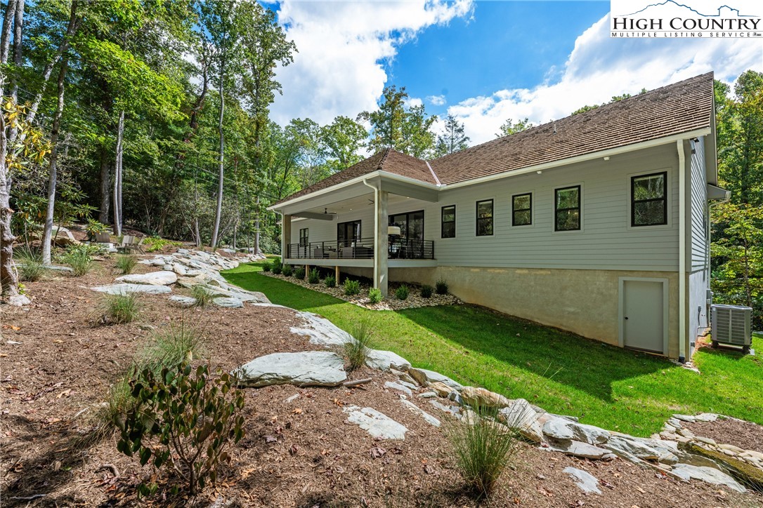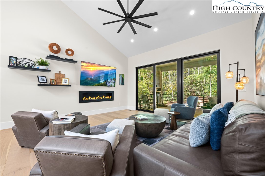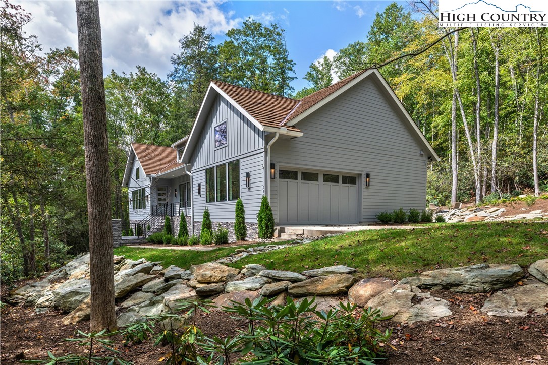 Spectacular luxury home in coveted Hound Ears Club featuring exceptional attention to detail and unique, exquisite finishes rarely found in the High Country. This home is a celebration of modern vision, favoring sleek, architectural volume and light instead of the traditional wood aesthetic. The design philosophy here intentionally delivers a tranquil, natural sanctuary instead of panoramic vistas. As a result, the home's intimate setting emphasizes serene natural immersion rather than long-range views. This residence is designed for serene natural immersion, offering an intimate, tranquil setting nestled among beautiful old-growth rhododendrons. Constructed with premium materials and finishes, this home showcases uncompromising quality in every detail, featuring energy-efficient, intelligently built, high-performance choices, including a CeDUR Roof that creates the desirable cedar shake look utilizing the latest in roofing technology, efficient Pella windows and doors, Coronado split limestone exterior veneer, Icynene attic foam insulation, and an encapsulated crawlspace. Rare modern touches include a custom ambient ethanol fireplace (just put in the ethanol and it burns for hours - very cool!). Enjoy upscale conveniences, including state-of-the-art JennAir kitchen appliances (including a range with induction cooktop and a wine cooler/beverage center), a zoned AC/heating system for individualized comfort, a finished two-car garage with an insulated garage door, an Electrolux washer and dryer and utility sink in the laundry room, and community water and sewer. Other gorgeous custom touches throughout include automated shades, shiplap in the primary suite, architectural-grade Emtek interior door hardware, and stunning white oak wood floors throughout. Veritably, an exquisite residence that delivers uncompromised living across its interior and exterior realms. Built for uninterrupted relaxation, this home’s serene ambiance and natural setting flow effortlessly to the outdoors, where an expansive covered deck is wired for ceiling heaters and connects to a separate, beautifully set fire pit patio with a propane fireplace, creating multiple realms of tranquil escape. This exceptional location offers optimal access to all the High Country amenities, perfectly and centrally situated between the charming, iconic towns of Blowing Rock, Boone, and Banner Elk. From this enviable vantage point, you are just a short drive from world-class hiking trails, the breathtaking scenic overlooks of the Blue Ridge Parkway, ski slopes, and the majesty of Grandfather Mountain. The esteemed Hound Ears Club provides an unparalleled sense of security and comfort with 24-hour gated security. Residents enjoy over six miles of private, dedicated hiking trails within the community, along with one of the area’s nicest fenced dog parks. This home is ideally located for immediate access to the famed Hound Ears Rocks, a picturesque spot perfect for a picnic and entry to awe-inspiring hiking trails. A truly rare and special find in the High Country, this is an opportunity unlike any other in the mountains.