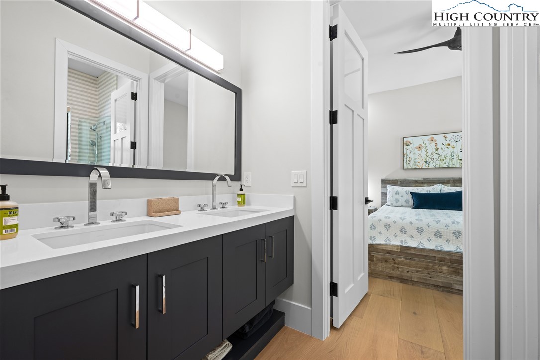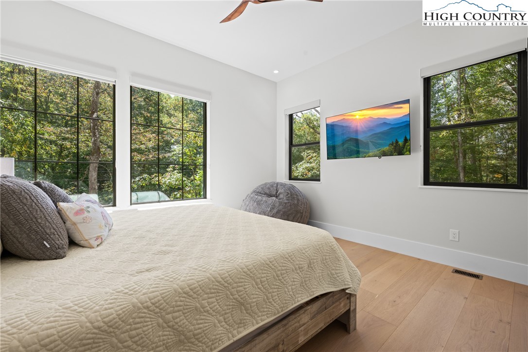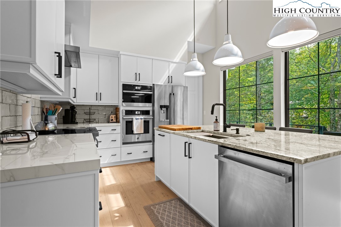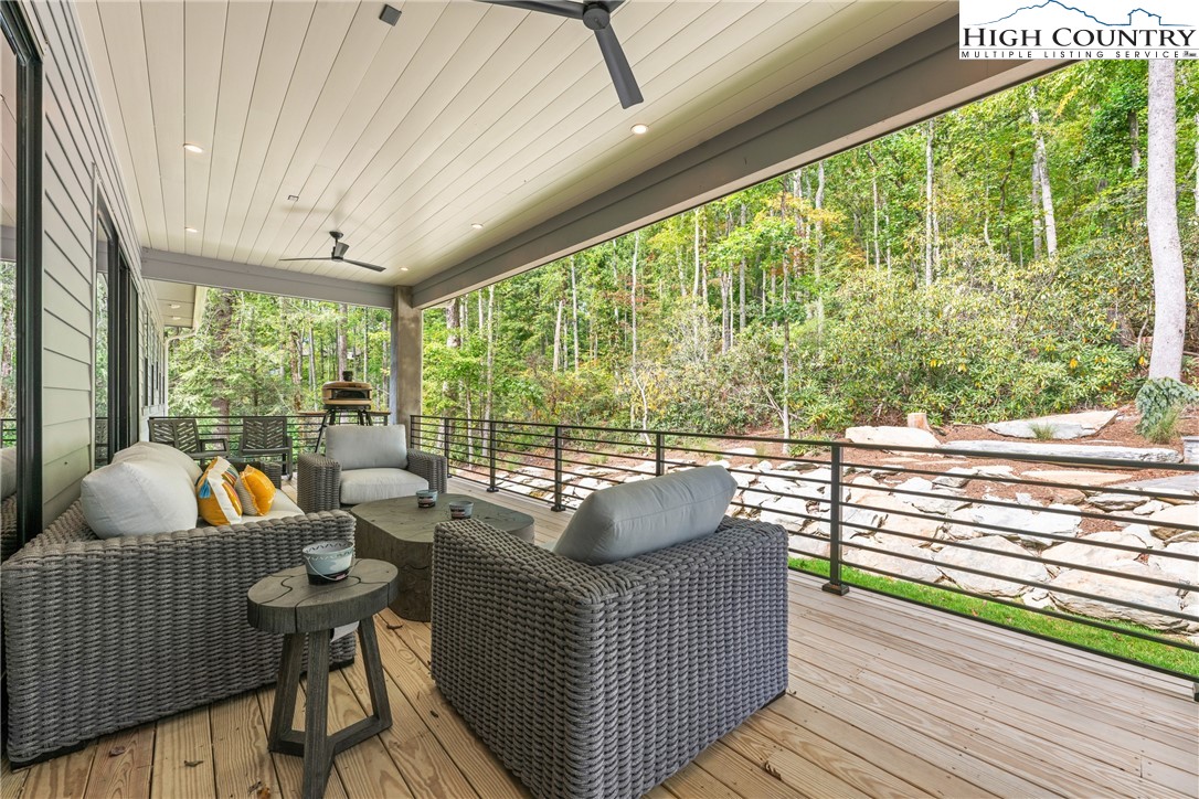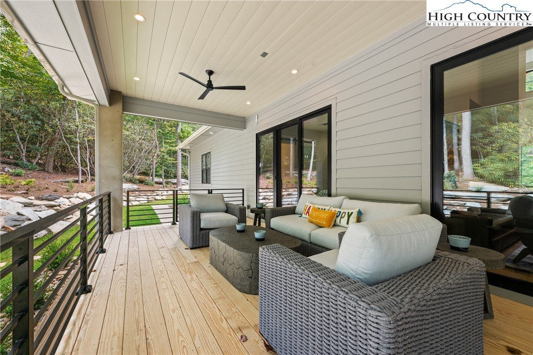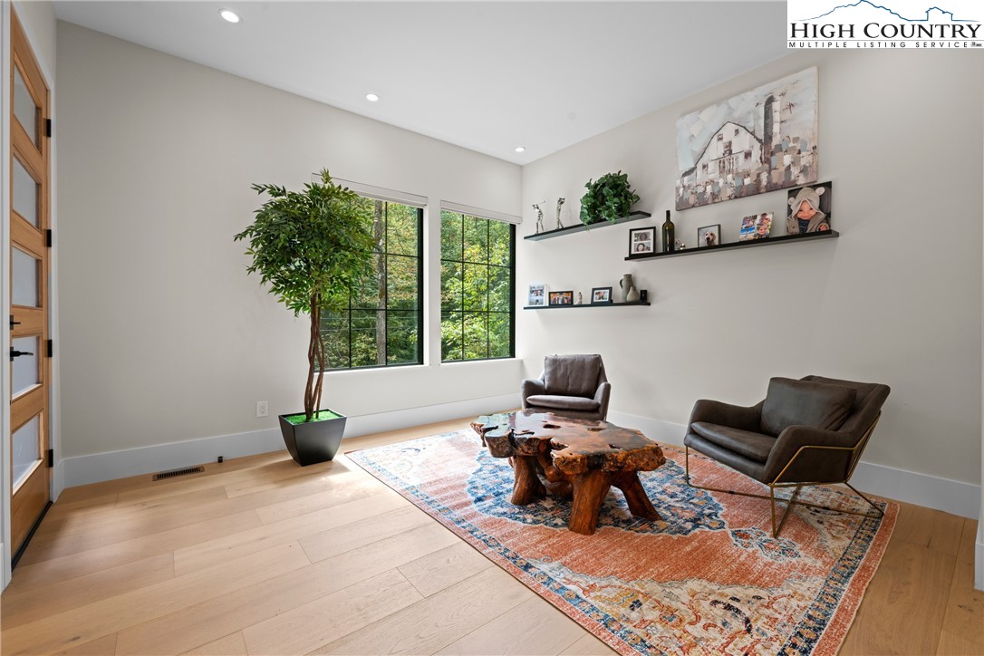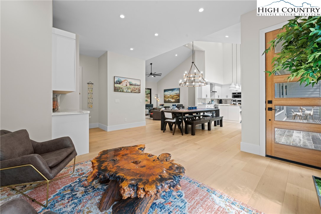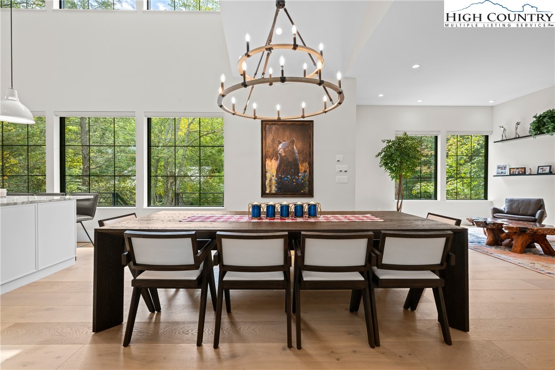Spectacular luxury home in coveted Hound Ears Club featuring exceptional attention to detail and unique, exquisite finishes rarely found in the High Country. This home is a celebration of modern vision, favoring sleek, architectural volume and light instead of the traditional wood aesthetic. The design philosophy here intentionally delivers a tranquil, natural sanctuary instead of panoramic vistas. As a result, the home's intimate setting emphasizes serene natural immersion rather than long-range views. This residence is designed for serene natural immersion, offering an intimate, tranquil setting nestled among beautiful old-growth rhododendrons. Constructed with premium materials and finishes, this home showcases uncompromising quality in every detail, featuring energy-efficient, intelligently built, high-performance choices, including a CeDUR Roof that creates the desirable cedar shake look utilizing the latest in roofing technology, efficient Pella windows and doors, Coronado split limestone exterior veneer, Icynene attic foam insulation, and an encapsulated crawlspace. Rare modern touches include a custom ambient ethanol fireplace (just put in the ethanol and it burns for hours - very cool!). Enjoy upscale conveniences, including state-of-the-art JennAir kitchen appliances (including a range with induction cooktop and a wine cooler/beverage center), a zoned AC/heating system for individualized comfort, a finished two-car garage with an insulated garage door, an Electrolux washer and dryer and utility sink in the laundry room, and community water and sewer. Other gorgeous custom touches throughout include automated shades, shiplap in the primary suite, architectural-grade Emtek interior door hardware, and stunning white oak wood floors throughout. Veritably, an exquisite residence that delivers uncompromised living across its interior and exterior realms. Built for uninterrupted relaxation, this home’s serene ambiance and natural setting flow effortlessly to the outdoors, where an expansive covered deck is wired for ceiling heaters and connects to a separate, beautifully set fire pit patio with a propane fireplace, creating multiple realms of tranquil escape. This exceptional location offers optimal access to all the High Country amenities, perfectly and centrally situated between the charming, iconic towns of Blowing Rock, Boone, and Banner Elk. From this enviable vantage point, you are just a short drive from world-class hiking trails, the breathtaking scenic overlooks of the Blue Ridge Parkway, ski slopes, and the majesty of Grandfather Mountain. The esteemed Hound Ears Club provides an unparalleled sense of security and comfort with 24-hour gated security. Residents enjoy over six miles of private, dedicated hiking trails within the community, along with one of the area’s nicest fenced dog parks. This home is ideally located for immediate access to the famed Hound Ears Rocks, a picturesque spot perfect for a picnic and entry to awe-inspiring hiking trails. A truly rare and special find in the High Country, this is an opportunity unlike any other in the mountains.