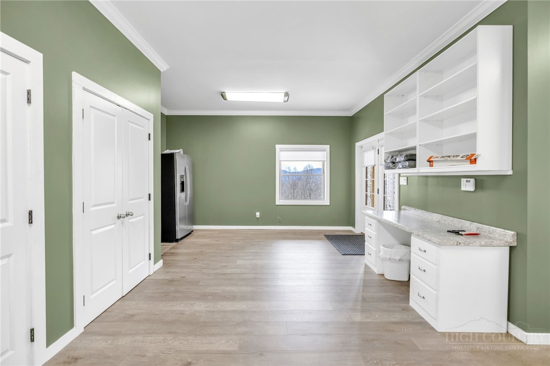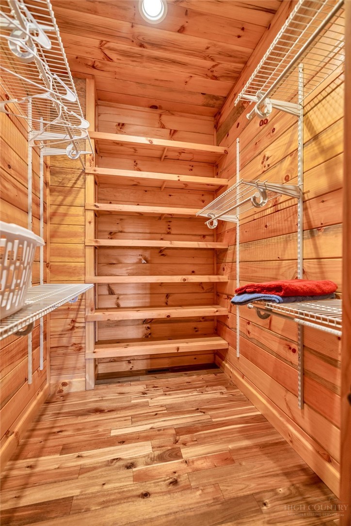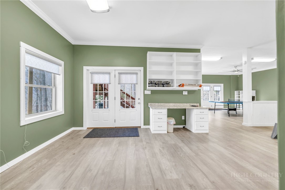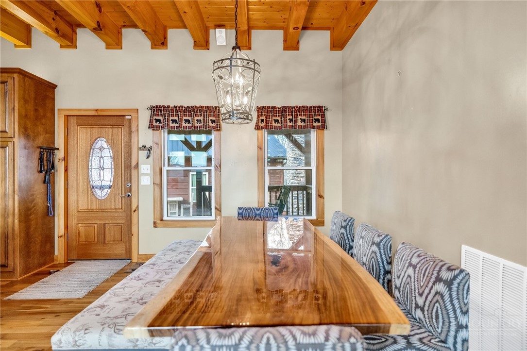 Mountain Retreat with Panoramic Views in Todd, NC Tucked away atop 13+ acres, this exceptional mountain retreat offers the rare combination of privacy, scale, and breathtaking scenery. Thoughtfully maintained and richly detailed, this nearly 5,000-square-foot log home blends classic mountain character with refined comfort in a setting designed to both impress and unwind. Recently enhanced with a fresh exterior stain (2023) and a new dual-fuel gas furnace with heat pump, the home delivers beauty with modern efficiency. Step inside to an unforgettable first impression—an expansive wall of glass floods the interior with natural light while perfectly framing the surrounding mountain views. The heart of the home features an open kitchen and dining area overlooking a dramatic two-story great room with soaring ceilings, a striking stone fireplace, and warm all-wood finishes throughout. The kitchen is both functional and inviting, offering granite countertops, farmhouse sink, abundant cabinetry, and a large walk-in pantry, great for gatherings large or small. The main-level primary suite provides a peaceful retreat with direct access to the back deck, a spacious en-suite bath, and walk-in closet. Two additional guest bedrooms and a full bath complete the main floor. Upstairs, a versatile loft space serves beautifully as a TV or game room, home office, or reading nook, accompanied by an additional full bath. Designed for true mountain living, the outdoor spaces are equally impressive—enjoy a large open deck complete with hot tub, welcoming covered front porch anchored by patio and stone outdoor fireplace, and a lower-level patio with hammock and corn hole court for year-round enjoyment. The finished basement expands the living space with a generous recreation room featuring a Murphy bed, a half bath, and a fourth bedroom with en-suite bath, great for guests or extended stays. Adding to the property’s versatility is a separate tiny house, well-suited for guest accommodations, studio space, or additional storage. Surrounded by abundant wildlife and natural beauty, this serene retreat is perfectly positioned between West Jefferson and Boone, offering peaceful seclusion without sacrificing convenience. A rare opportunity to own a refined mountain escape in the heart of the High Country—schedule your showing today.