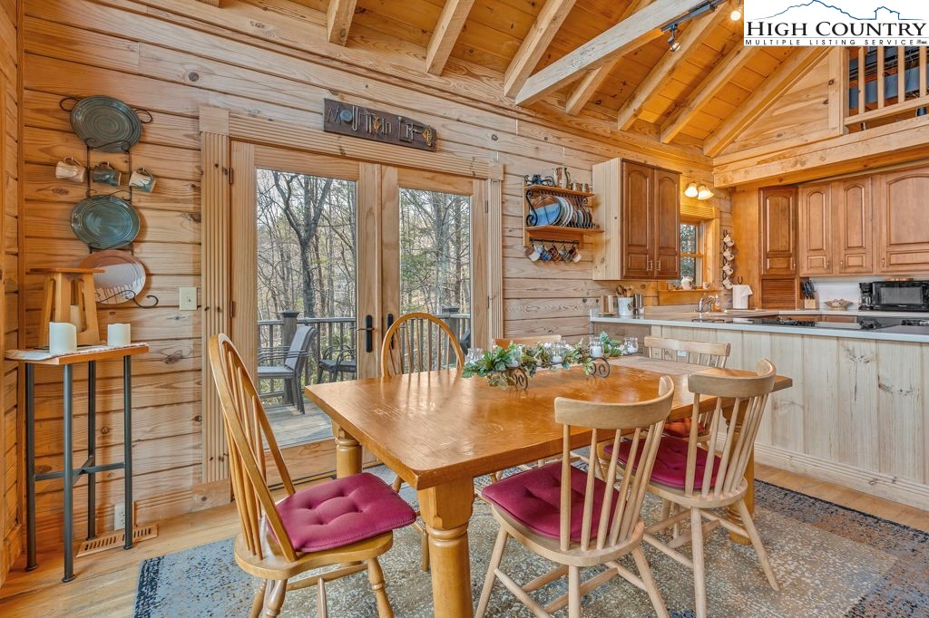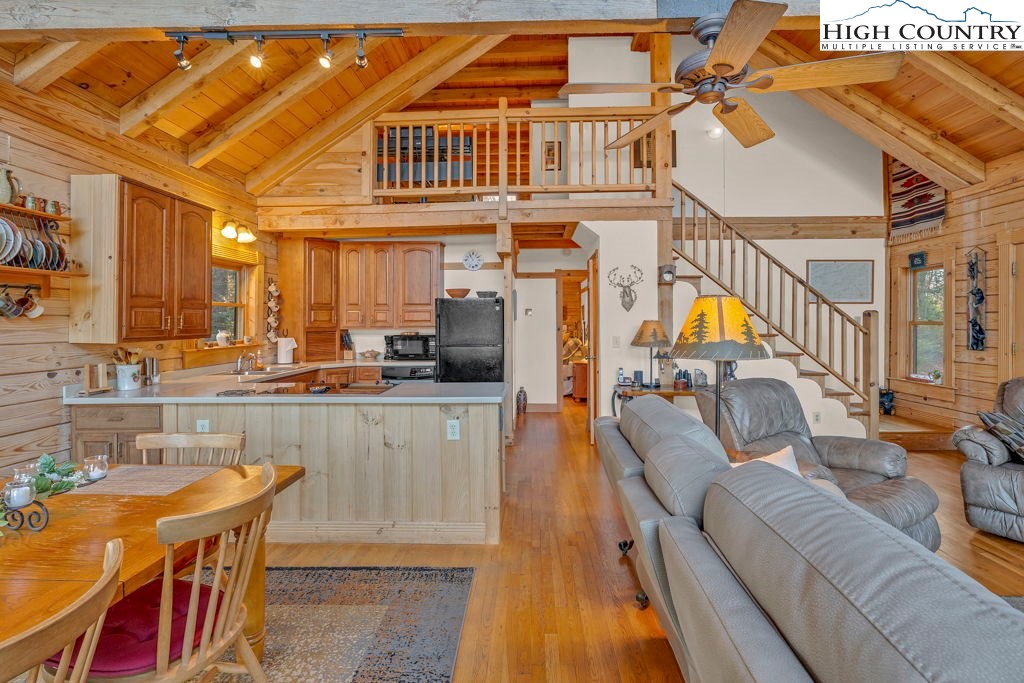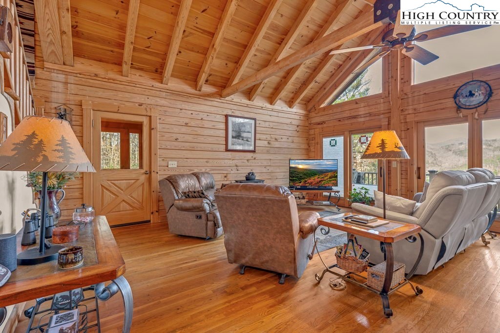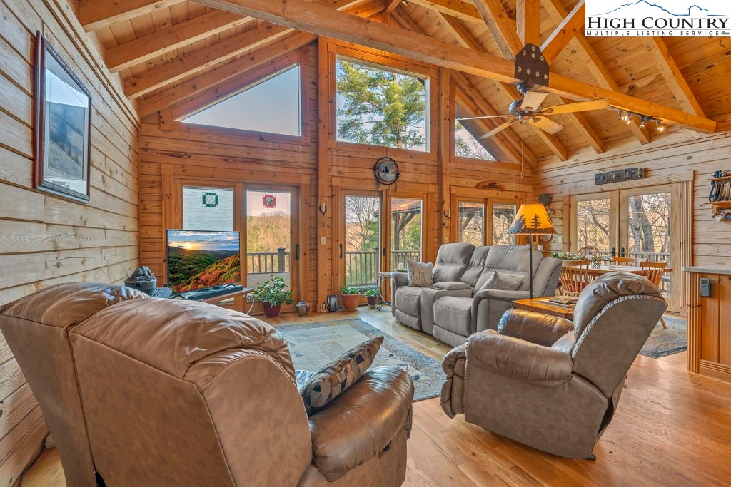 If you are looking for the perfect mountain log home, you may have just found it! This home has been a full-time residence for the couple that built it, has been cared for as it was part of the family, and is now being offered for sale. Pipe Dreams, as it is lovingly referred to, is inside the gated community of Leatherwood Mountains. Every detail keeps the log home lover in mind with wood floors throughout, vaulted ceilings, and all of the many touches that you would expect. The views look to the North and West, with oversized windows that bring the majesty of the Blue Ridge Mountains indoors. The open floor plan of the kitchen, dining, and living area make it easy to entertain, both inside and out. The primary bedroom, bathroom, and laundry are all on the main floor as well, making one-level living possible. This home also has a ramp leading to the primary bedroom, making handicap access easy. As you ascend the stairs in the living room to the upstairs of the house, you realize that the loft area is home to a billiard table, as well as plenty of space for a home office. There is also a sizeable guest room and full bathroom on this level of the house. The basement of the home was finished with all building permits and codes followed. Essentially, the basement could be used as a whole separate living space from the top two floors, as the kitchenette is quite functional and includes a sink and full refrigerator. A custom stone fireplace, vented to the outside, makes this downstairs a particularly cozy area. All of the space in this home has been utilized for storage. The owners have moved on to another property out of state, and have left all furnishings to be conveyed with this home. If you are looking for a good rental investment property, Leatherwood Mountains has a well-established short-term-rental program and would welcome this home as an addition. The outside space of this home can not be emphasized enough, as there are multiple decks and spots to enjoy the views. The hot tub deck is covered, making it the perfect place to relax no matter the weather. There is ample room below the home to build a garden, small barn and pasture area, or a large dog lot. The driveway of this home has enough room for multiple cars. Located on Wagon Ridge lane, this home is just a short drive from the entrance to the community. Leatherwood Mountains has many amenities to enjoy including a community pool, tennis and pickleball courts, multiple fishing ponds, and a horseback and hiking trail system spanning almost 50 miles, spread out over almost 5,000 acres. This house is surrounded by trees making for a very private residence. Pipe Dreams is quite simply turn-key and is waiting for it's new owners. This would be a good full-time home or an incredible rental home investment. You won't find many log homes with this amount of privacy, versatility, and charm as this one. Schedule a time to see this home today, as it may be gone tomorrow!