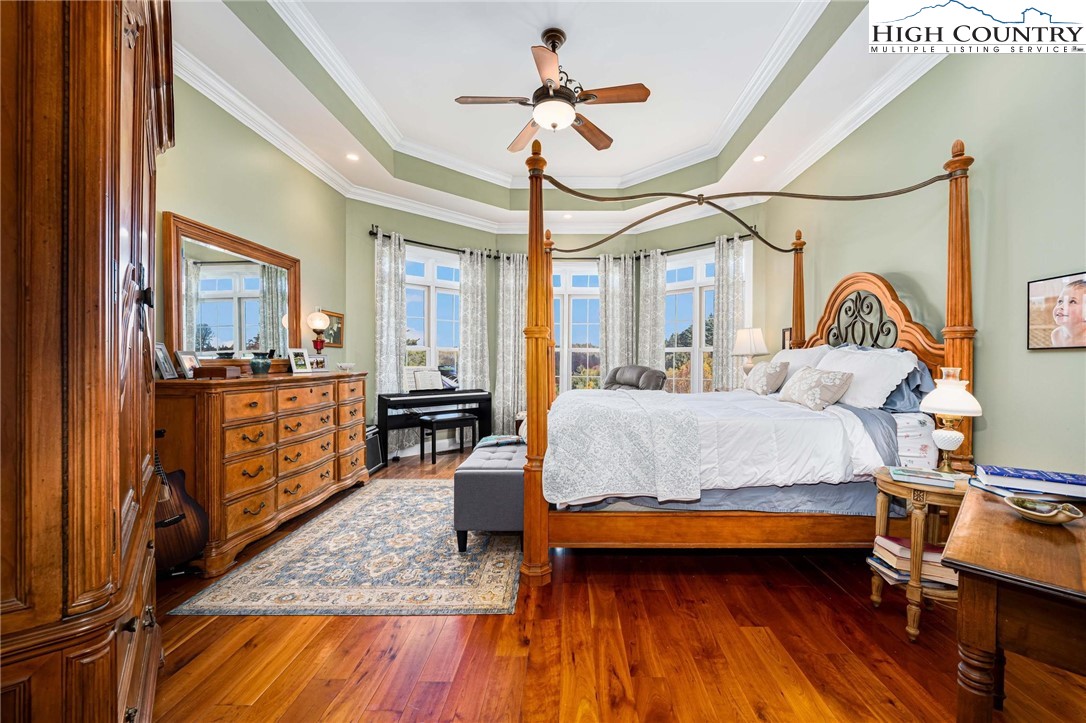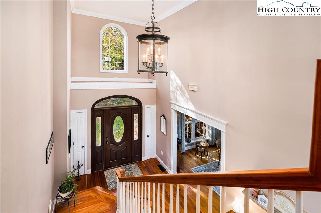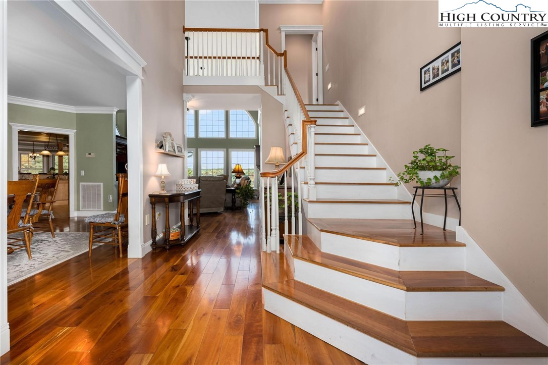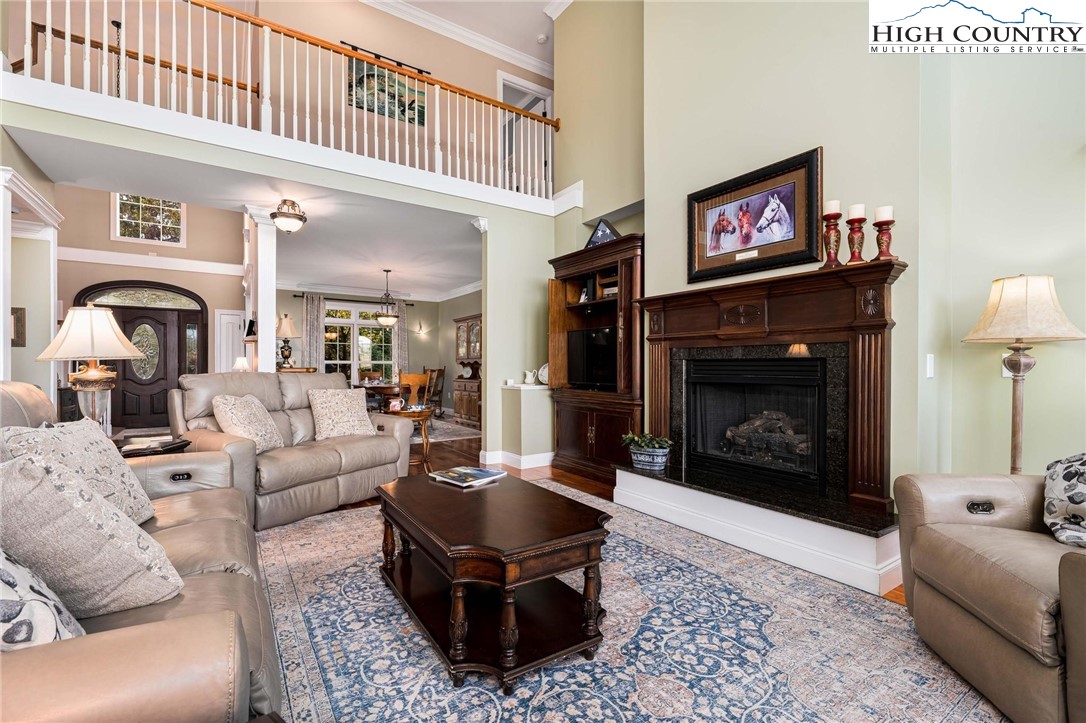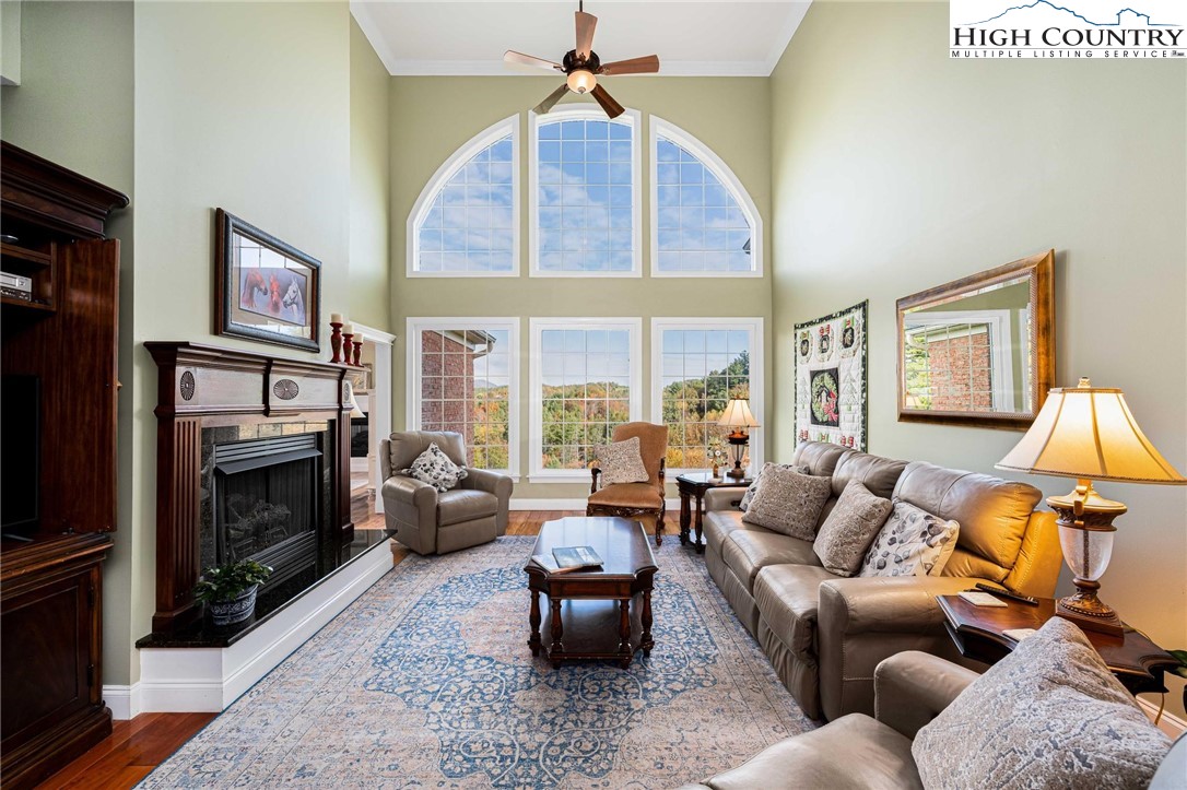 Gorgeous traditional home on almost 2.5 acres with incredible long range mountain views and an expansive lawn tucked into a private setting just minutes from all of the amenities of Boone! Enjoy arriving home to your attached two car garage that steps directly into the main level and send your guests to the front door to be wowed by the expansive foyer with views right out the front of the home with soaring ceilings. Gleaming hardwoods throughout most of the main level with fireplaces in both the living and keeping areas. Kitchen is open to the views with granite tops, custom cabinets, island, tile backsplash, and stainless appliances. Primary suite has tray ceilings, more incredible views, his and her walk in closets, jetted tub with separate tile shower, and heated floors. Laundry on the main to ensure one-level living. Upstairs are three spacious bedrooms, two full baths, and a bonus room as well as storage space galore. The basement has another full bath as well as a game room with third fireplace, open areas for gathering, and an additional garage that is heated for pets or projects. Situated atop one of Boone's most desirable neighborhoods only 4 minutes from grocery stores and less than 10 minutes to the heart of town, the setting and location are impossible to beat. Take time to watch the video tour at https://vimeo.com/1127299171 and schedule your showing today!