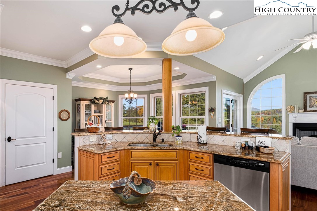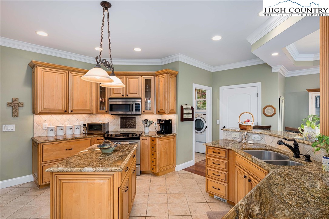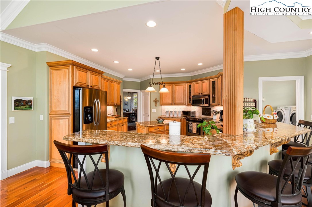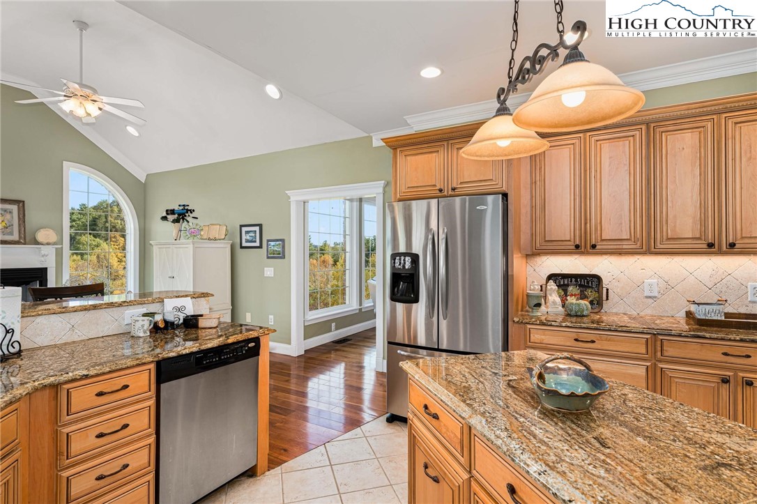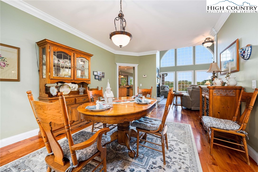 Gorgeous traditional home on almost 2.5 acres with incredible long range mountain views and an expansive lawn tucked into a private setting just minutes from all of the amenities of Boone! Enjoy arriving home to your attached two car garage that steps directly into the main level and send your guests to the front door to be wowed by the expansive foyer with views right out the front of the home with soaring ceilings. Gleaming hardwoods throughout most of the main level with fireplaces in both the living and keeping areas. Kitchen is open to the views with granite tops, custom cabinets, island, tile backsplash, and stainless appliances. Primary suite has tray ceilings, more incredible views, his and her walk in closets, jetted tub with separate tile shower, and heated floors. Laundry on the main to ensure one-level living. Upstairs are three spacious bedrooms, two full baths, and a bonus room as well as storage space galore. The basement has another full bath as well as a game room with third fireplace, open areas for gathering, and an additional garage that is heated for pets or projects. Situated atop one of Boone's most desirable neighborhoods only 4 minutes from grocery stores and less than 10 minutes to the heart of town, the setting and location are impossible to beat. Take time to watch the video tour at https://vimeo.com/1127299171 and schedule your showing today!
