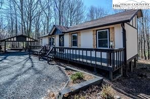 MOVE IN READY, FULLY RENOVATED ONE LEVEL 3 BR, 3 BA HOME-Perfect for vacation or full time residence. Easy access with a circular drive and carport with only a few steps to enter the home. Beautifully renovated, ready for you to enjoy. The extensive renovation includes a new kitchen with large island and full updates to all three bathrooms. In addition, there is a new heating & cooling system, water heater, flooring, stainless steel appliances, and granite countertops. The open floorplan includes a wood fireplace and vaulted, tongue and grove ceiling as the focal point of the great room. Being sold fully furnished with only a few exceptions to make your move in seamless. The back deck is great to enjoy Beech Mountain's beautiful weather. The almost flat back yard is great for pets and kids and includes a fire pit. You couldn't ask for a better location, only a few miles to everything. Off Pine Ridge Road which is paved and plowed in the winter. First winter on AirBnb, house has a 5-star rating. The elevation of 3,978 allows for cool temps