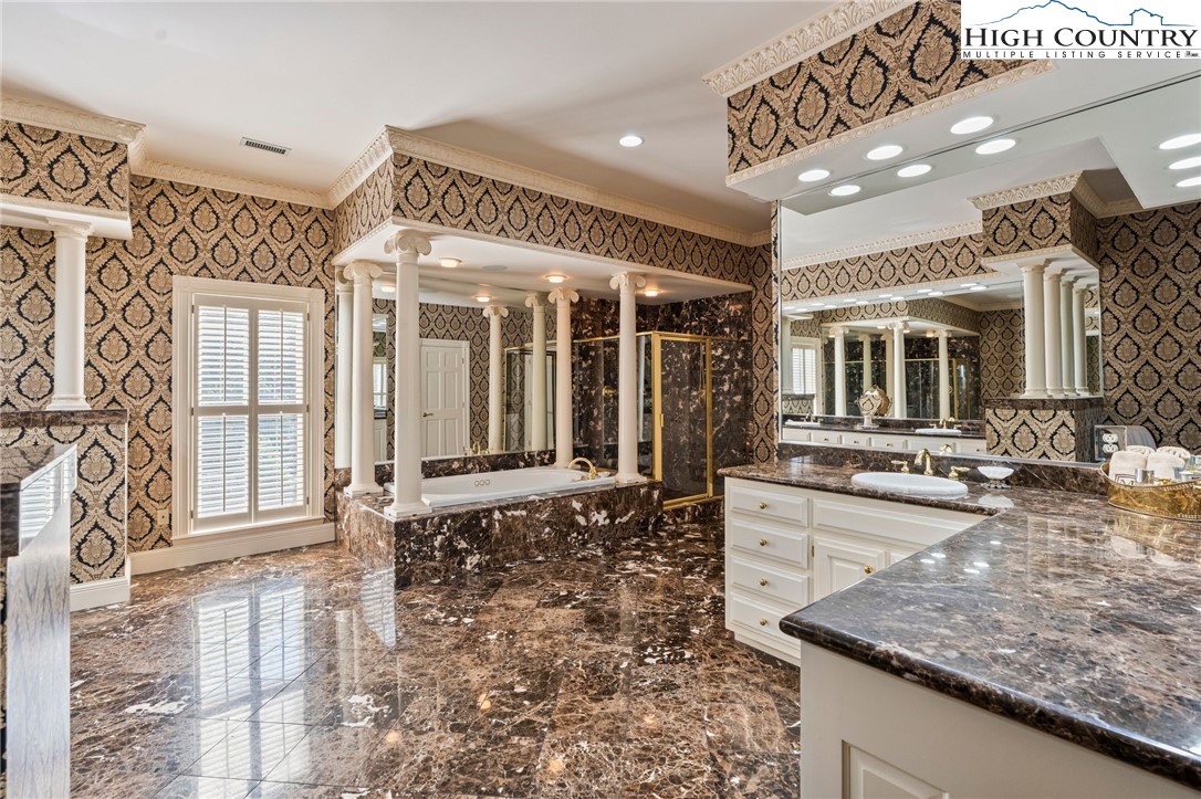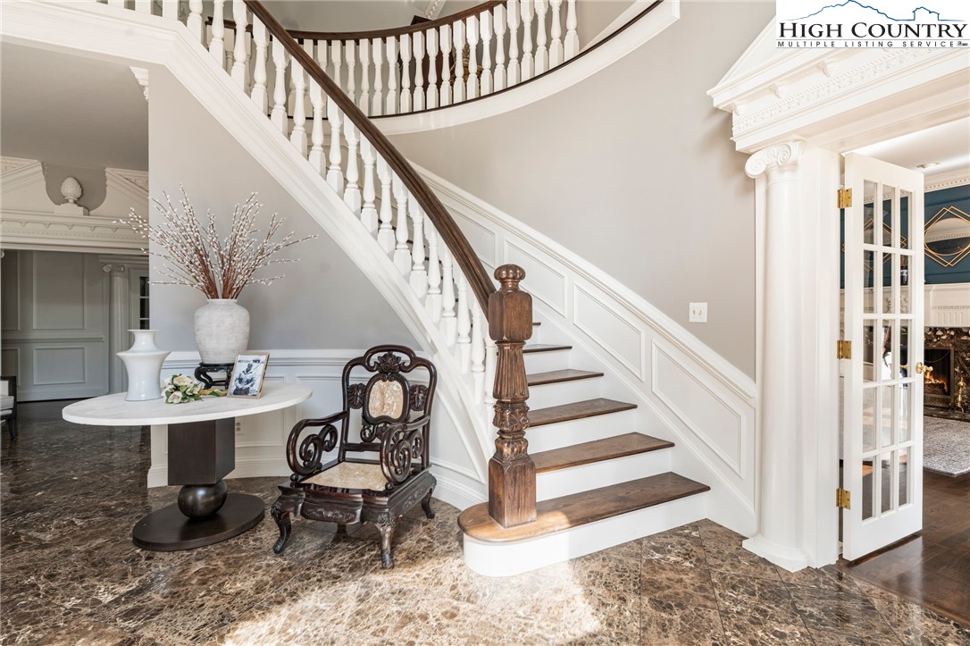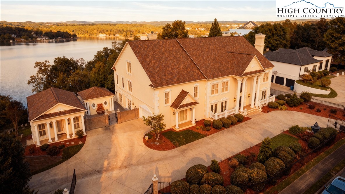 Discover lakefront luxury redefined at this extraordinary custom estate in Hickory’s premier Governor’s Harbour community. Perfectly positioned on 1.77 acres of prime Lake Hickory waterfront, this gated property offers an unmatched combination of timeless European architecture, panoramic lake and mountain views, and resort-style amenities. Built with enduring craftsmanship and designed for both grandeur and comfort, this nearly 10,000 sq ft residence showcases intricate architectural detail and quality finishes throughout. The main level welcomes you with a sweeping two-story marble foyer, curved staircase, and a dramatic great room with soaring ceilings and expansive windows framing the lake. Entertain in the elegant formal dining room, billiards room, and sun-filled gourmet kitchen—complete with professional-grade appliances, custom cabinetry, and a spacious breakfast area overlooking the water. The owner’s wing is a true retreat, featuring a sitting room with wet bar, a spa-inspired bath, and an expansive 1,700 square foot owner’s suite with balcony overlooking the lake, offering a serene vantage point for sunrise coffee or evening sunsets. Each of the home’s additional bedrooms includes its own en-suite bath, ensuring privacy and comfort for family and guests alike. The walk-out lower level offers a recreation room, office, guest suite, and direct access to the pool terrace—great for entertaining. Outdoor living is elevated with a heated in-ground pool, terrace with stone patio and professionally landscaped grounds illuminated by landscape lighting. A path leads to your covered dock equipped with a boat lift and personal watercraft lift, offering direct access to Lake Hickory’s main channel. Recent updates include a new roof installed in 2025 and replacement of all six HVAC units in November 2023, ensuring long-term comfort and efficiency. Completing the estate is a separate guest house, fully equipped with its own kitchen, living room, bedroom, and four-car garage—providing flexible options for multi-generational living, guests, or secluded workspace. Combined, the property offers parking for six or more vehicles, with a circular drive and side-load garages. Additional features include multiple fireplaces, surround sound, a whole-house security and surveillance system, in-ground irrigation, fenced backyard, and zoned heating and cooling for year-round comfort. City water and sewer. Governor’s Harbour is a premier gated lakefront community in Hickory—minutes from downtown amenities, schools, and restaurants—yet offering the tranquility of a secluded lakeside retreat. This architectural masterpiece combines elegance, livability, and unforgettable views. Experience lakefront living at its finest—schedule your personal showing today.