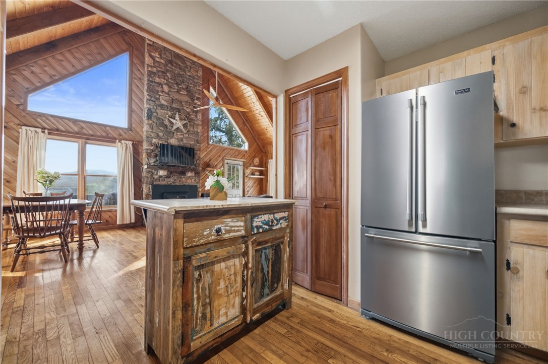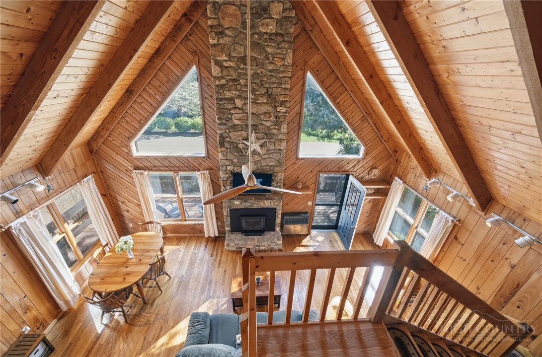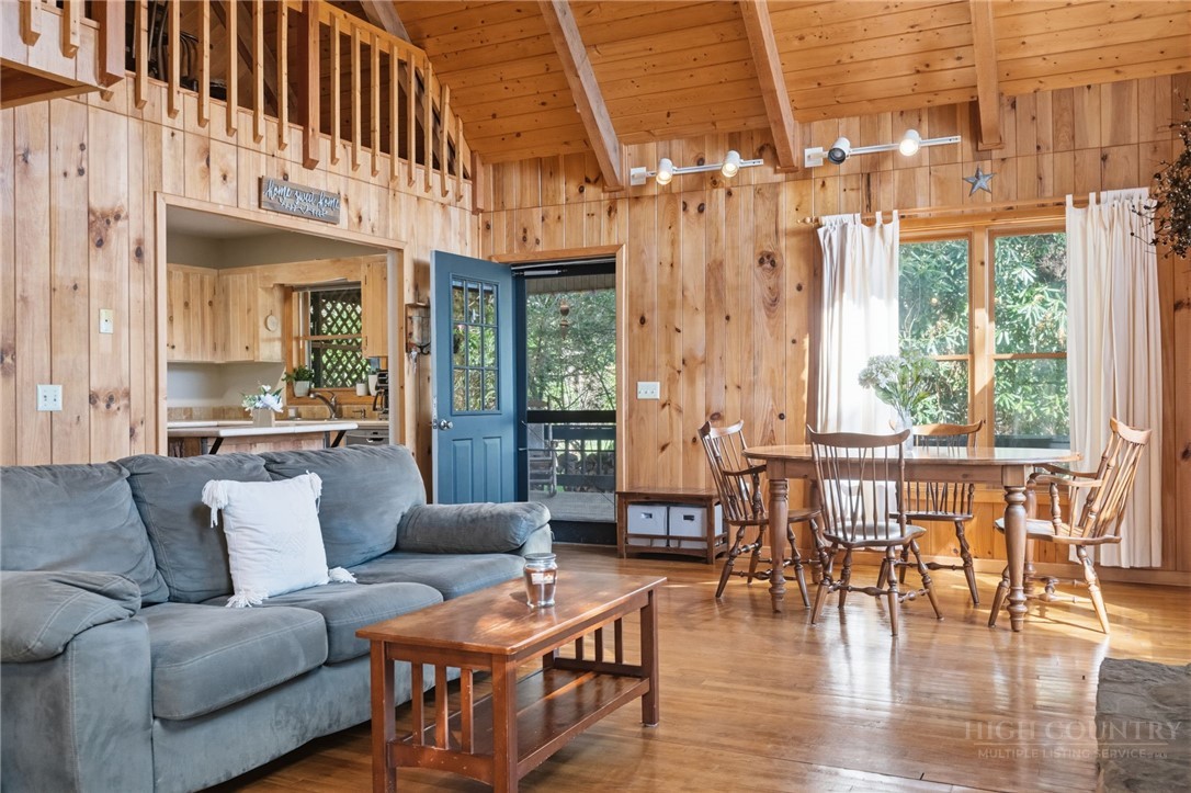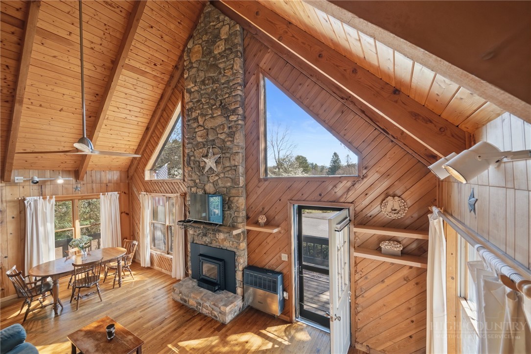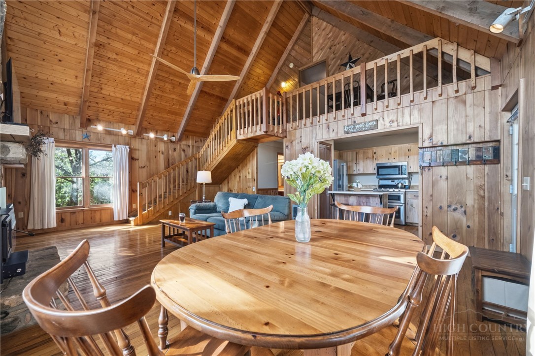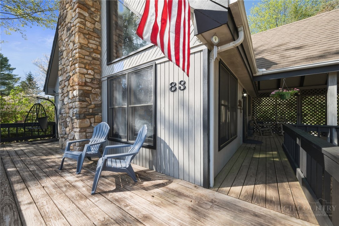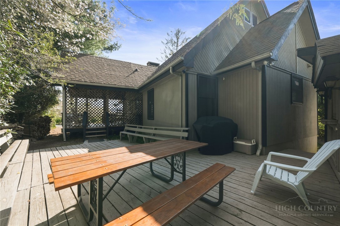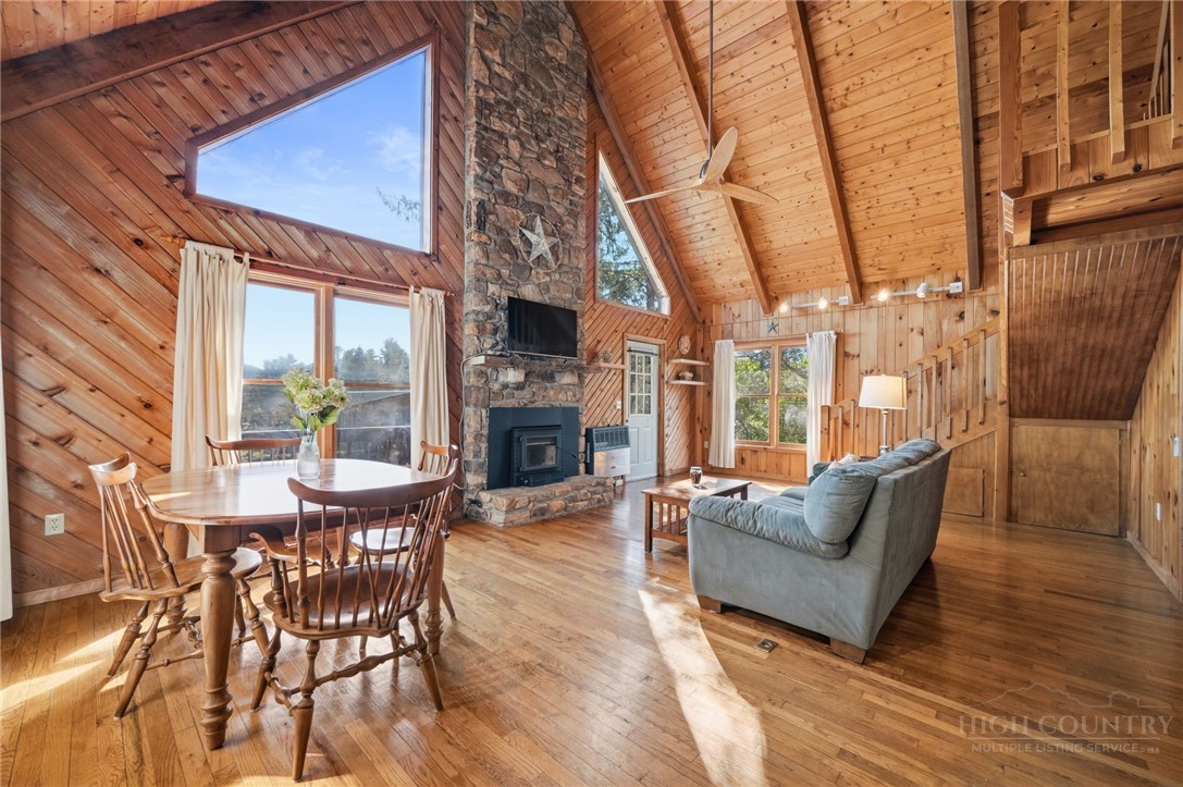 Tucked into the quiet, tree-lined streets of Linville Land Harbor, 83 Pine Ridge Loop is a light-filled mountain retreat where natural light pours through oversized front-facing windows from sunrise straight through the day. Rich natural wood finishes run throughout the home, deepening the warm, cozy cabin feel that makes this place so easy to settle into. The great room is anchored by a stunning floor-to-ceiling stone fireplace with a wood-burning stove insert — the perfect centerpiece for cool High Country evenings — and soars overhead with vaulted ceilings that make the whole space feel open and airy. Three bedrooms and three full bathrooms offer room to spread out for family or guests, and indoor-outdoor living comes easy with both covered and uncovered decks — one for shade and morning coffee, the other for soaking up the sun. A dedicated golf cart garage and a separate storage shed add practical mountain-home convenience, with plenty of room for gear, bikes, and outdoor toys. And then there's Linville Land Harbor itself — a community offering golf, a stocked lake, swimming, tennis, pickleball, a clubhouse and restaurant, plus miles of walking paths and easy access to Grandfather Mountain, the Blue Ridge Parkway, Banner Elk, and Beech and Sugar Mountains. The HOA covers internet, cable, sewer, water, trash, amenities, and snow removal — making year-round ownership as easy and worry-free as mountain living should be. Come see why this is one of the High Country's most loved year-round retreats.