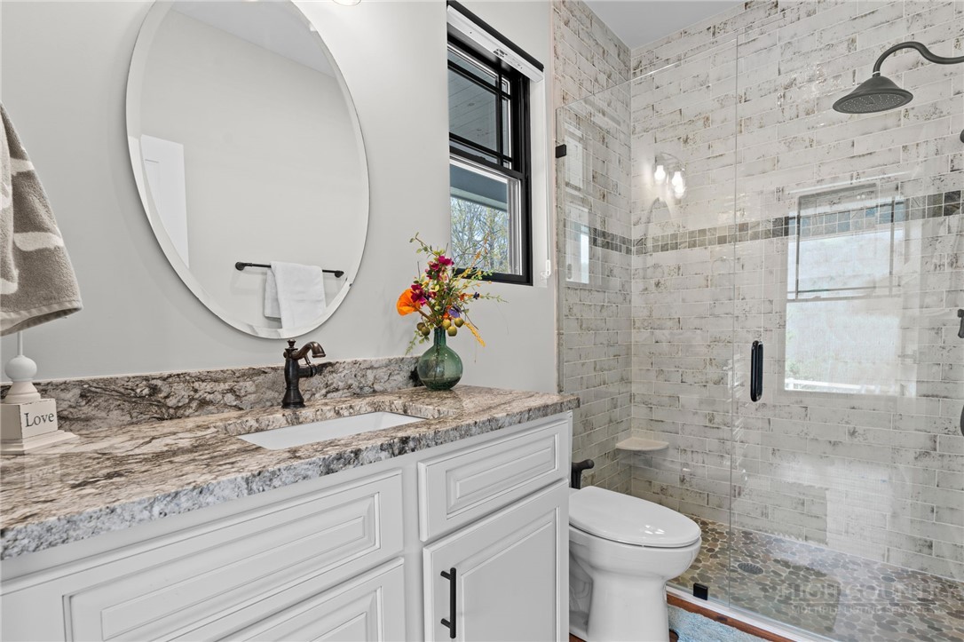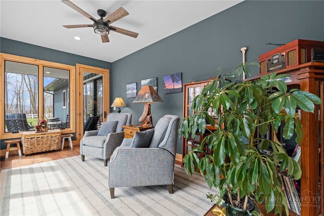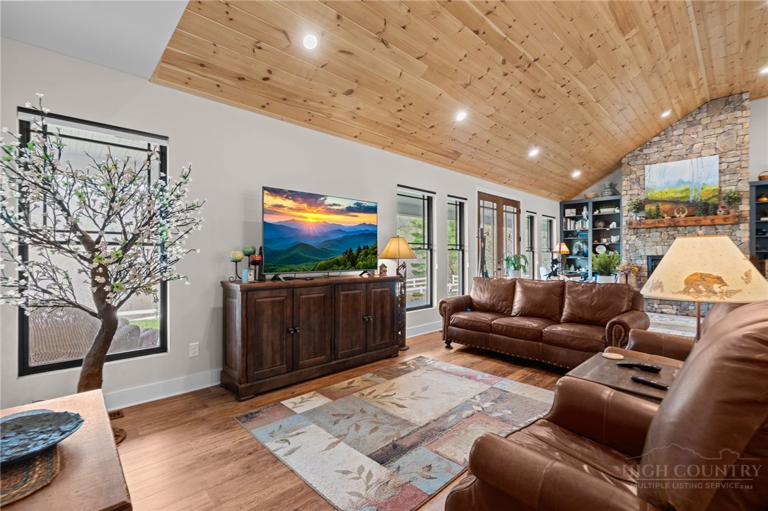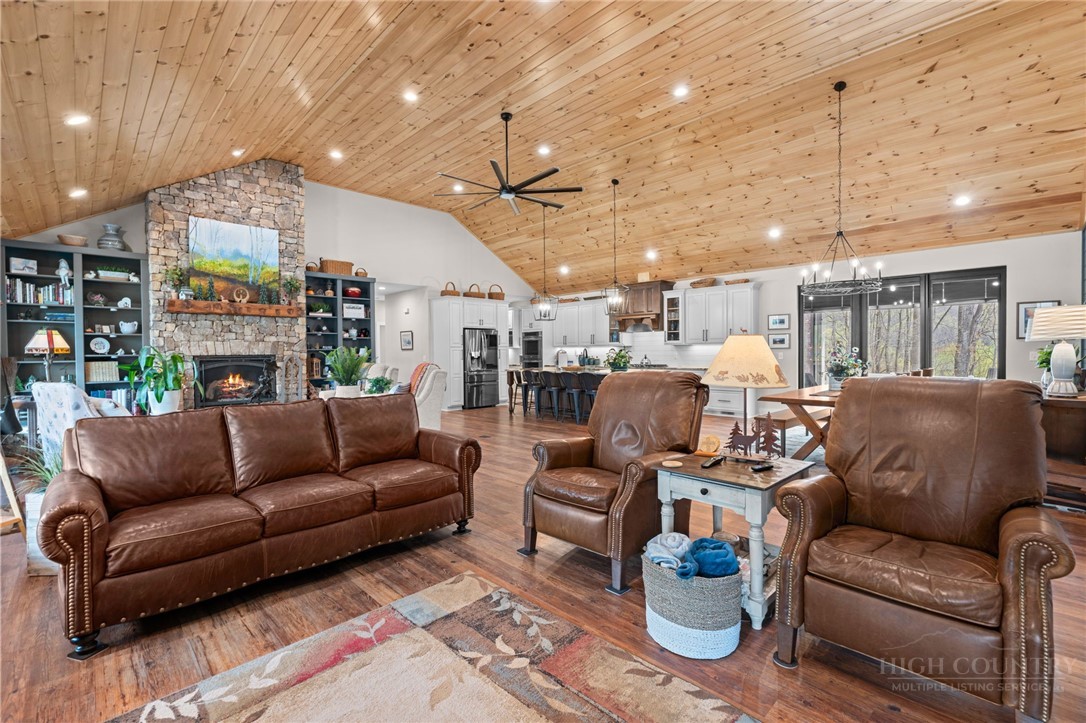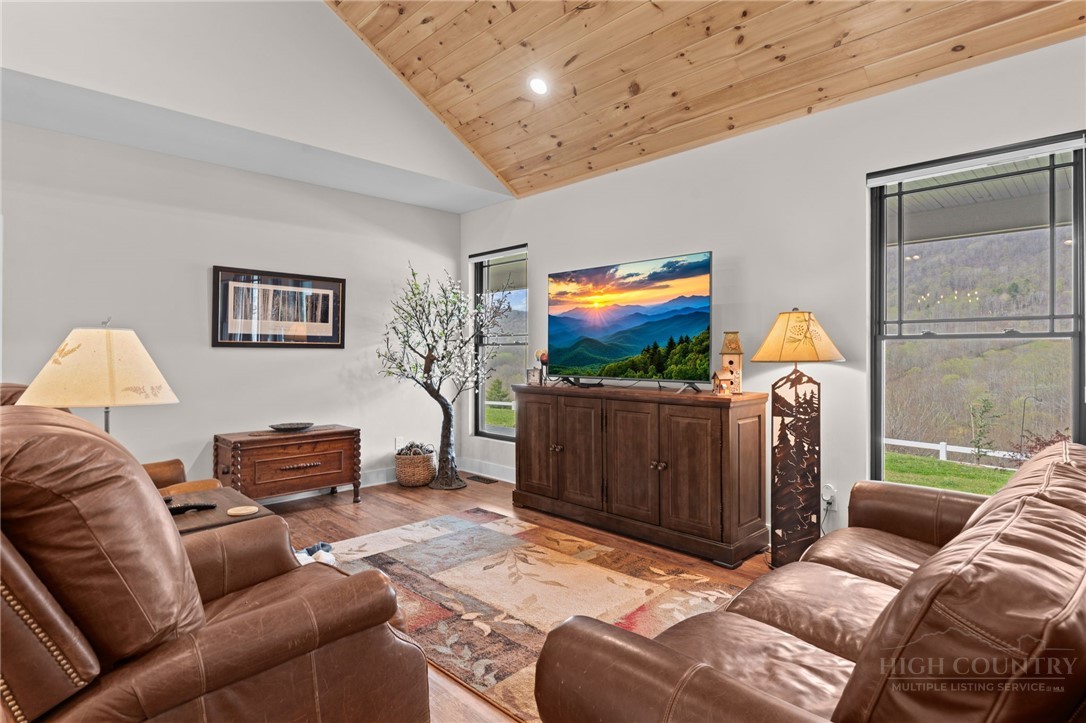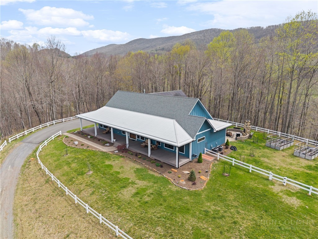 Newly-Constructed estate on a 14-acre tract in the beautiful Elk Creek area of Ashe County. This property features easy access to Boone and all it has to offer, plus the nearby amenities of West Jefferson. This home features all the best finishes, including granite countertops, stainless appliances, and one-level living. The sunroom is not to be missed! Outdoor entertaining areas are large enough to accommodate big gatherings, and the views are second to none. Enjoy your private estate on top of the mountain with plenty of room for whatever you want to put in the pasture. All the modern conveniences are present in the home, including a solar generation system that supplies the grid when it has fully supplied the house. No worries about power outages here! There is plenty of room in this home for large gatherings of people, with an oversized dining room table, and two separate seating groups in the living room. Easy, mainly level access ensures year-round enjoyment of this home regardless of the weather. Come see the best, most efficient new home in Ashe!