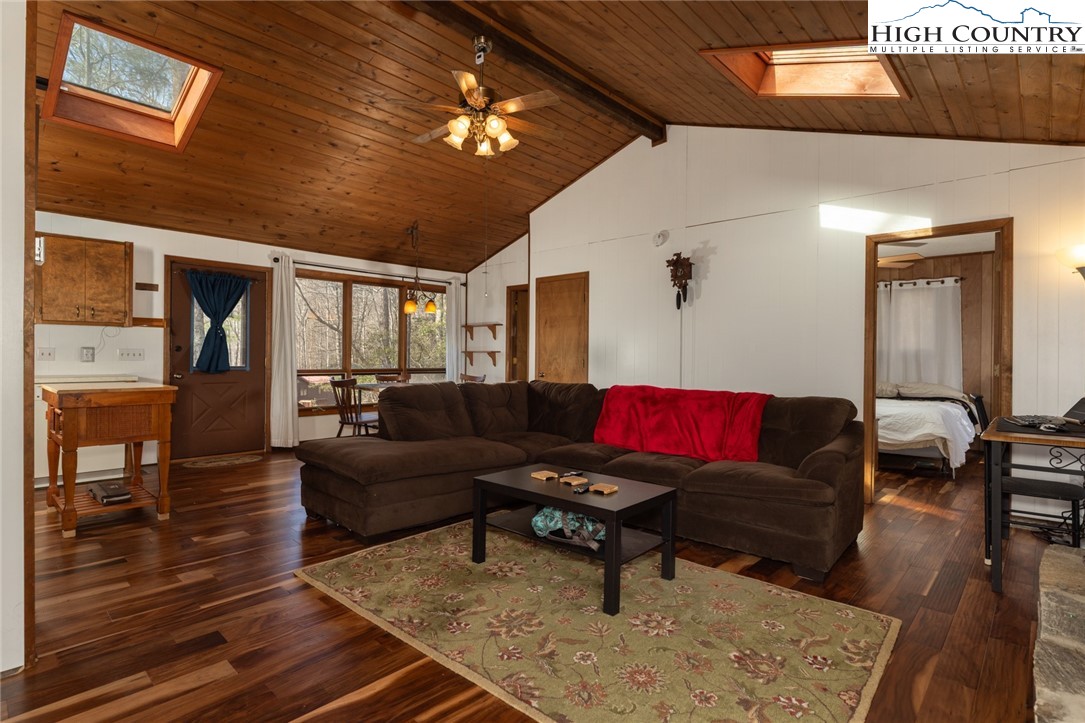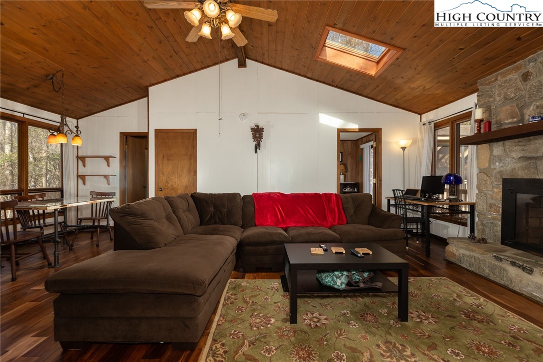 Cute mountain getaway with BIG VIEWS in the gated community of Powder Horn. The perfect 2 bed 2 full bath with an open floor plan, skylights, gas fireplace, screened porch, and wrap around deck, all make this cottage feel like home. Home comes furnished with few exceptions. New HVAC in 2025. New hardwood flooring 2025. Walk in unfinished crawl space below. Walk out your front door to hike the miles of trails that surround you! Community amenities are abundant here including a community pool, fitness center, clubhouse, chapel, 3 ponds, campground, miles of hiking trails, chapel, frisbee golf course, playground, half basketball court, tennis court, and MORE. POA dues are 1988 per year, gated entry, full time maintenance, and trash pick up are also included. Skyline Skybest fiber internet! Short term rentals permitted. Priced to sell. Needs some updates but excellent bones.