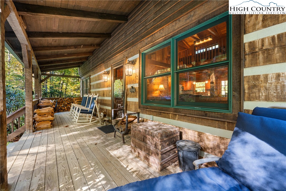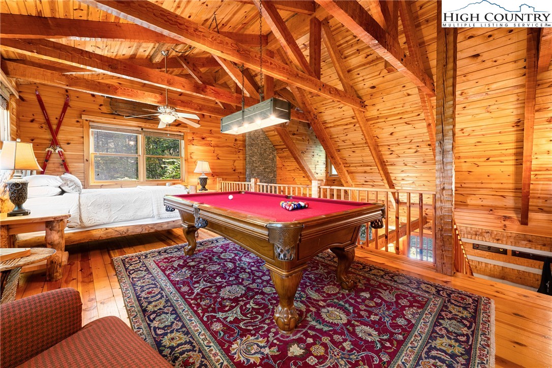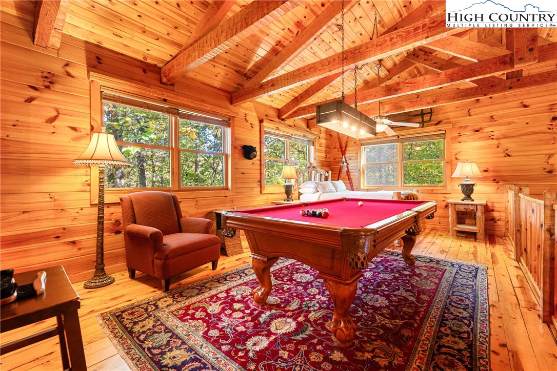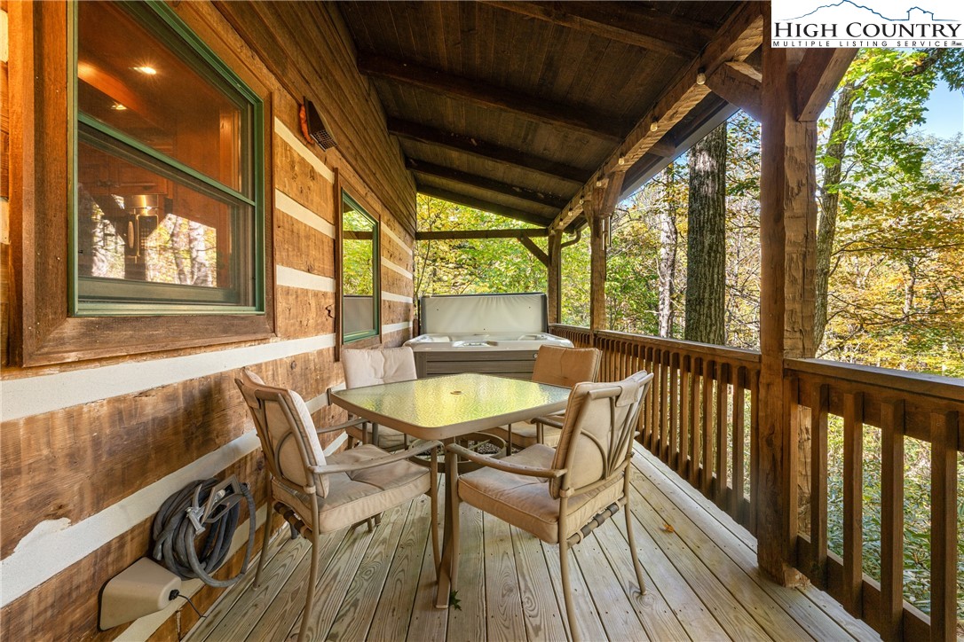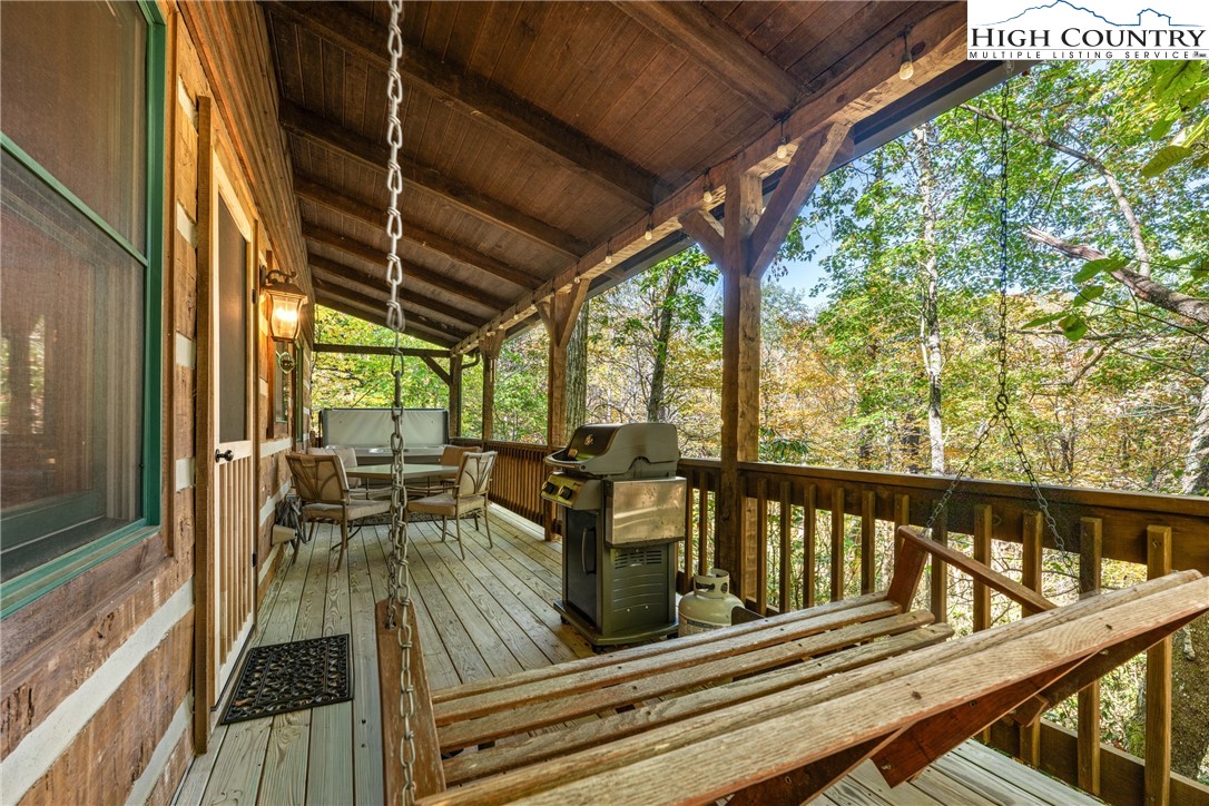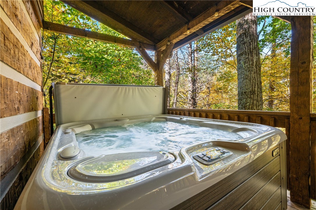 If you have been searching for a dreamy log cabin in the Blue Ridge Mountains, look no further! Nestled among the trees in the peaceful community of Lost Creek, located between Blowing Rock and Linville. This secluded yet easily accessible gated community is just an 18 minute gorgeous drive (mostly via the Blue Ridge Parkway if you desire) from Blowing Rock and 10 minutes to Grandfather Mountain, and provides privacy and serenity and close proximity to world class hiking, climbing, mountain biking, and all the other outdoor adventures offered by the Pisgah National Forest and the NC High Country. This idyllic mountain cabin features 2 bedrooms and 2 baths with an open floor plan featuring vaulted ceilings and a stunning floor to ceiling stacked stone wood burning fireplace, setting the scene for magical evenings by the fire. Step outside to enjoy the soothing sounds of a nearby creek or unwind in the hot tub while soaking in breathtaking natural scenery that surrounds you. The main level hosts a spacious bedroom with an ensuite bath, walk-in shower, and a luxurious soaking tub, ideal for relaxation after a day of adventure. Upstairs you will find a large versatile loft with expansive picture windows, currently set up as a game room and also featuring a queen bed for bonus overnight guests. The beautiful 2nd bedroom offers soaring vaulted ceilings and a gorgeous en suite bathroom. Meticulously maintained, the cabin features an updated roof, kitchen, bathrooms, HVAC, and appliances (2019-2021). Being offered fully furnished minus dishes, kitchenware, towels, linens, and the leather chair, this nearly turn-key property would be wonderful as a vacation home and is in a neighborhood that allows short term rentals, it could make for an excellent rental investment opportunity. Discover your mountain getaway where outdoor adventure and tranquil relaxation seamlessly combine for the mountain lifestyle you have been dreaming of.
