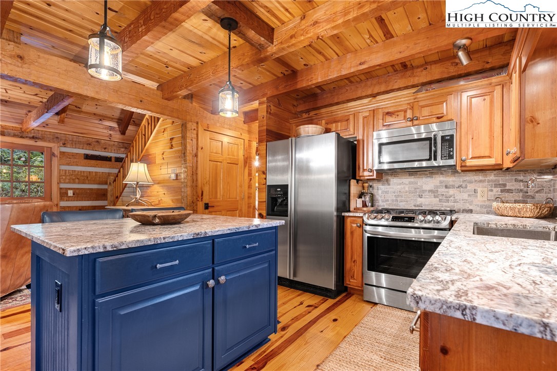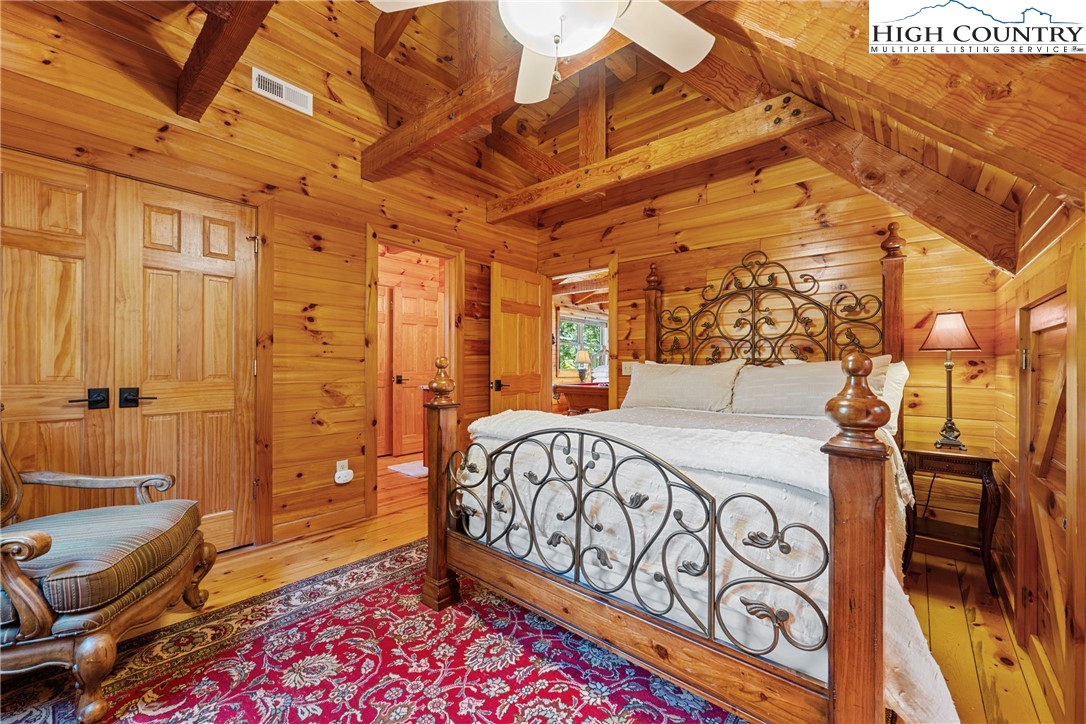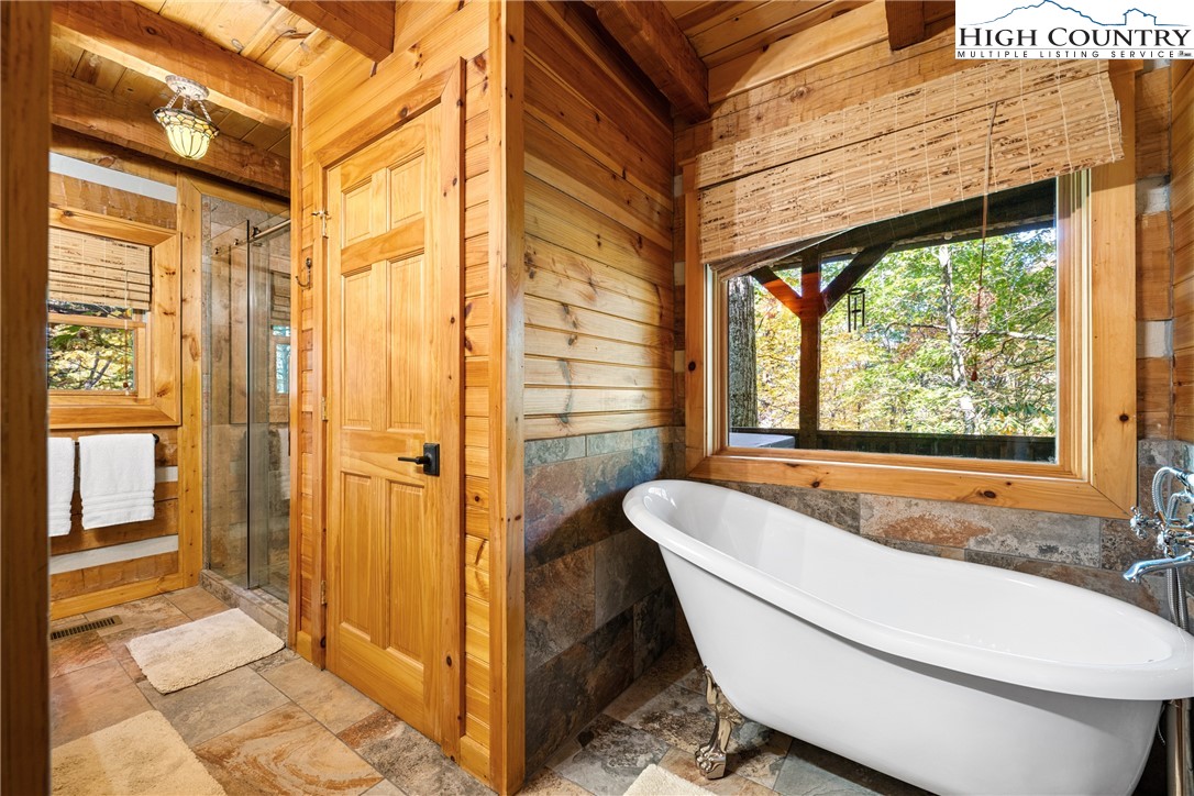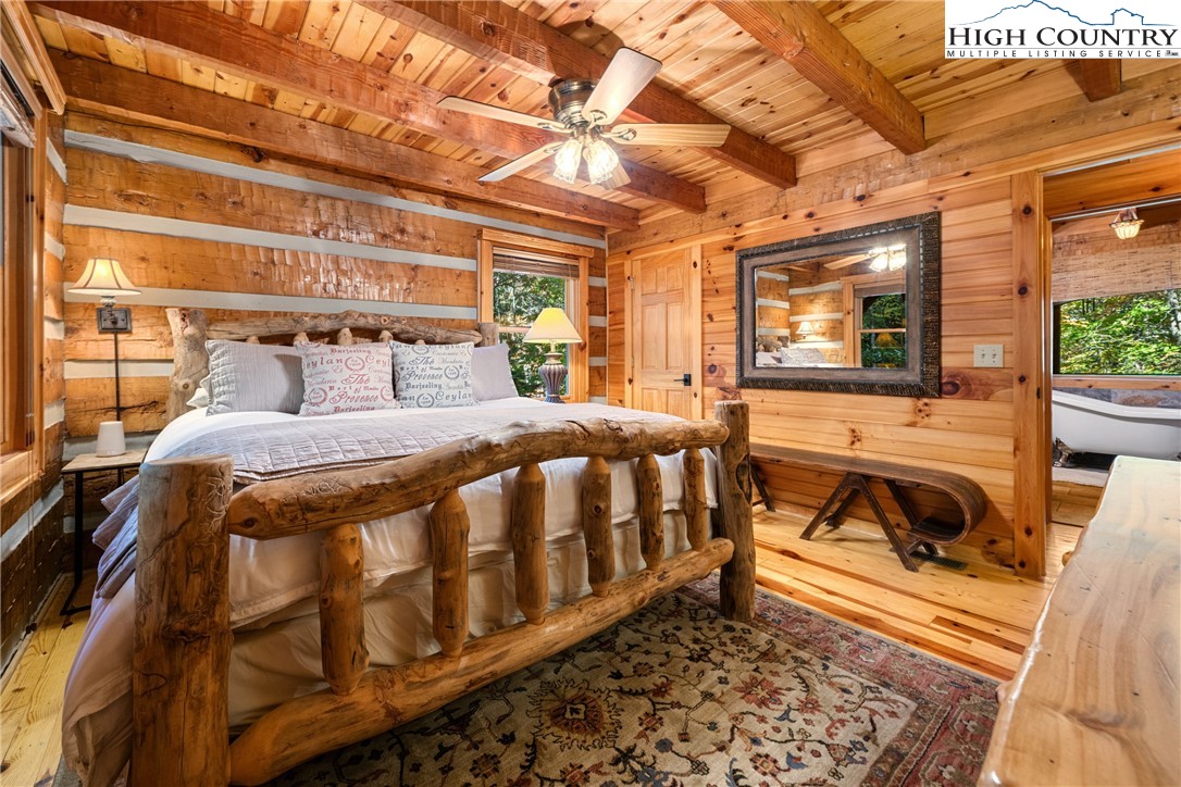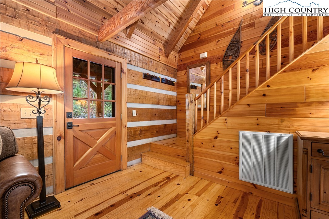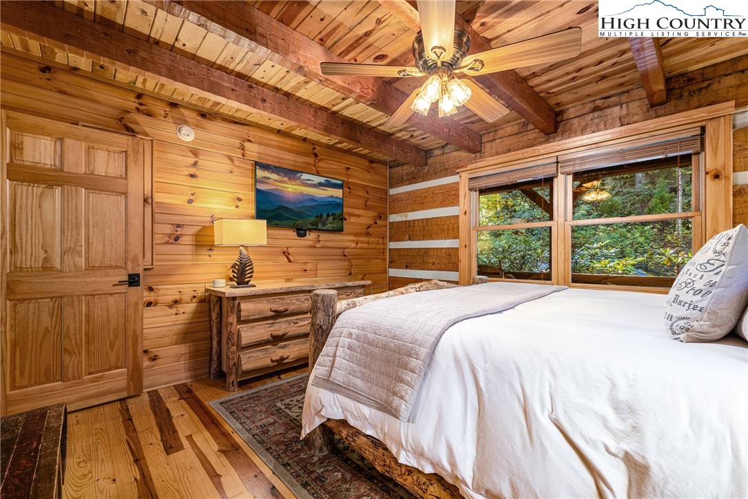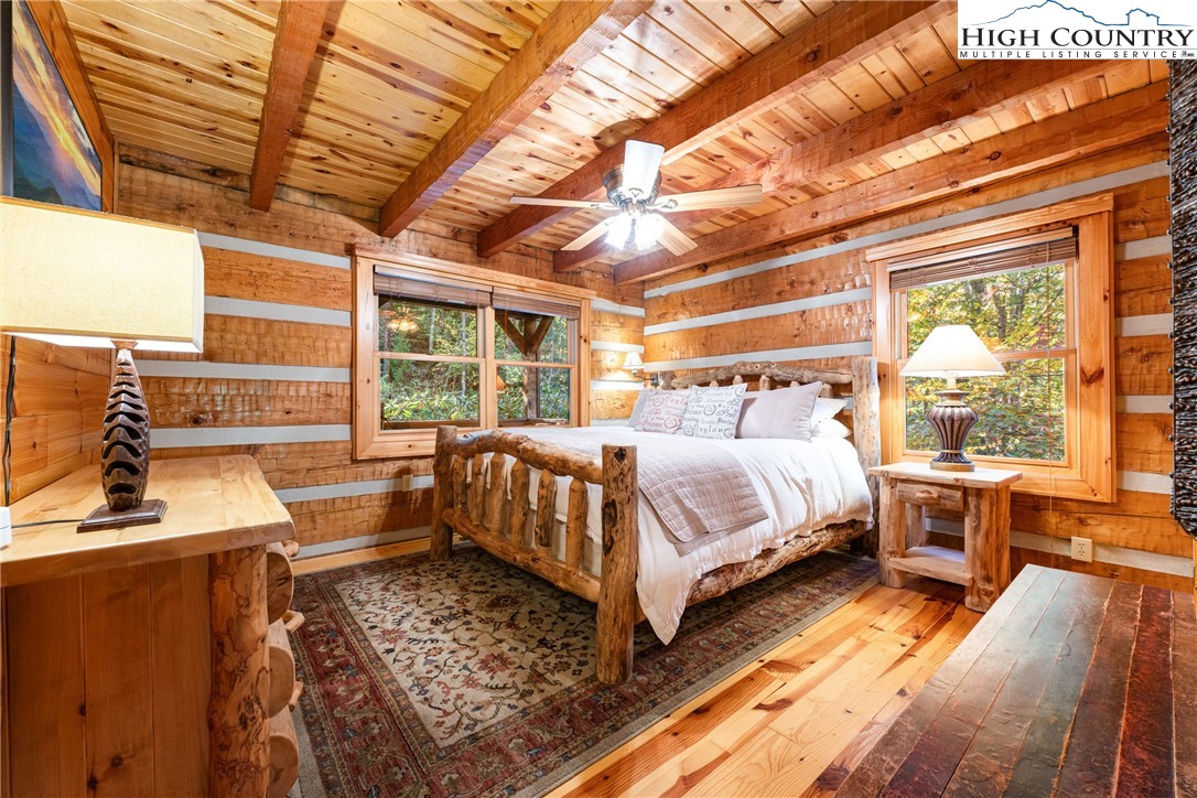 If you have been searching for a dreamy log cabin in the Blue Ridge Mountains, look no further! Nestled among the trees in the peaceful community of Lost Creek, located between Blowing Rock and Linville. This secluded yet easily accessible gated community is just an 18 minute gorgeous drive (mostly via the Blue Ridge Parkway if you desire) from Blowing Rock and 10 minutes to Grandfather Mountain, and provides privacy and serenity and close proximity to world class hiking, climbing, mountain biking, and all the other outdoor adventures offered by the Pisgah National Forest and the NC High Country. This idyllic mountain cabin features 2 bedrooms and 2 baths with an open floor plan featuring vaulted ceilings and a stunning floor to ceiling stacked stone wood burning fireplace, setting the scene for magical evenings by the fire. Step outside to enjoy the soothing sounds of a nearby creek or unwind in the hot tub while soaking in breathtaking natural scenery that surrounds you. The main level hosts a spacious bedroom with an ensuite bath, walk-in shower, and a luxurious soaking tub, ideal for relaxation after a day of adventure. Upstairs you will find a large versatile loft with expansive picture windows, currently set up as a game room and also featuring a queen bed for bonus overnight guests. The beautiful 2nd bedroom offers soaring vaulted ceilings and a gorgeous en suite bathroom. Meticulously maintained, the cabin features an updated roof, kitchen, bathrooms, HVAC, and appliances (2019-2021). Being offered fully furnished minus dishes, kitchenware, towels, linens, and the leather chair, this nearly turn-key property would be wonderful as a vacation home and is in a neighborhood that allows short term rentals, it could make for an excellent rental investment opportunity. Discover your mountain getaway where outdoor adventure and tranquil relaxation seamlessly combine for the mountain lifestyle you have been dreaming of.