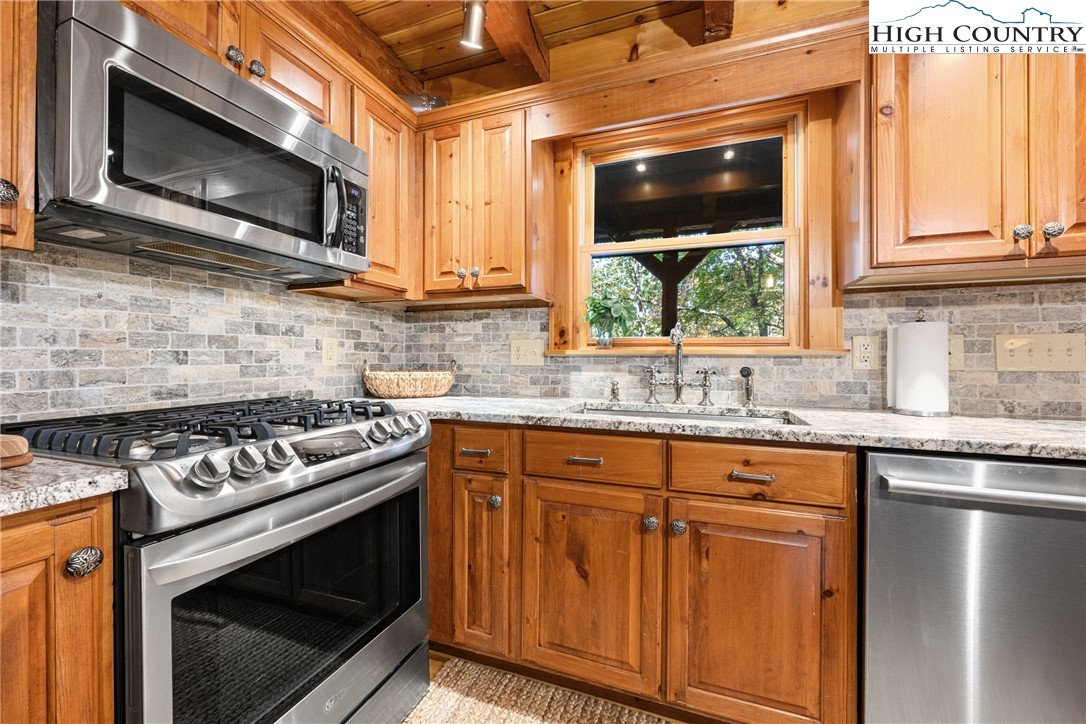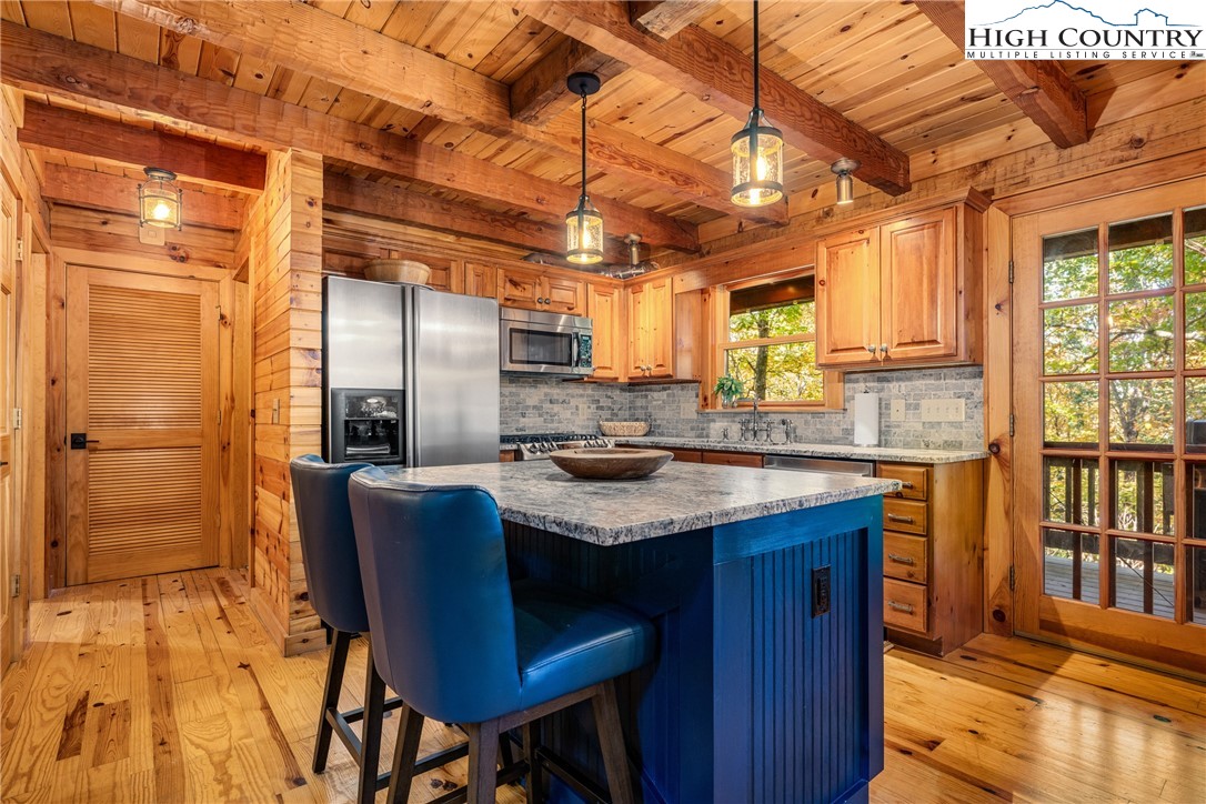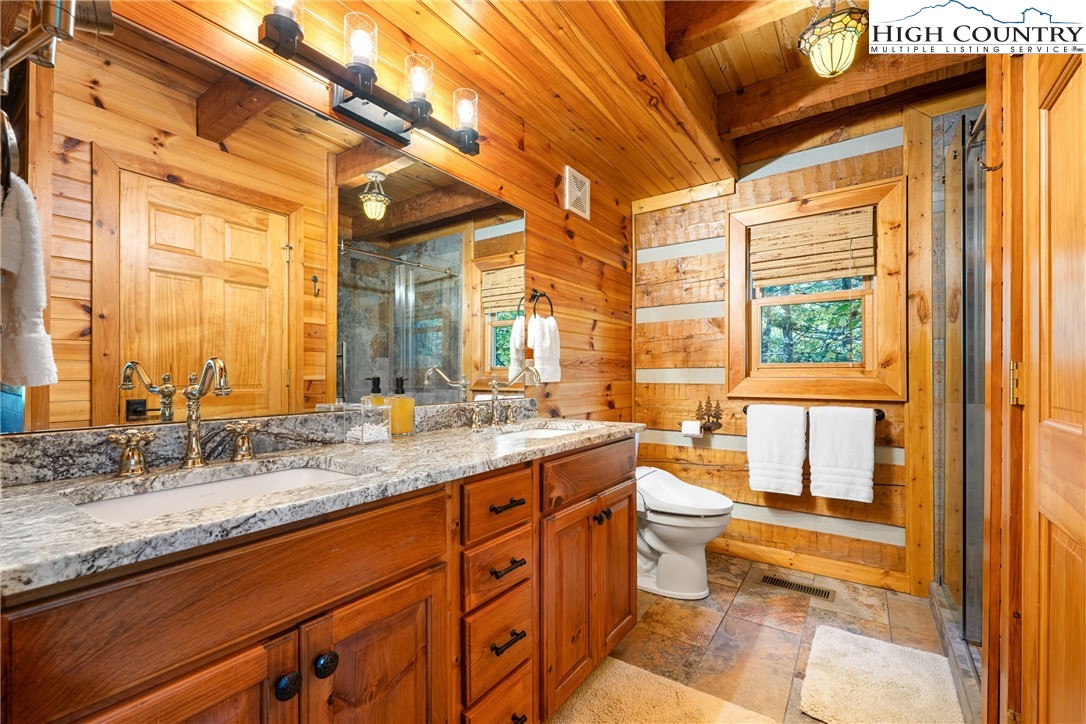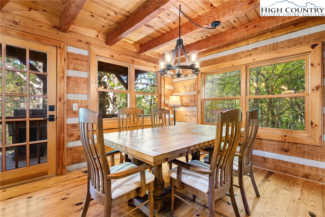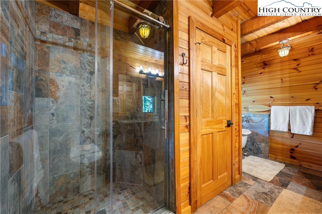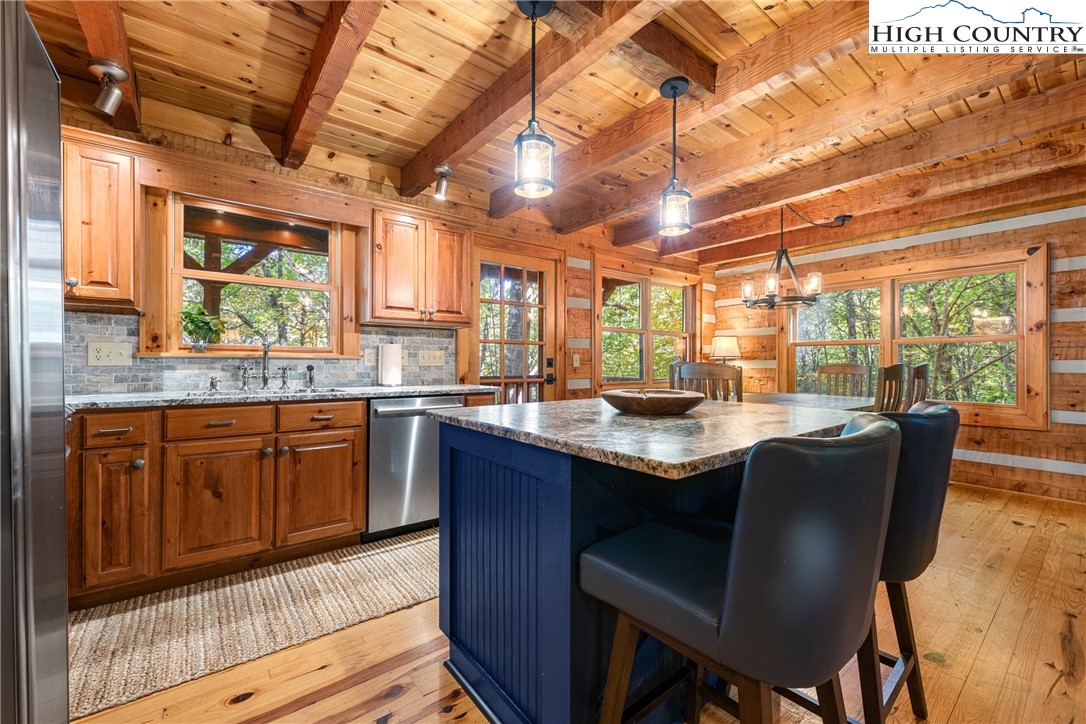 If you have been searching for a dreamy log cabin in the Blue Ridge Mountains, look no further! Nestled among the trees in the peaceful community of Lost Creek, located between Blowing Rock and Linville. This secluded yet easily accessible gated community is just an 18 minute gorgeous drive (mostly via the Blue Ridge Parkway if you desire) from Blowing Rock and 10 minutes to Grandfather Mountain, and provides privacy and serenity and close proximity to world class hiking, climbing, mountain biking, and all the other outdoor adventures offered by the Pisgah National Forest and the NC High Country. This idyllic mountain cabin features 2 bedrooms and 2 baths with an open floor plan featuring vaulted ceilings and a stunning floor to ceiling stacked stone wood burning fireplace, setting the scene for magical evenings by the fire. Step outside to enjoy the soothing sounds of a nearby creek or unwind in the hot tub while soaking in breathtaking natural scenery that surrounds you. The main level hosts a spacious bedroom with an ensuite bath, walk-in shower, and a luxurious soaking tub, ideal for relaxation after a day of adventure. Upstairs you will find a large versatile loft with expansive picture windows, currently set up as a game room and also featuring a queen bed for bonus overnight guests. The beautiful 2nd bedroom offers soaring vaulted ceilings and a gorgeous en suite bathroom. Meticulously maintained, the cabin features an updated roof, kitchen, bathrooms, HVAC, and appliances (2019-2021). Being offered fully furnished minus dishes, kitchenware, towels, linens, and the leather chair, this nearly turn-key property would be wonderful as a vacation home and is in a neighborhood that allows short term rentals, it could make for an excellent rental investment opportunity. Discover your mountain getaway where outdoor adventure and tranquil relaxation seamlessly combine for the mountain lifestyle you have been dreaming of.
