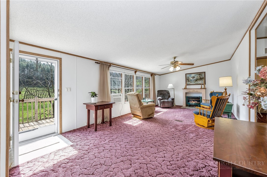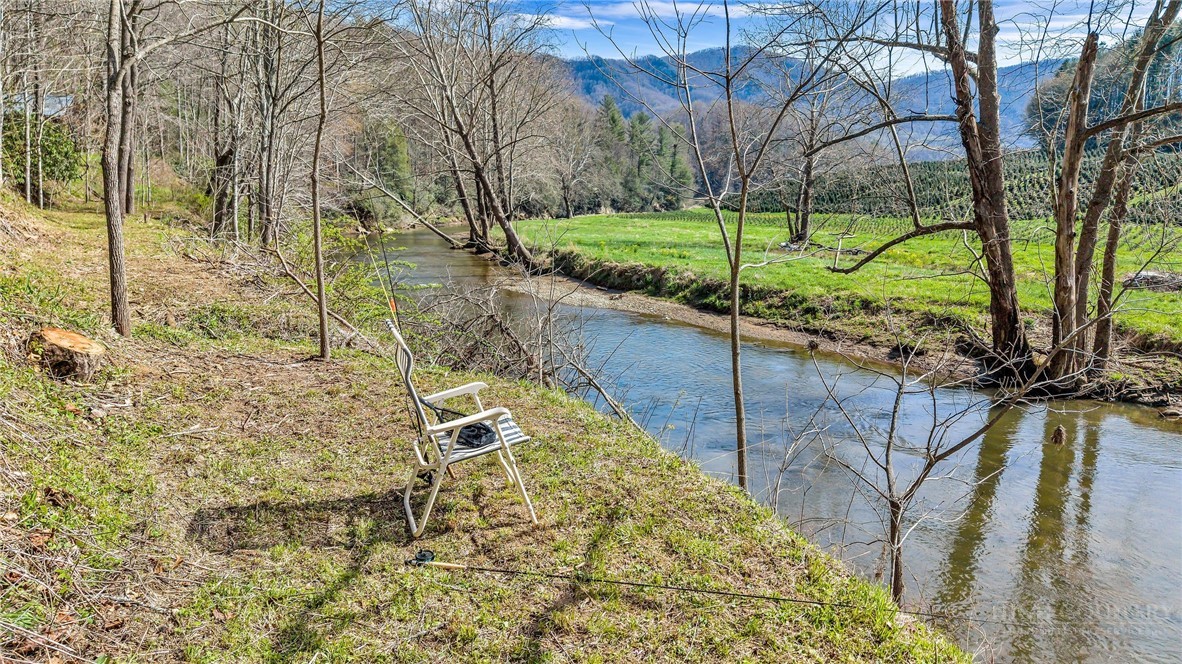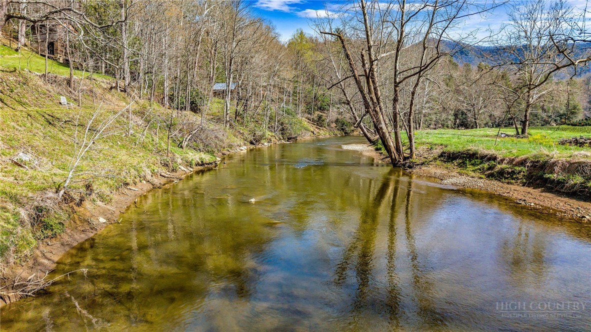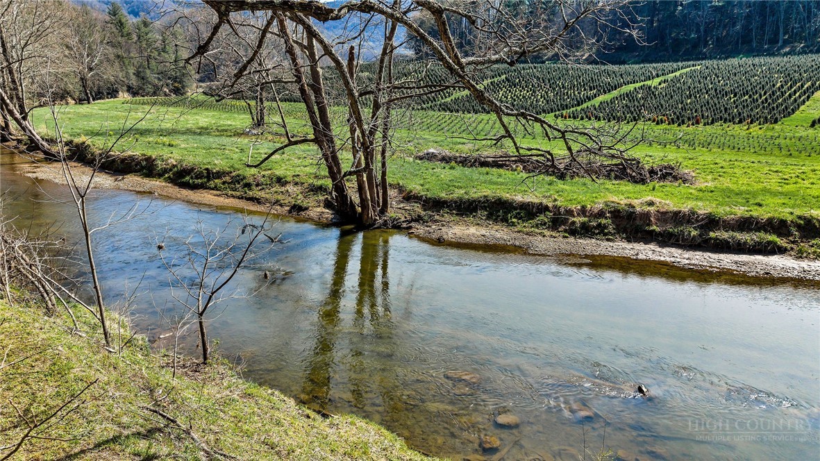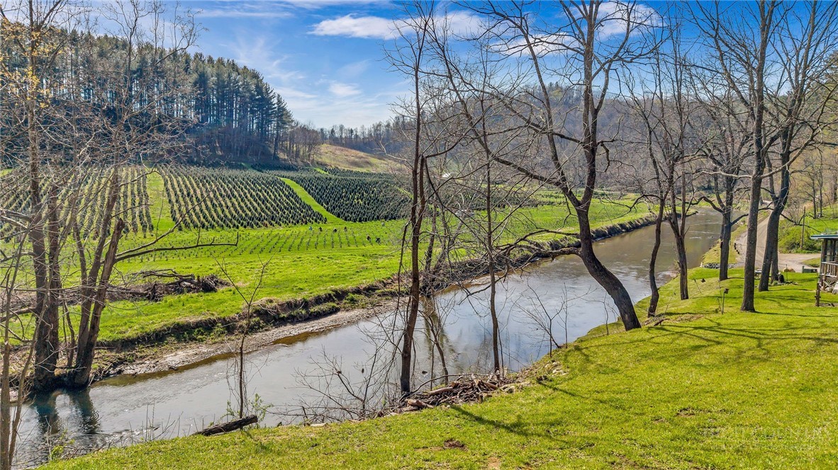Riverfront mountain retreat on 2 acres overlooking the North Fork of the New River with Christmas tree farm views and mountain peaks rising in the distance. This 2-bedroom, 2-full bath getaway invites you to slow down and savor the natural beauty that surrounds you. Spend your days fishing, floating in the river, or simply enjoying the peace and tranquility that make this setting so special. As evening falls, the night sky, shimmering river, and glowing lightning bugs create a truly magical atmosphere. Step inside to the great room, where the kitchen, dining, and living areas blend seamlessly to create an inviting space for gathering, enhanced by a wall of windows in the living room that fills the space with natural light and brings the surrounding views indoors. The primary bedroom features double closets and an ensuite full bath with laundry. A hall full bath is conveniently located off the great room next to the guest bedroom. A spacious deck overlooking the river creates the ideal setting for morning coffee accompanied by birdsong, or an evening drink while waiting for the stars to appear and reflecting on the day’s adventures. A charming workshop or hobby room offers excellent space for creative pursuits, projects, or additional storage. Enjoy a tucked-away riverfront setting with the home situated above the flood area and level usable space below for outdoor enjoyment by the river. A fenced area off the side deck provides added convenience for dog owners. The roof was replaced in 2023, and plumbing was updated in 2024.