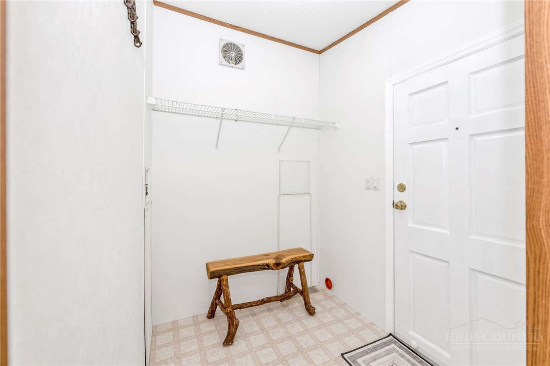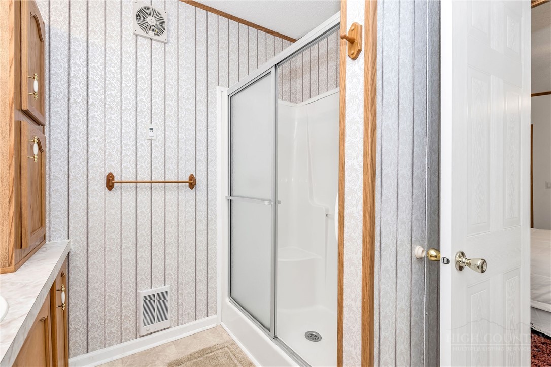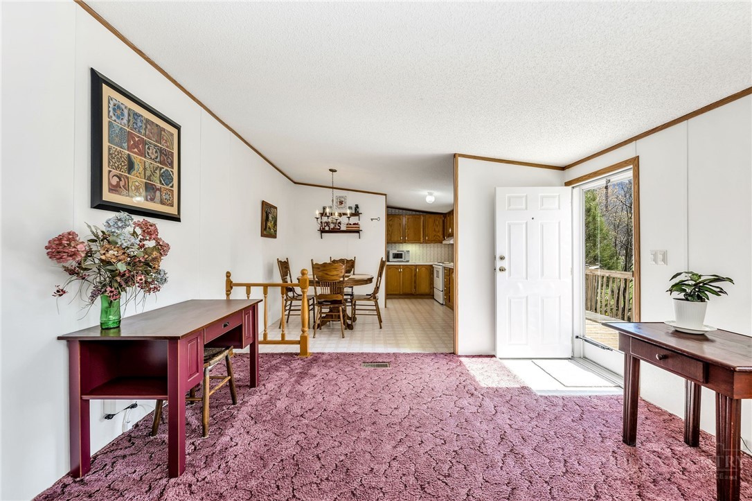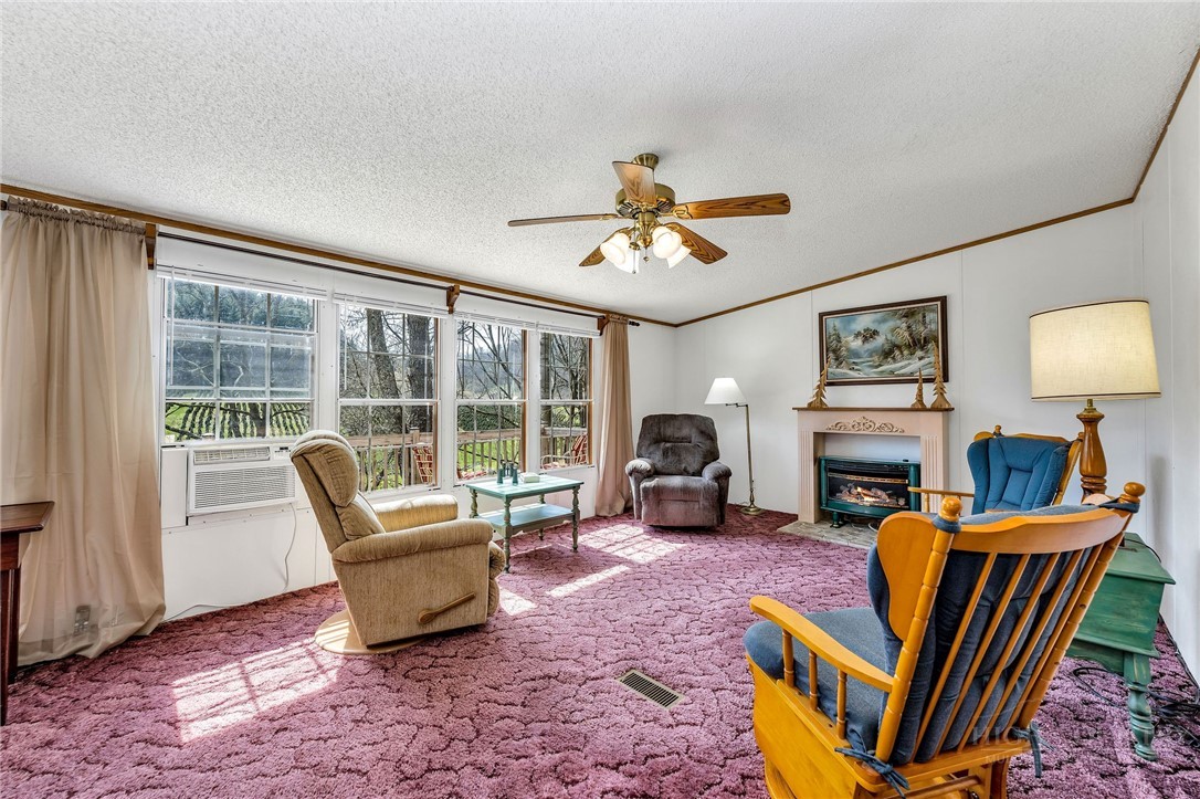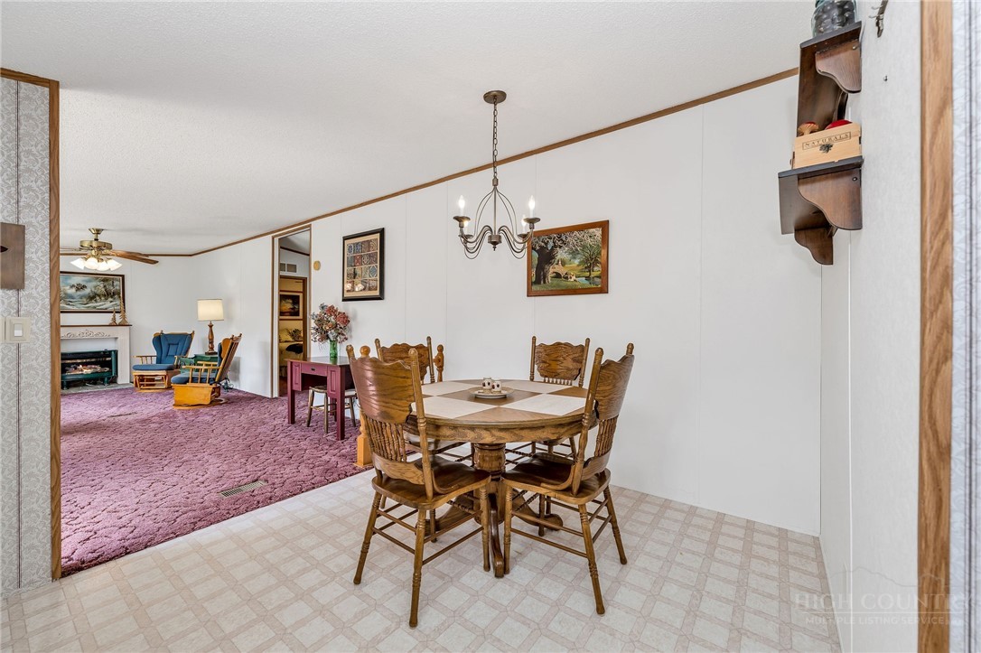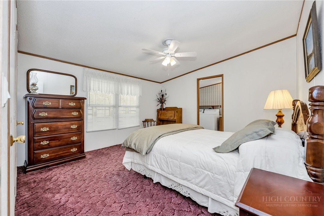 Riverfront mountain retreat on 2 acres overlooking the North Fork of the New River with Christmas tree farm views and mountain peaks rising in the distance. This 2-bedroom, 2-full bath getaway invites you to slow down and savor the natural beauty that surrounds you. Spend your days fishing, floating in the river, or simply enjoying the peace and tranquility that make this setting so special. As evening falls, the night sky, shimmering river, and glowing lightning bugs create a truly magical atmosphere. Step inside to the great room, where the kitchen, dining, and living areas blend seamlessly to create an inviting space for gathering, enhanced by a wall of windows in the living room that fills the space with natural light and brings the surrounding views indoors. The primary bedroom features double closets and an ensuite full bath with laundry. A hall full bath is conveniently located off the great room next to the guest bedroom. A spacious deck overlooking the river creates the ideal setting for morning coffee accompanied by birdsong, or an evening drink while waiting for the stars to appear and reflecting on the day’s adventures. A charming workshop or hobby room offers excellent space for creative pursuits, projects, or additional storage. Enjoy a tucked-away riverfront setting with the home situated above the flood area and level usable space below for outdoor enjoyment by the river. A fenced area off the side deck provides added convenience for dog owners. The roof was replaced in 2023, and plumbing was updated in 2024.