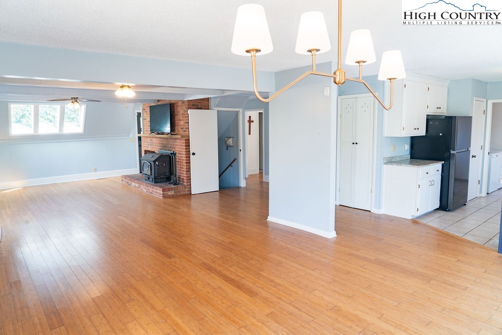 Now vacant and freshly cleaned—this home is ready for a quick closing and immediate move-in! Built in the 1970s, this 4-bedroom, 3-bath home sits on 1.1 acres and has been thoughtfully maintained and improved with: new septic system and drain field (2025), new well pump (2025), freshly painted exterior (2024) new windows (2024), whole house filtration system (2025), new roof (2020), new HVAC (2020), updated bathrooms, appliances, and fixtures throughout. The main level offers an open, welcoming layout with a family room centered around a large brick fireplace, wood burning stove followed by another open living room. The dining area flows into the kitchen which features granite countertops, updated appliances, and abundant natural light from the new windows. This level also includes a spacious laundry room, one guest bedroom, and an additional room that would make a great office or study. This main floor has a large wrap around porch & side deck which makes living inside & enjoying outside seamless. Upstairs, you’ll find two bedrooms with unique cathedral style ceilings and a full updated, bath. The front master bedroom has its own balcony overlooking the pond. The lower level includes a basement apartment with approximately 800 square feet of living space — complete with its own entrance, living room, kitchen, bedroom, bathroom, washer/dryer setup, and fireplace. This space has been a consistent rental of $900/month, offering excellent potential for income or additional family members. Additional highlights include a large dry storage area beneath the home, a flower garden, firewood storage, and a campfire pit. With its versatility, location, and mountain charm, this property is ideal as a full-time residence, vacation home, or investment opportunity with easy access (approximately 18 minutes) to Boone and West Jefferson.