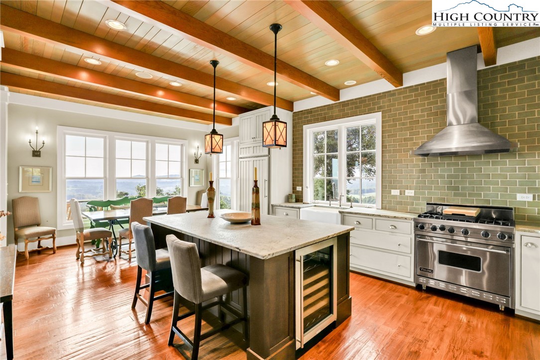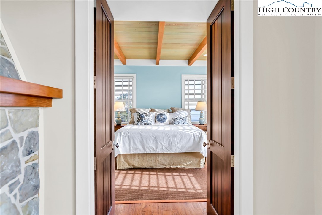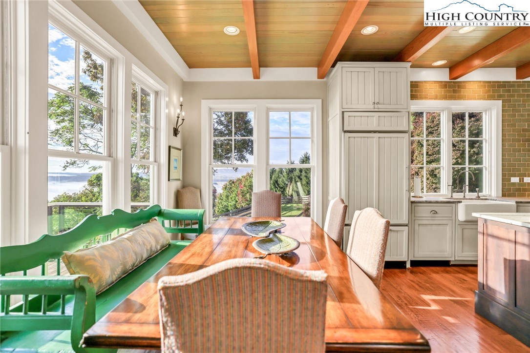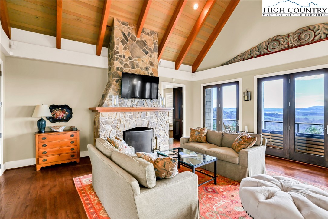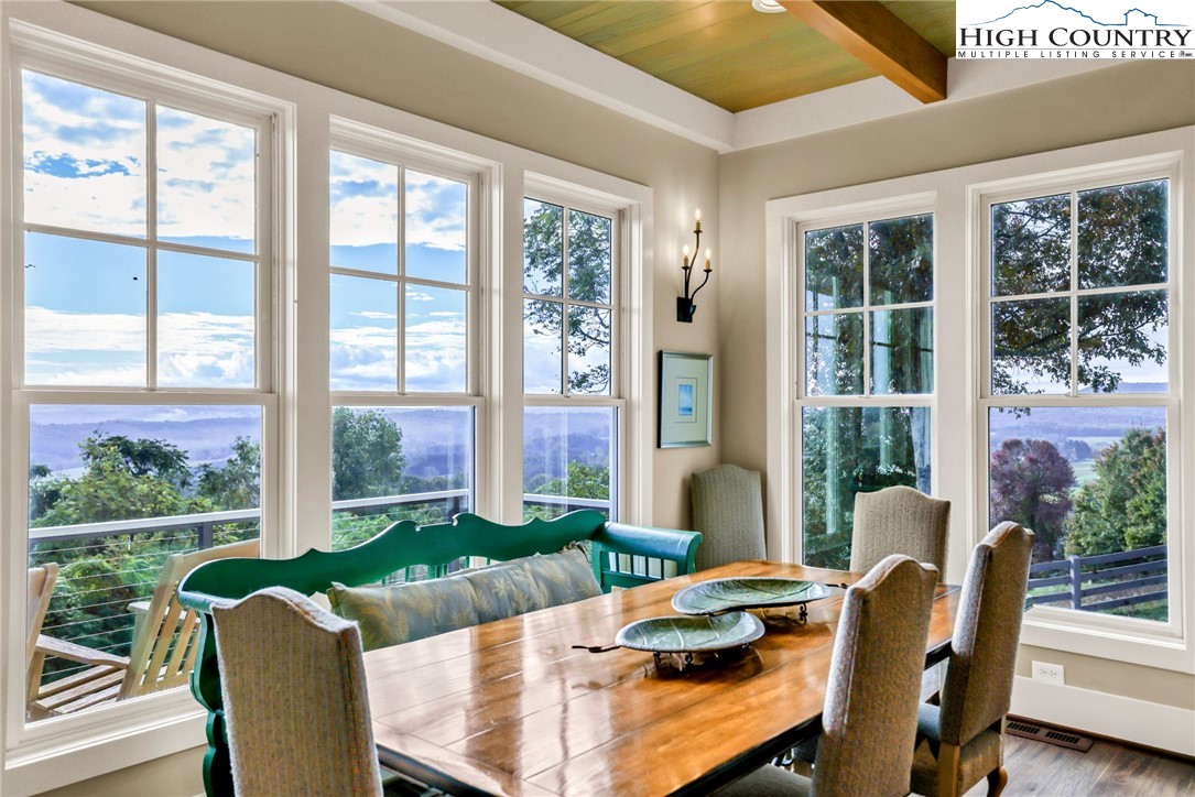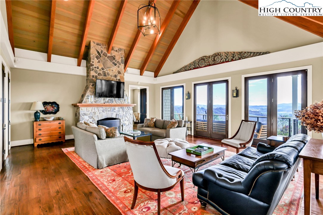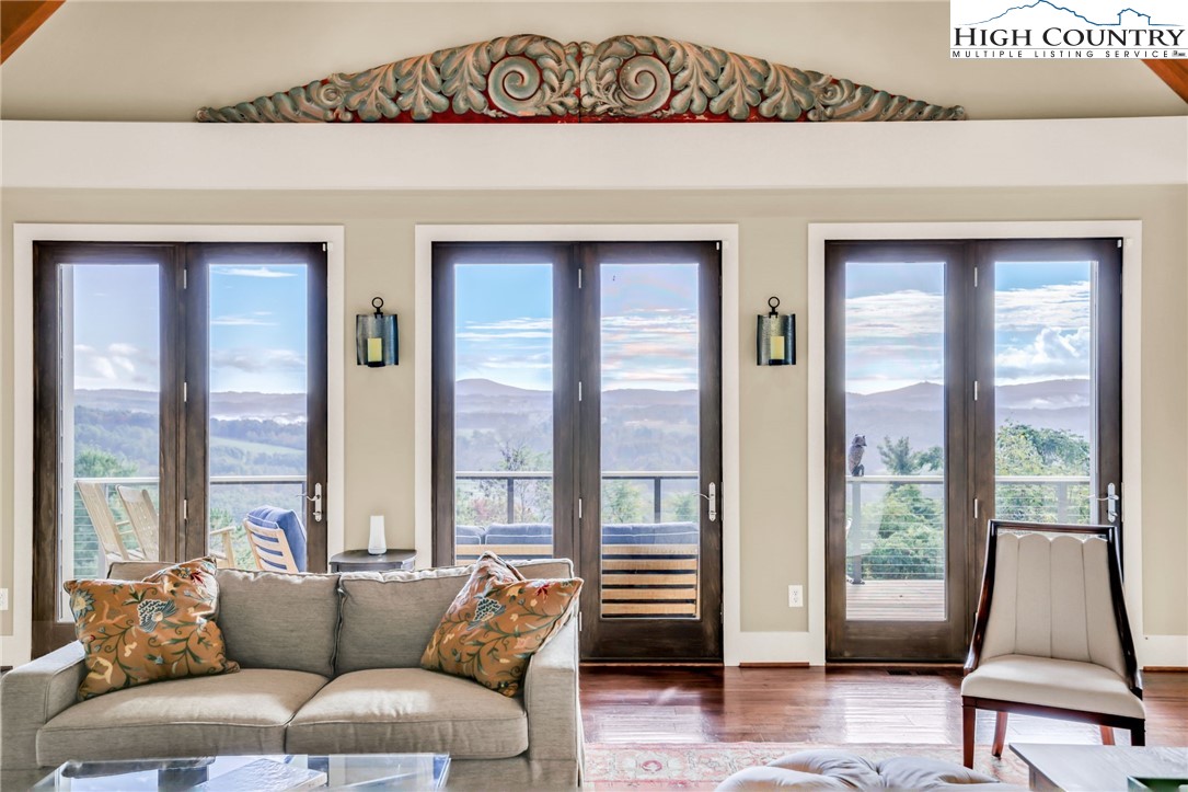 Stunning Custom-Built Home on 11± Acres with Breathtaking Blue Ridge Mountain Views! Situated on over 11± peaceful acres in beautiful Alleghany County, this remarkable custom home captures the perfect balance of mountain charm, craftsmanship, and comfort. Step into the Great Room where a Ponderosa Pine–vaulted and beamed ceiling, beautifully crafted stone wood-burning fireplace, and a wall of windows invite you to take in sweeping Blue Ridge Mountain views. A full-length deck extends your living space outdoors—perfect for relaxing or entertaining while surrounded by nature’s beauty. Throughout the home, you’ll find exquisite details including hand-hewn hardwood floors, custom-milled 8' doors, and locally crafted cabinetry. The open-concept kitchen is a chef’s dream, featuring leathered granite countertops, high-end appliances including a Sub-Zero refrigerator and Viking gas range, and beautifully finished custom cabinetry. The adjoining dining area flows naturally for family gatherings and takes full advantage of the breathtaking views. The spacious primary suite is located on the main level and offers built-in storage and a luxurious en suite bath with marble countertops, a walk-in shower, and a garden tub. Downstairs, a cozy den with a gas log fireplace provides an ideal space for a family room, office, or guest retreat, along with two bright bedrooms—each taking advantage of the mountain views and with its own private bath. Enjoy the crisp mountain air from the expansive deck or stone patio, and take advantage of the oversized detached two-car garage for vehicles, hobbies, or storage. Located just minutes from the Blue Ridge Parkway, the Little River, stocked trout streams, and the charming town of Sparta, NC—this extraordinary property invites you to experience the serenity, craftsmanship, and timeless beauty of life in the Blue Ridge Mountains.