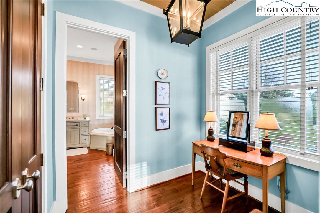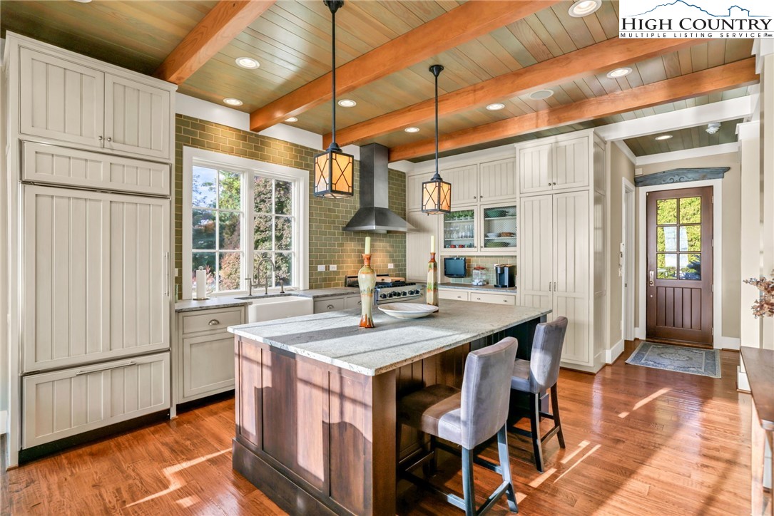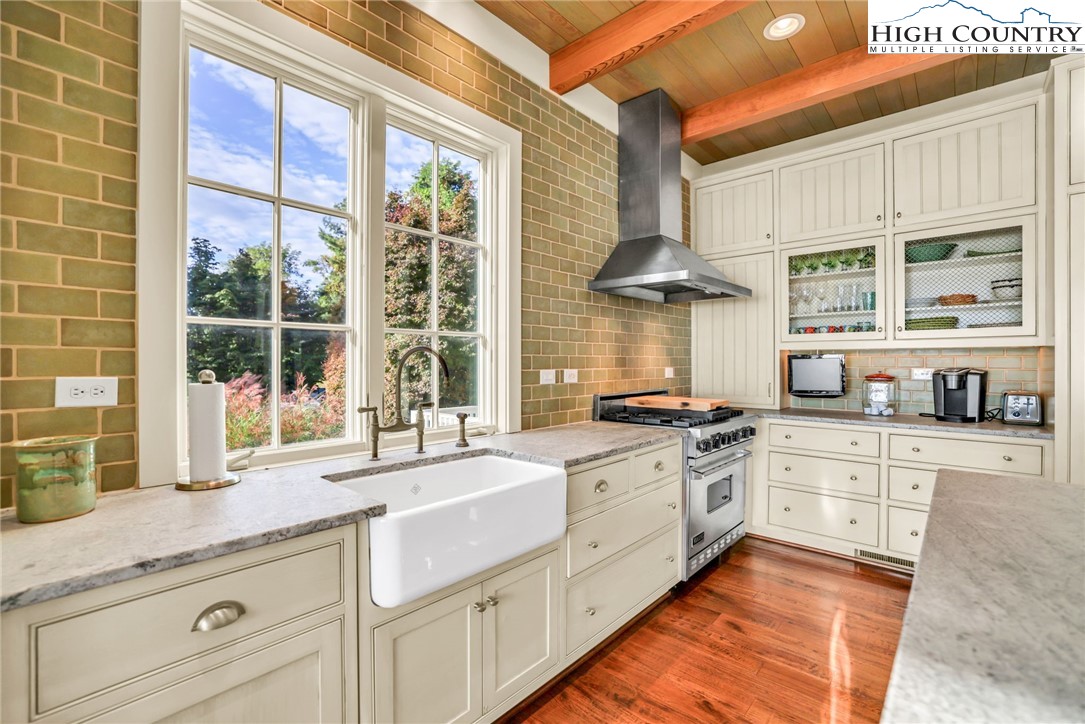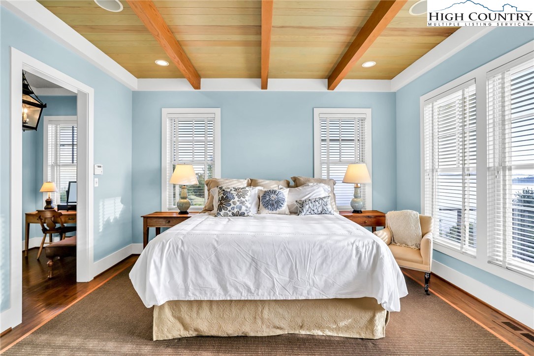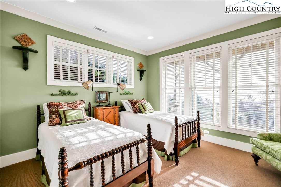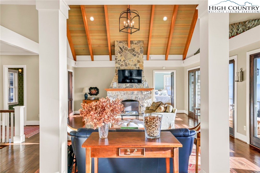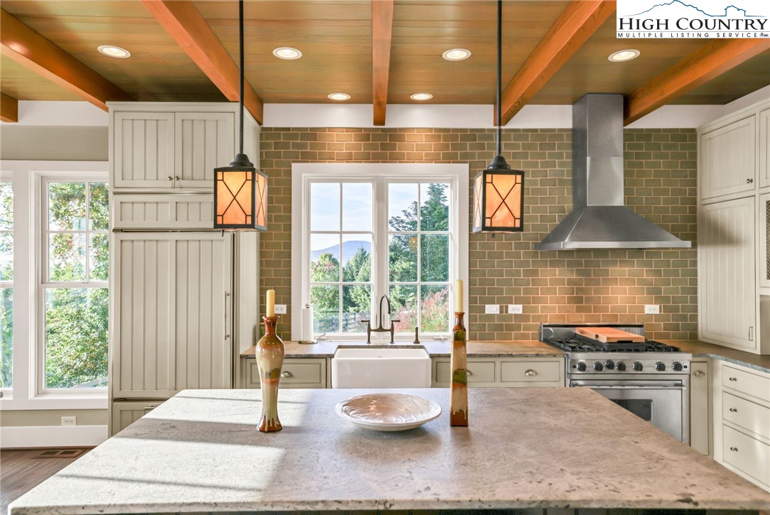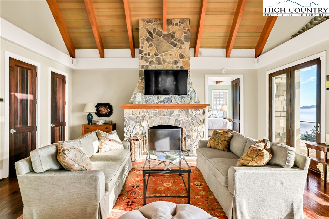 Stunning Custom-Built Home on 11± Acres with Breathtaking Blue Ridge Mountain Views! Situated on over 11± peaceful acres in beautiful Alleghany County, this remarkable custom home captures the perfect balance of mountain charm, craftsmanship, and comfort. Step into the Great Room where a Ponderosa Pine–vaulted and beamed ceiling, beautifully crafted stone wood-burning fireplace, and a wall of windows invite you to take in sweeping Blue Ridge Mountain views. A full-length deck extends your living space outdoors—perfect for relaxing or entertaining while surrounded by nature’s beauty. Throughout the home, you’ll find exquisite details including hand-hewn hardwood floors, custom-milled 8' doors, and locally crafted cabinetry. The open-concept kitchen is a chef’s dream, featuring leathered granite countertops, high-end appliances including a Sub-Zero refrigerator and Viking gas range, and beautifully finished custom cabinetry. The adjoining dining area flows naturally for family gatherings and takes full advantage of the breathtaking views. The spacious primary suite is located on the main level and offers built-in storage and a luxurious en suite bath with marble countertops, a walk-in shower, and a garden tub. Downstairs, a cozy den with a gas log fireplace provides an ideal space for a family room, office, or guest retreat, along with two bright bedrooms—each taking advantage of the mountain views and with its own private bath. Enjoy the crisp mountain air from the expansive deck or stone patio, and take advantage of the oversized detached two-car garage for vehicles, hobbies, or storage. Located just minutes from the Blue Ridge Parkway, the Little River, stocked trout streams, and the charming town of Sparta, NC—this extraordinary property invites you to experience the serenity, craftsmanship, and timeless beauty of life in the Blue Ridge Mountains.