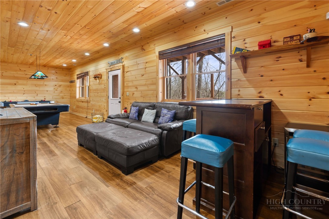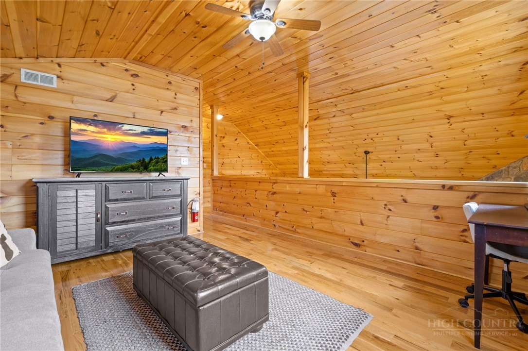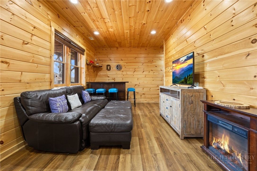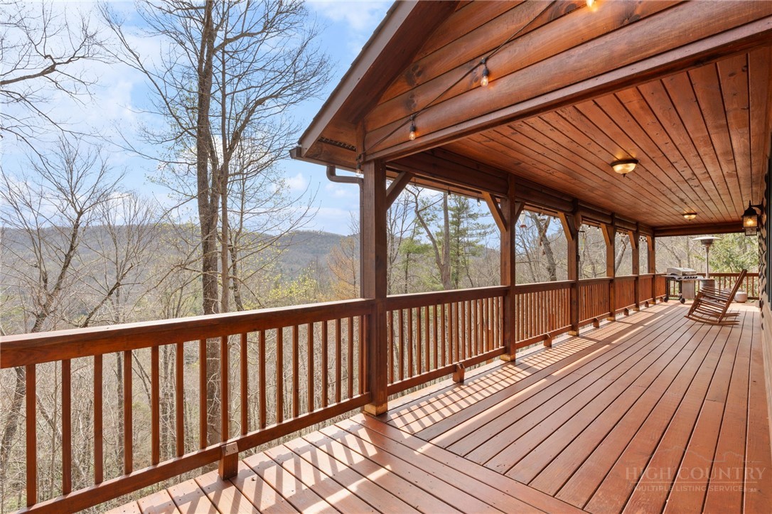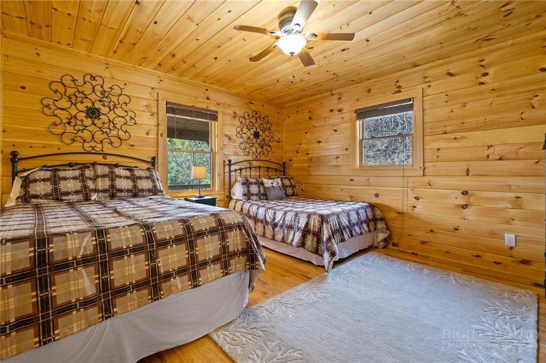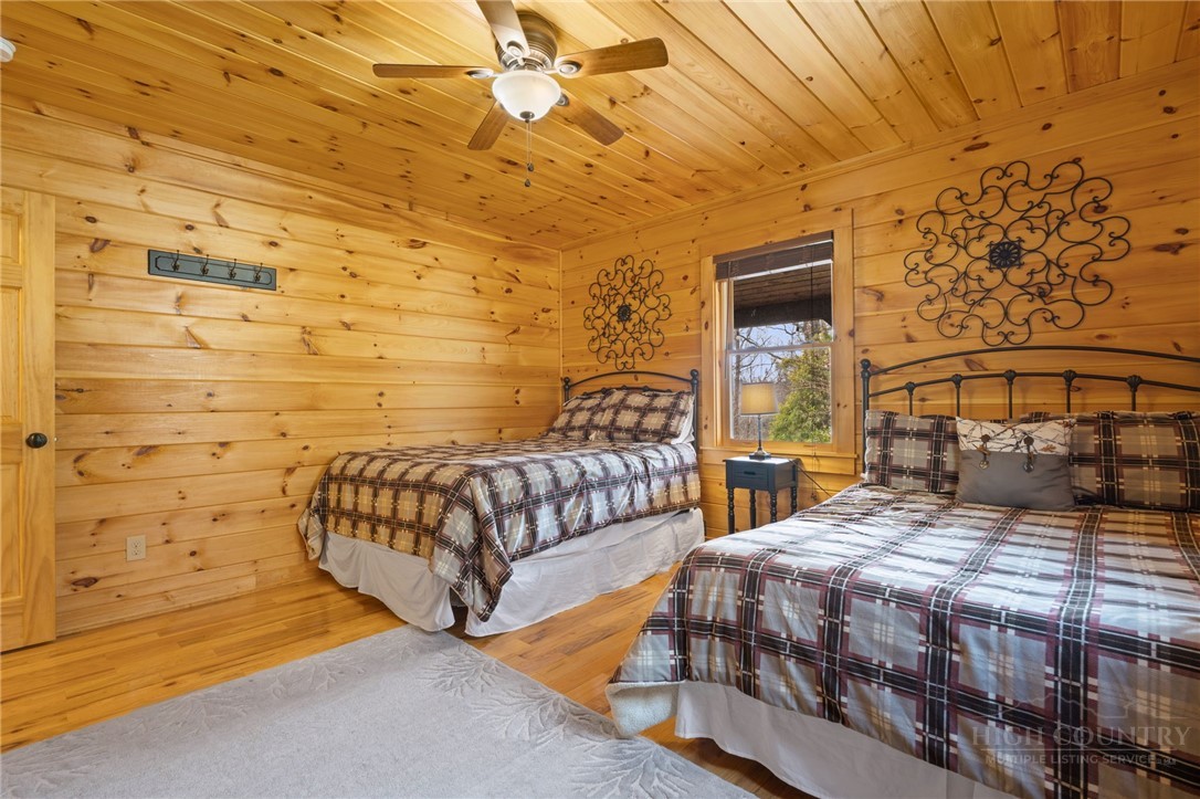 Centrally located and set on approximately 3.52 acres in Willow Creek Estates, this charming log residence offers privacy plus proximity to the High Country’s many year-round amenities. Located across from Willow Valley Golf Course, a nine-hole par-three course, the property provides convenient access to Boone, Blowing Rock and surrounding destinations. Built in 2014, the home offers approximately 3,300 heated square feet with three bedrooms and three full baths. The main level features a great room with vaulted ceilings and a stone gas fireplace, along with a kitchen fully equipped with stainless steel appliances, including a wine cooler and an adjacent dining area. Two bedrooms and a full bath are also located on this level, along with a laundry area for added convenience. The upper level includes a loft and a primary bedroom suite with a full bath. The lower level provides additional living space with a den or recreation room, a full bath and flexible use of areas suitable for guests or extended living. Currently an extra room has bunk beds and serves as another sleeping area. The recreational room has billiards and air hockey tables, a media-watching area and a bar with a second wine fridge. Amenities include internet availability, a fire pit area, a hot tub and an electric vehicle charging station. Trash service is managed with bear-resistant containers. The large, covered porches are wonderful for all types of weather. Offered fully furnished, the property is currently utilized as a popular short-term rental and is permitted for both short- and long-term rental use, providing flexibility for primary, second home or investment ownership. A discrepancy between the tax measurements and the professional measurements exists, and we have no explanation for this. To our knowledge, there have been no additions.