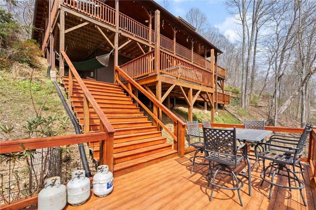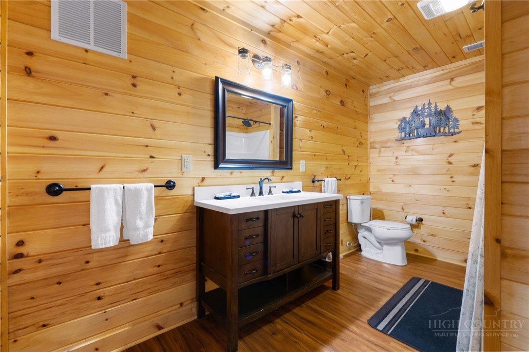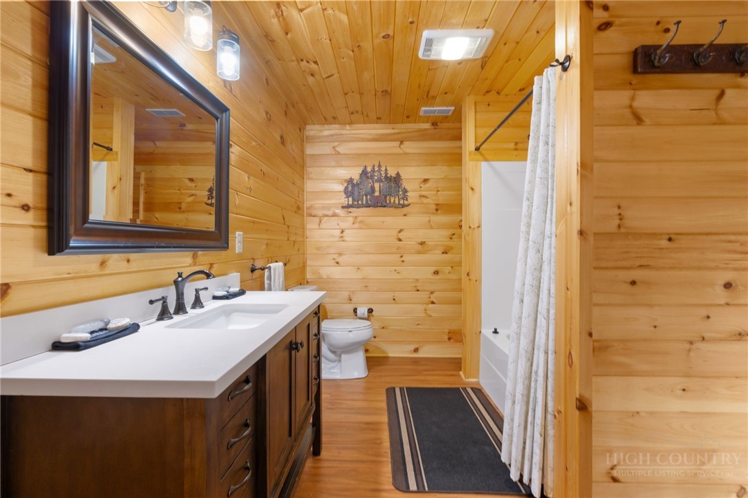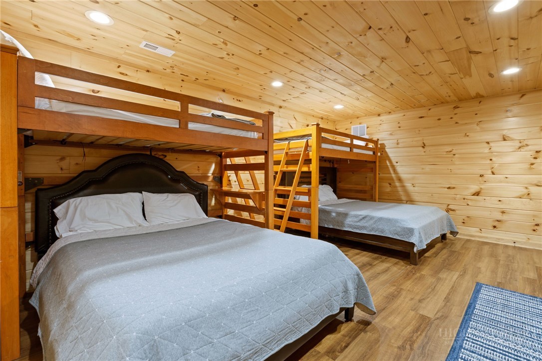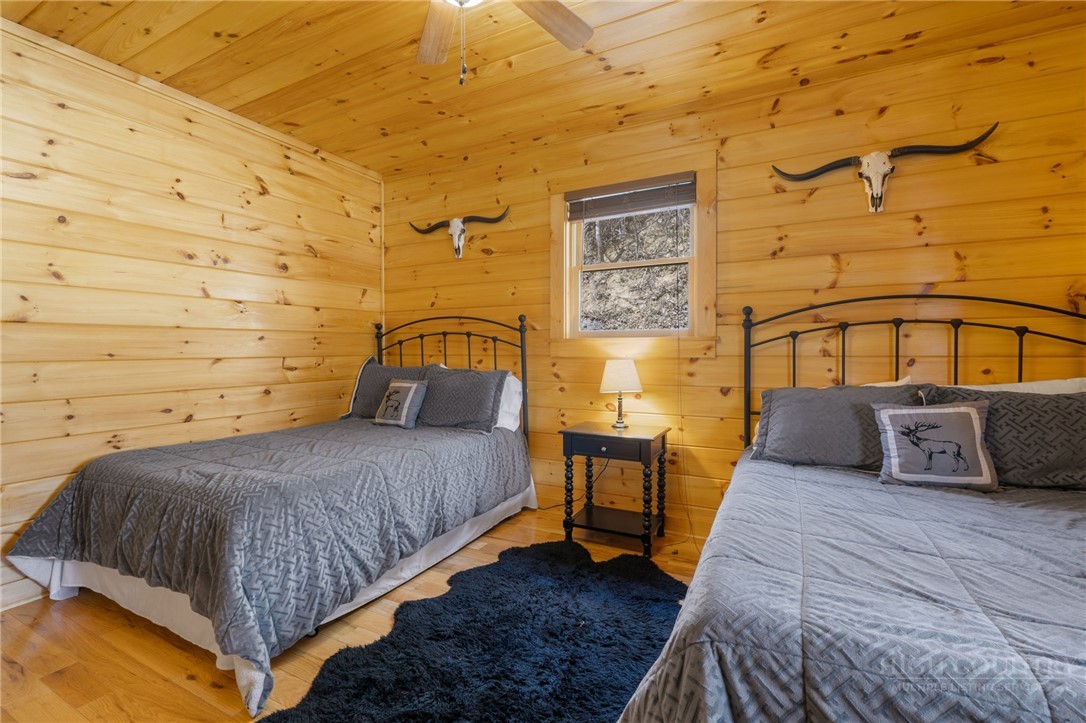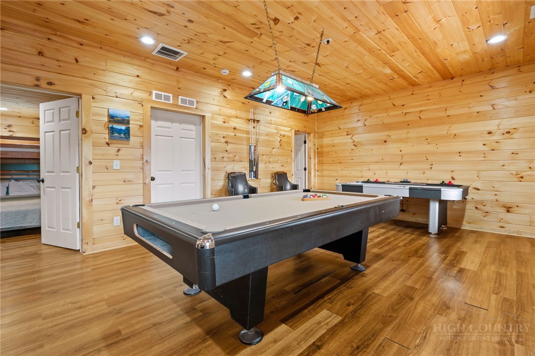 Centrally located and set on approximately 3.52 acres in Willow Creek Estates, this charming log residence offers privacy plus proximity to the High Country’s many year-round amenities. Located across from Willow Valley Golf Course, a nine-hole par-three course, the property provides convenient access to Boone, Blowing Rock and surrounding destinations. Built in 2014, the home offers approximately 3,300 heated square feet with three bedrooms and three full baths. The main level features a great room with vaulted ceilings and a stone gas fireplace, along with a kitchen fully equipped with stainless steel appliances, including a wine cooler and an adjacent dining area. Two bedrooms and a full bath are also located on this level, along with a laundry area for added convenience. The upper level includes a loft and a primary bedroom suite with a full bath. The lower level provides additional living space with a den or recreation room, a full bath and flexible use of areas suitable for guests or extended living. Currently an extra room has bunk beds and serves as another sleeping area. The recreational room has billiards and air hockey tables, a media-watching area and a bar with a second wine fridge. Amenities include internet availability, a fire pit area, a hot tub and an electric vehicle charging station. Trash service is managed with bear-resistant containers. The large, covered porches are wonderful for all types of weather. Offered fully furnished, the property is currently utilized as a popular short-term rental and is permitted for both short- and long-term rental use, providing flexibility for primary, second home or investment ownership. A discrepancy between the tax measurements and the professional measurements exists, and we have no explanation for this. To our knowledge, there have been no additions.