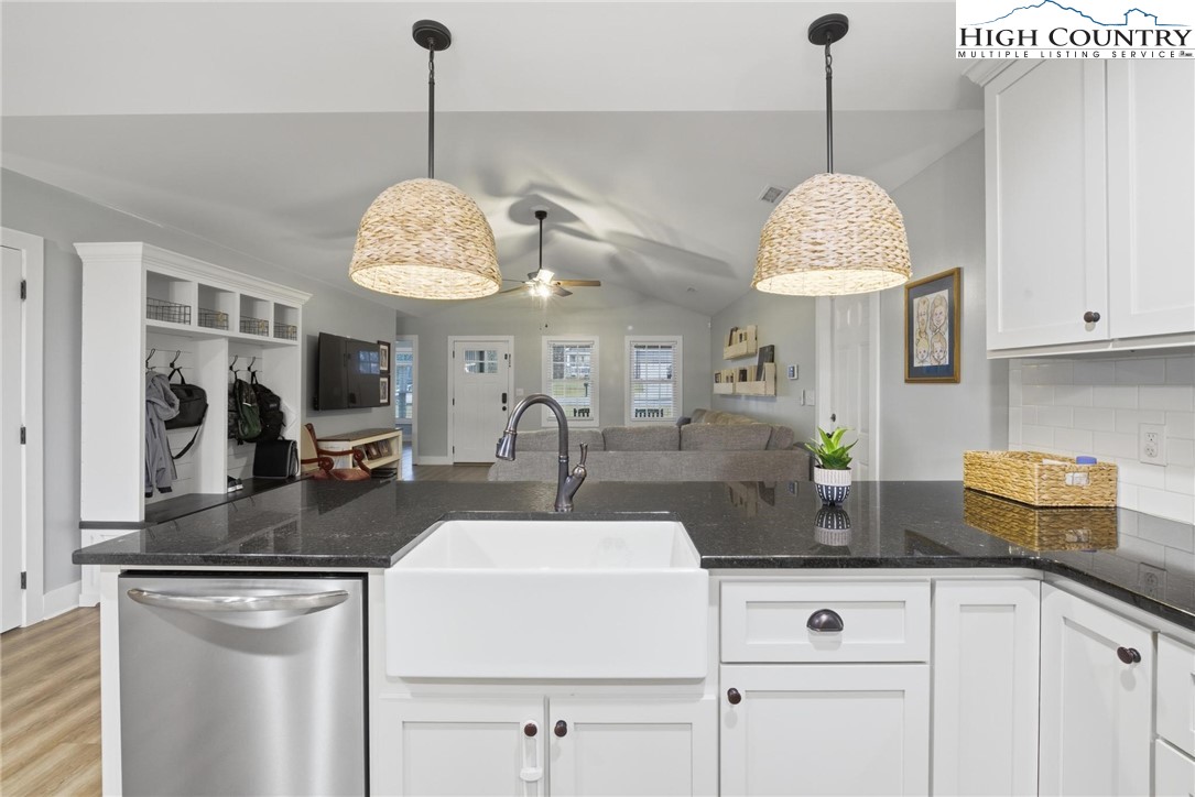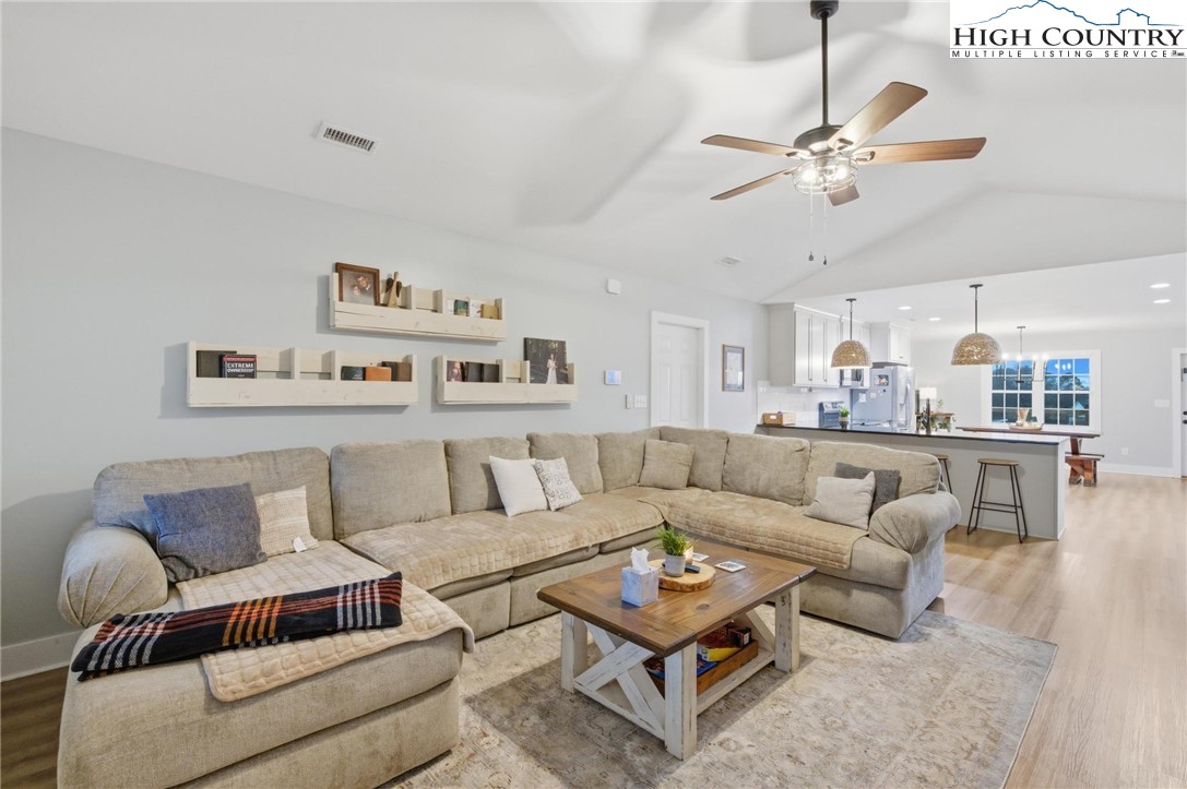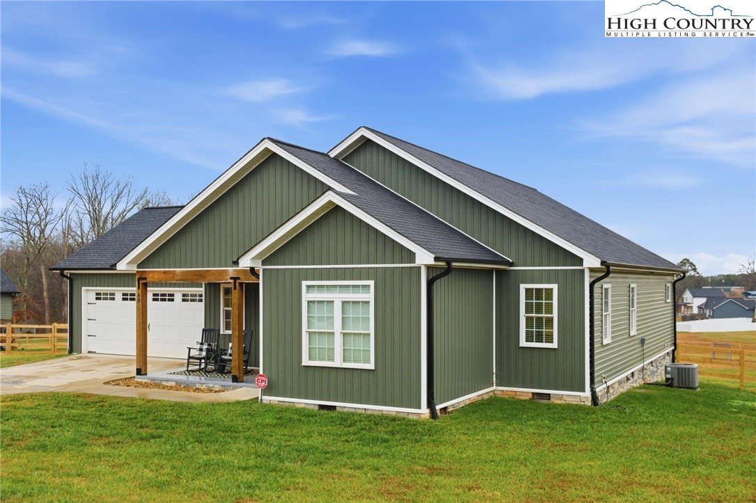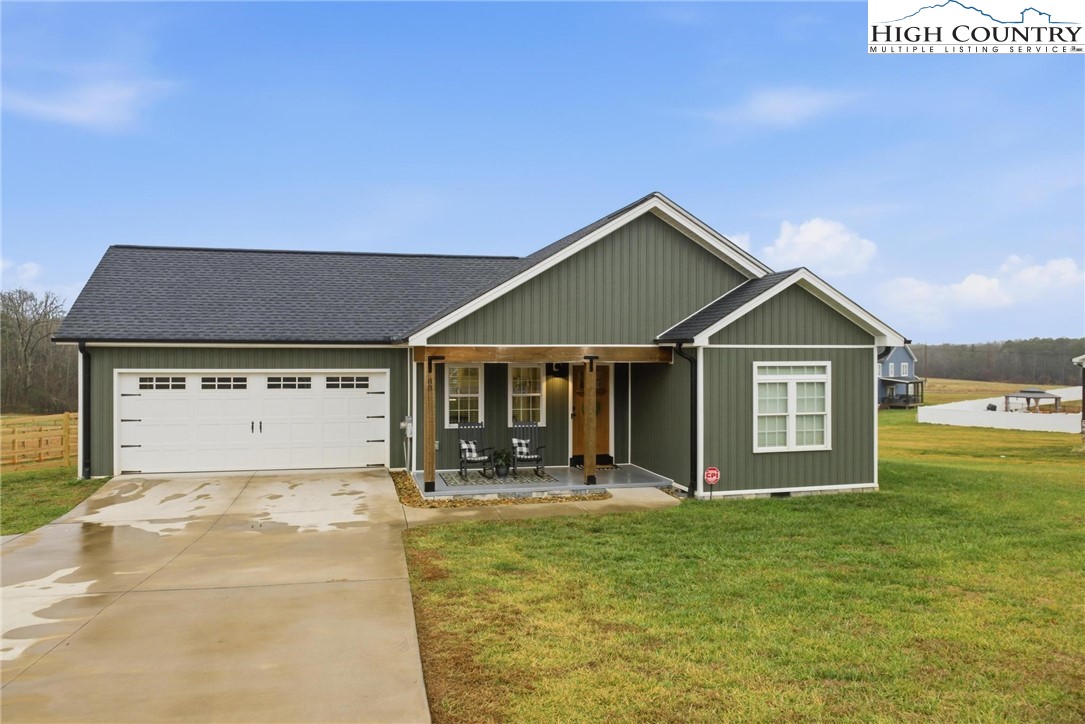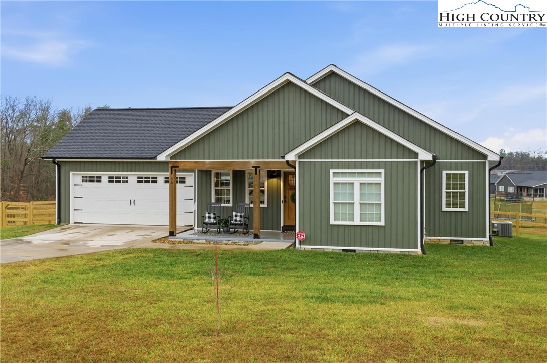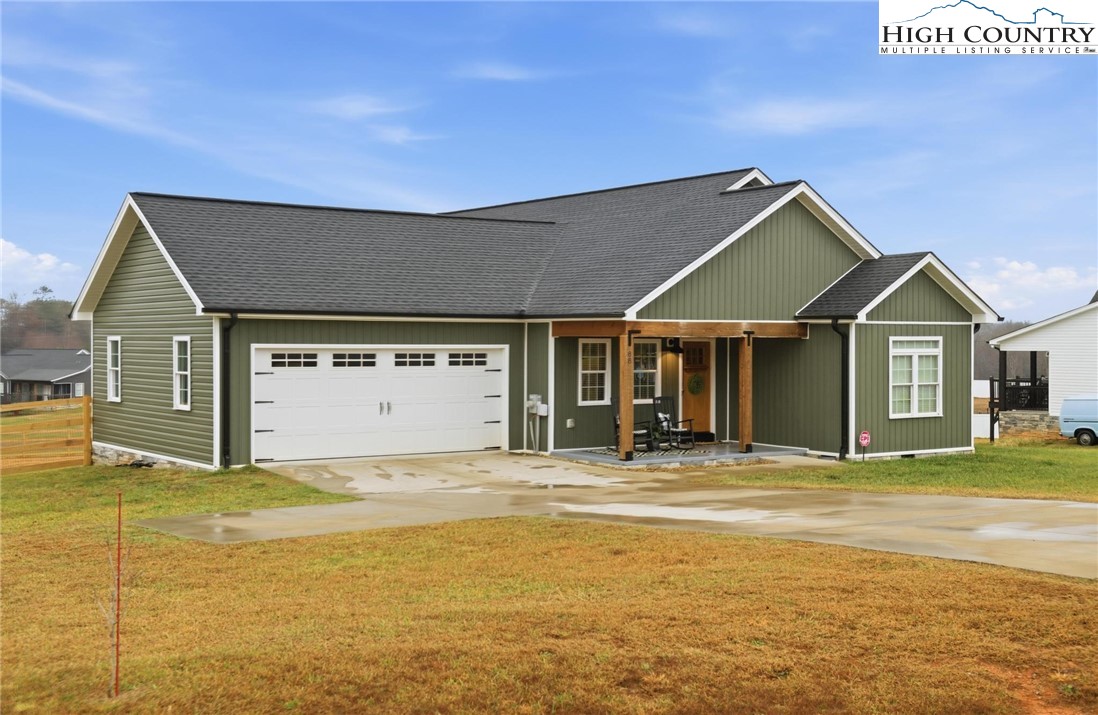 This beautiful 3 bedroom, 2 bath home is perfectly situated on a spacious .83 acre lot in a peaceful country setting. Designed for comfortable one-level living, it offers the convenience of a street level double garage and a welcoming covered masonry front porch accented with warm wood columns. Inside, the light filled open floor plan features a cathedral ceiling in the great room and light vinyl plank flooring throughout, creating an airy, inviting atmosphere. The kitchen is both stylish and functional with granite countertops, stainless steel appliances, a pantry closet, and a breakfast bar ideal for casual dining or entertaining. A formal dining area with a charming board and batten accent wall adds character, while lovely light fixtures are found throughout the home. The primary bedroom easily accommodates a king-size bed and includes a private ensuite with a beautifully tiled shower and double vanity. Two additional bedrooms and a second full bath are located down the hall. A bonus room at the front of the home provides flexible space for a home office, guest room, or hobby area. Additional features include pull-down attic stairs in the garage for extra storage and a back deck overlooking the expansive fenced backyard—perfect for outdoor activities, pets, or simply relaxing and enjoying the peaceful surroundings. Come experience everything this lovely Blissfield Acres home has to offer!