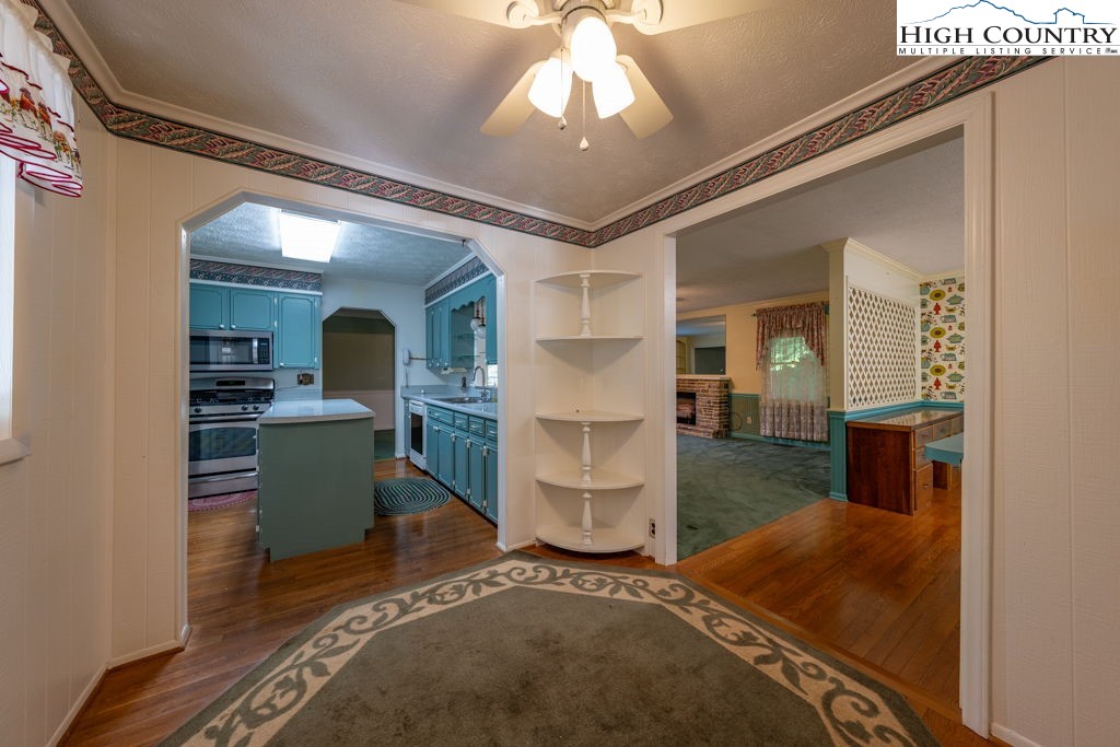 Walkable to King Street, spacious yard, babbling creek, two attached garages, and a detached storage building - 881 Queen has so much to offer! The spacious home features two kitchen areas, large living spaces, oversized rooms, and a basement ready to be finished out. Enjoy the morning sun from the front porch or deck. Two kitchen areas - the first formal kitchen includes refrigerator, oven and gas range, dishwasher, plenty of cabinet storage, and a moveable island. The second kitchen area is set up for overflow space, canning, or baking and includes additional counter space, cabinets, sink, and a hookup for a wood or gas stove. The main living room flows from the second kitchen and includes a butler window into the main kitchen and a gas log fireplace. Three bedrooms on the main level and plenty of storage space. Downstairs is ready to be finished, currently equipped with a bathroom plumbed out and a separate entrance through the lower garage. Level yard with plenty of space around the home and a creek in the back. Two driveways on the front of the property lead to both attached garages. The detached building sits back from house with it's own driveway and offers plenty of storage or a workshop area. Half a mile from King Street, this location can't be beat. Ready for upgrades, this space has the potential to be turned into a buyer's dream! Home is being sold as-is and hurricane Helene impacts have been remedied.