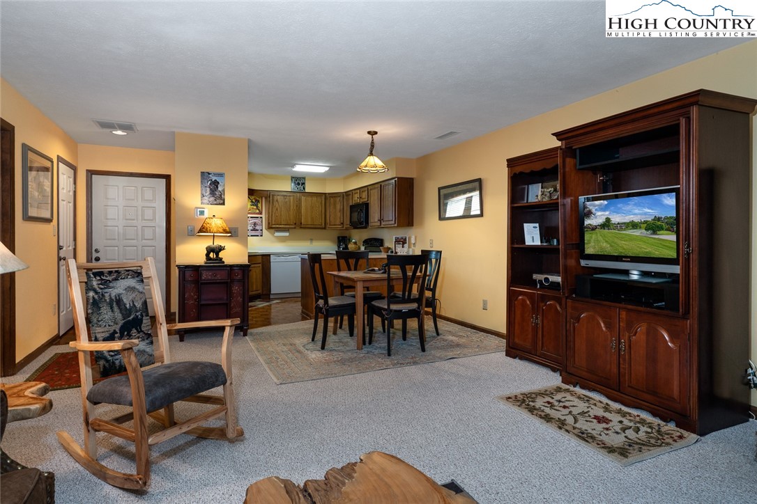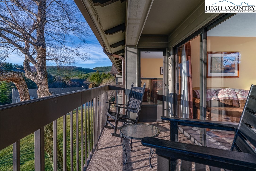 Amid the breathtaking Blue Ridge Mountains in picturesque Chetola Resort is where you will find this cozy one-bedroom, one-bath upper floor condominium unit complete with comfortable furnishings, a fully equipped kitchen, spacious primary with en-suite, and cozy dining and living area complete with natural stone wood burning fireplace. Enjoy views from the large windows or venture out to the covered deck accessible from the living area and primary suite. Ideal for couples, solo adventurers, and/or investors, this cozy upper-floor unit provides convenient access to Chetola Resorts amenities and is only a short drive to downtown Blowing Rock with its quaint shops and restaurants. This unit offers an ideal blend of rustic charm and modern comfort and is being offered turnkey as pictured.