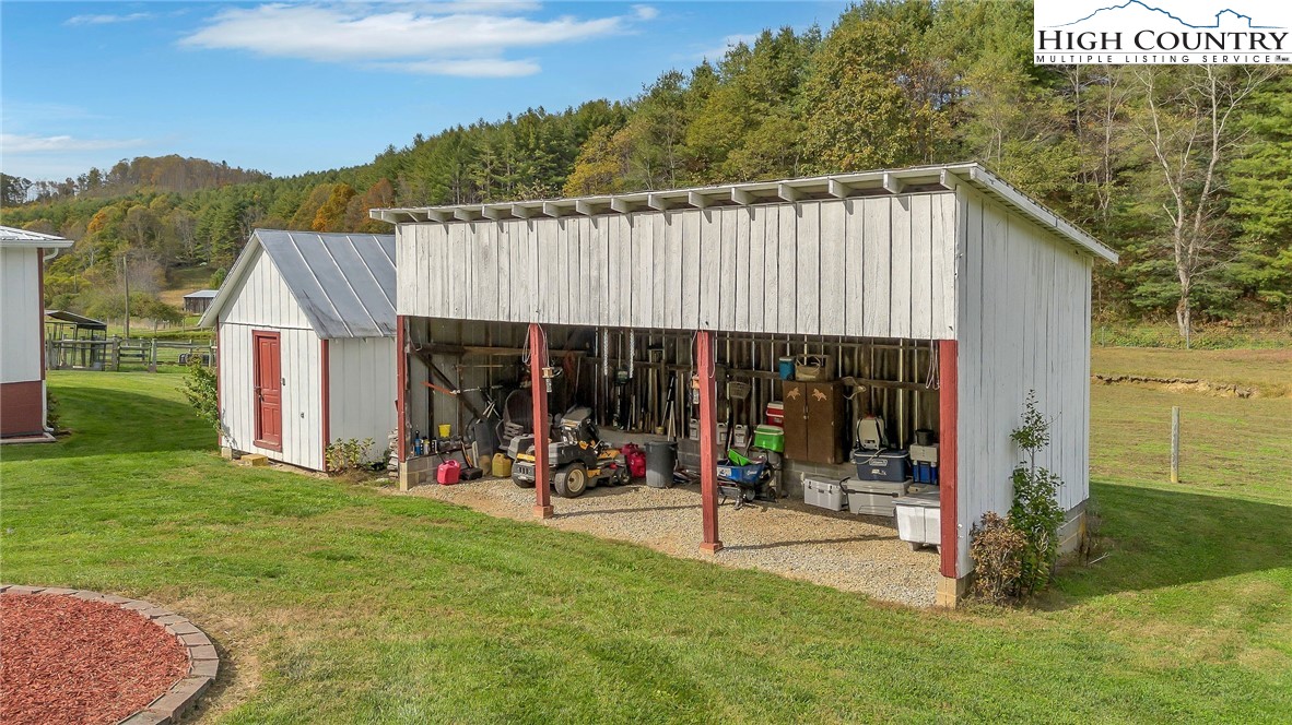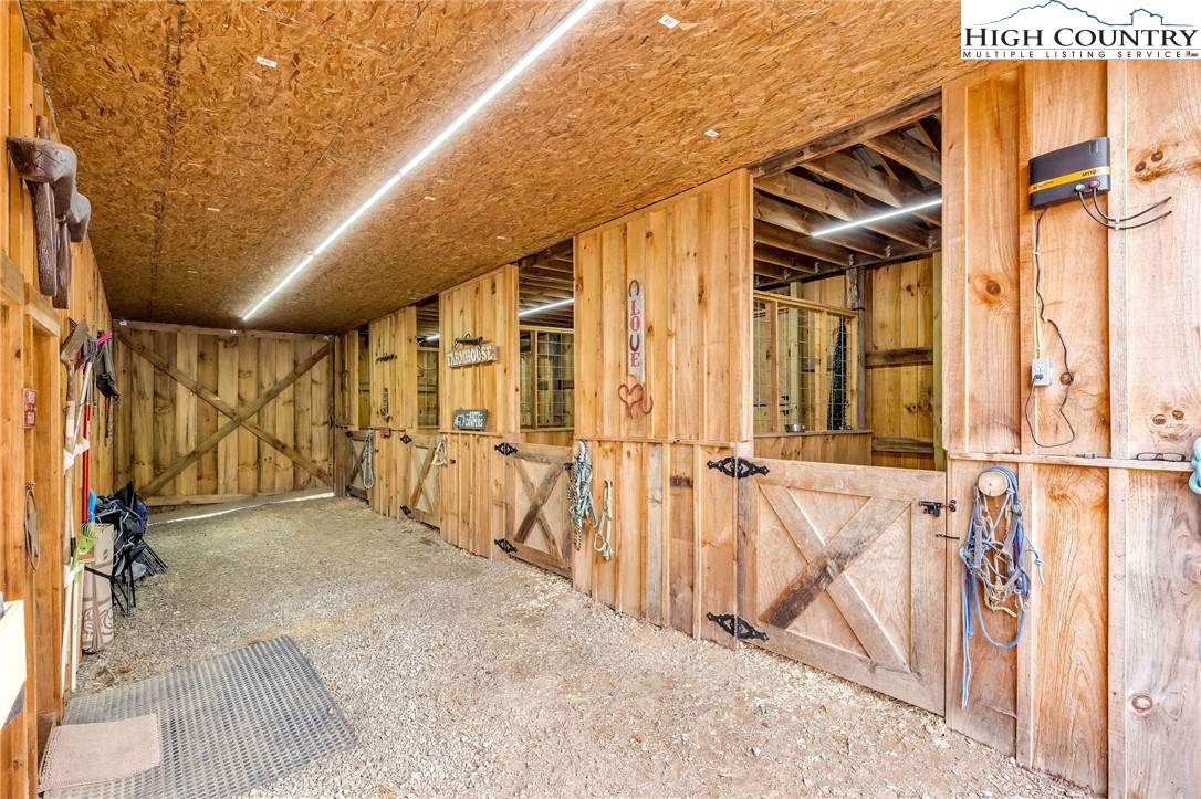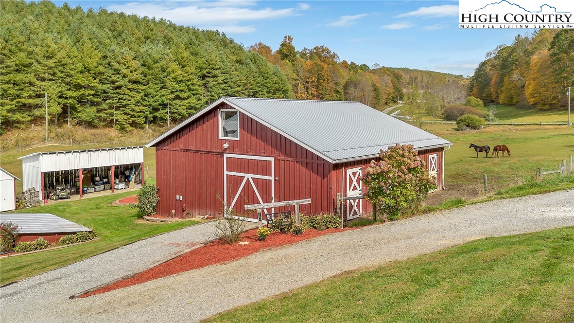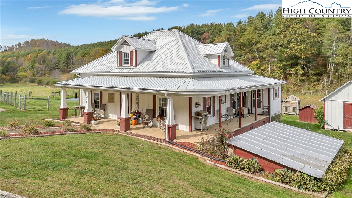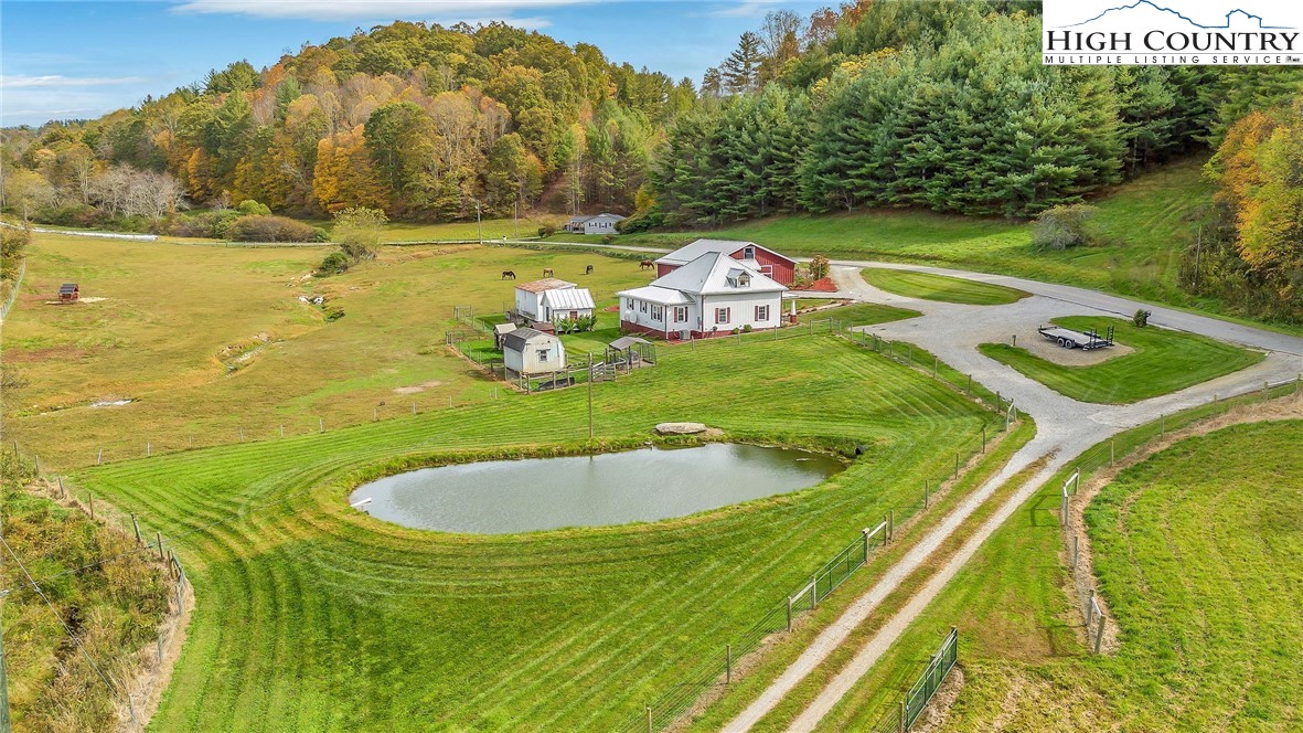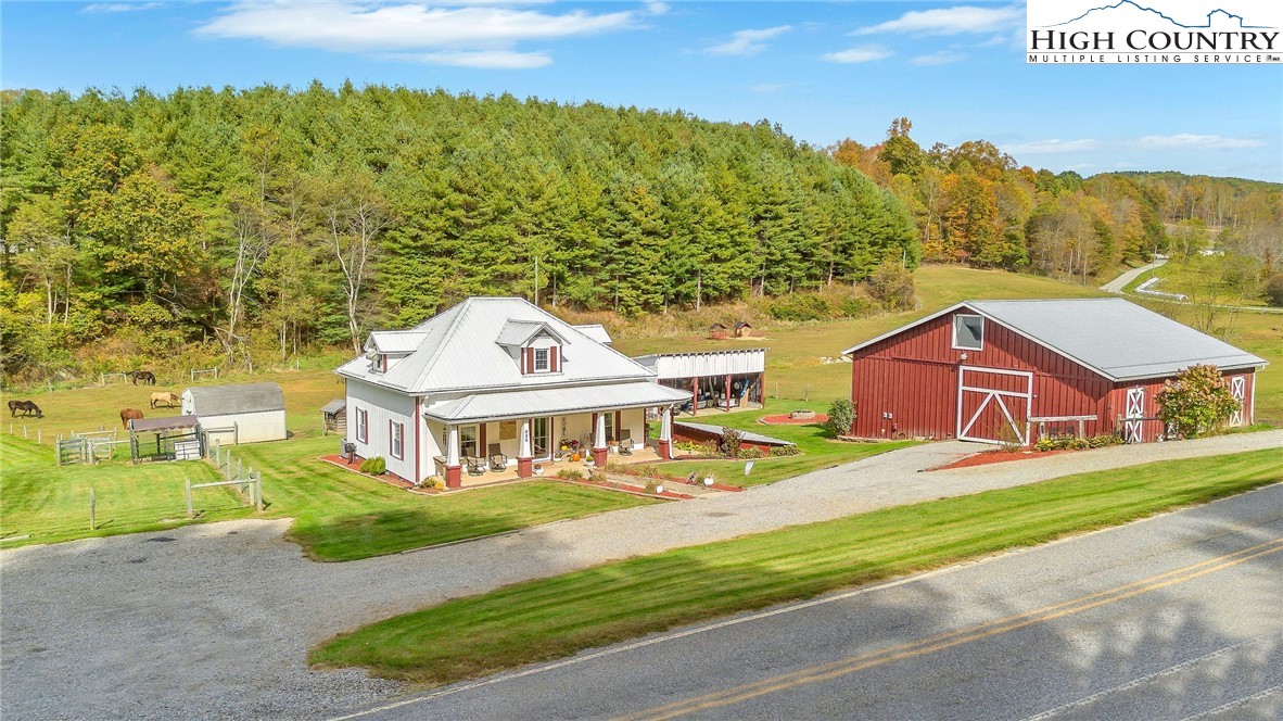 Step back in time and enjoy the simple pleasures of country living! This 1922 farmhouse sits on 50 beautiful acres of fenced land with a mix of open pasture and peaceful woods — the kind of place where you can breathe deep, stretch out, and watch the seasons change. About 11.5 acres of pasture are ready for your horses, cows, or goats, with a stream meandering through the bottom. The remaining 38.5 acres are wooded, full of wildlife like deer, turkey, and the occasional bear. There are marketable hardwoods and white pines, plus a network of old hiking and 4-wheeler trails that wind through the trees. The property has four old barns (great for hay or equipment storage), an old chicken coop, and a newer 4-stall horse barn that’s the heart of the place. One side of the barn features four roomy stalls and a separate tack room, while the other side offers 716 sq. ft. of finished rustic-style space complete with a bar area — perfect for hosting friends or setting up a cozy game room. Upstairs, you’ll find another 612 sq. ft. that could make a great bunk space, home office, or creative studio. Step right outside to a fire pit area, ready for evenings under the stars. A small pond, stocked with bass, catfish, and bluegill, adds to the charm and provides a quiet spot to relax. The farmhouse is cozy and full of character, offering plenty of space without losing its old-fashioned feel. The main level includes a comfortable living area, open kitchen and dining, full bath, primary bedroom, and laundry. Upstairs are two more bedrooms and abundant storage space. A wrap-around porch on two sides invites you to sit a while and listen to the quiet — maybe with a cup of coffee in the morning or a glass of sweet tea at sunset. There’s also a spring house with running water, a reminder of how folks used to live when life was simpler and slower, and a 550-gallon underground storage tank with pump to help ensure you’ll never run short — a real bonus for peaceful country living. You’ll feel miles away from it all, yet you’re only 15 miles from Sparta, 16 miles from Jefferson, and 42 miles from Boone. If you enjoy kayaking and/or fishing, public access to the New River is just 2.5 miles away at New River State Park – Kings Creek Access. For expanded hiking and horseback riding, Grayson Highlands State Park is only 22 miles away and offers some of the most beautiful mountain trails around. Whether you’re dreaming of raising animals, gardening, riding horses, or just soaking in the peace and quiet of country living, this property feels like home the moment you arrive. (Seller is the listing agent’s nephew by marriage.)