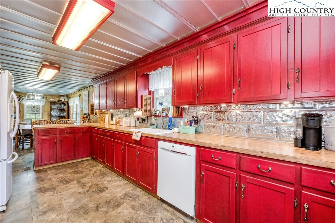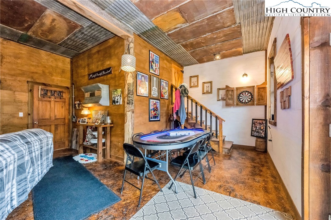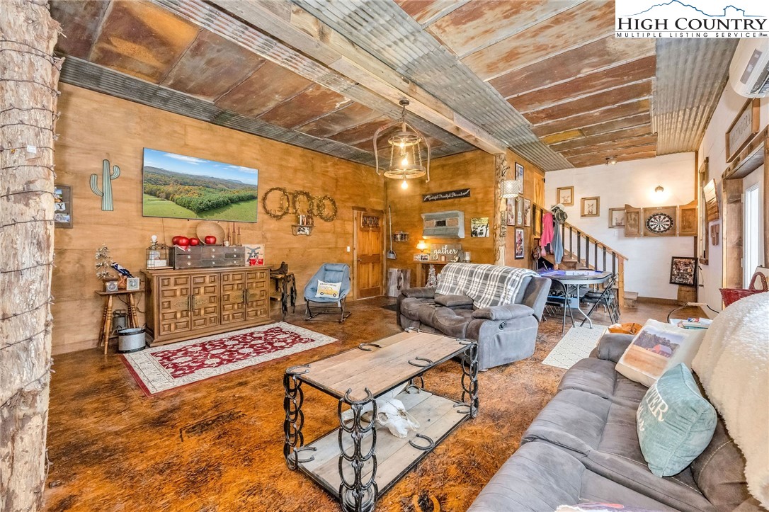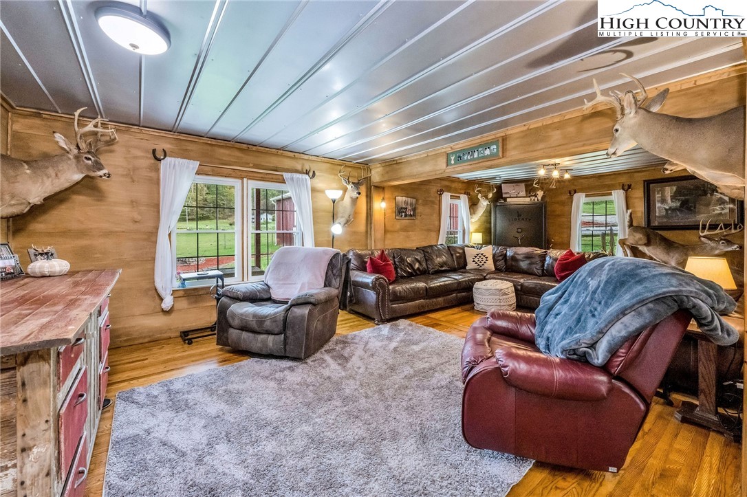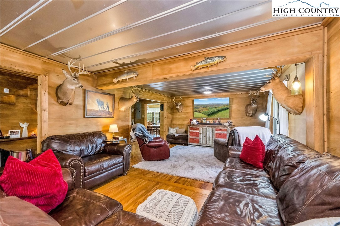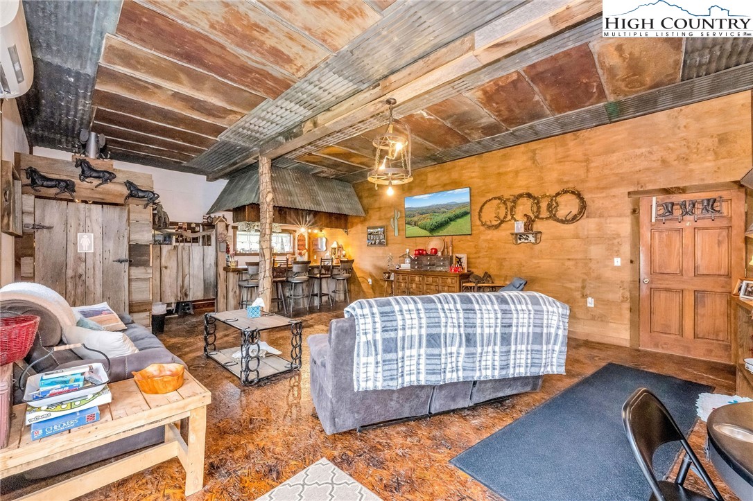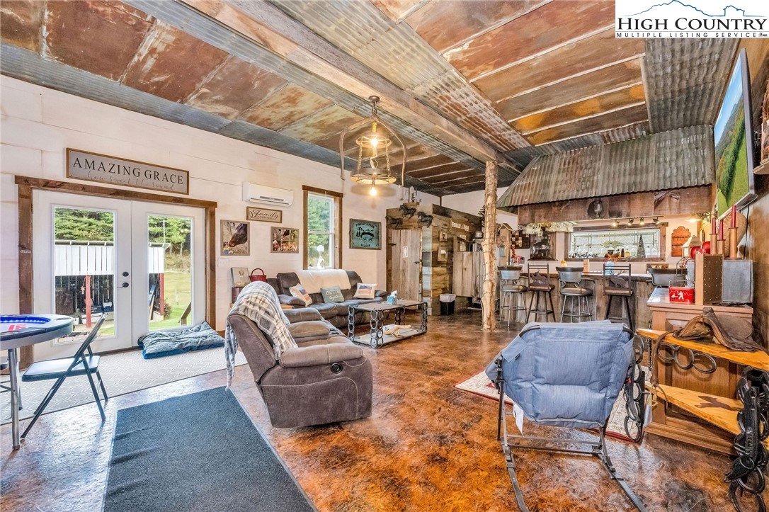Step back in time and enjoy the simple pleasures of country living! This 1922 farmhouse sits on 50 beautiful acres of fenced land with a mix of open pasture and peaceful woods — the kind of place where you can breathe deep, stretch out, and watch the seasons change. About 11.5 acres of pasture are ready for your horses, cows, or goats, with a stream meandering through the bottom. The remaining 38.5 acres are wooded, full of wildlife like deer, turkey, and the occasional bear. There are marketable hardwoods and white pines, plus a network of old hiking and 4-wheeler trails that wind through the trees. The property has four old barns (great for hay or equipment storage), an old chicken coop, and a newer 4-stall horse barn that’s the heart of the place. One side of the barn features four roomy stalls and a separate tack room, while the other side offers 716 sq. ft. of finished rustic-style space complete with a bar area — perfect for hosting friends or setting up a cozy game room. Upstairs, you’ll find another 612 sq. ft. that could make a great bunk space, home office, or creative studio. Step right outside to a fire pit area, ready for evenings under the stars. A small pond, stocked with bass, catfish, and bluegill, adds to the charm and provides a quiet spot to relax. The farmhouse is cozy and full of character, offering plenty of space without losing its old-fashioned feel. The main level includes a comfortable living area, open kitchen and dining, full bath, primary bedroom, and laundry. Upstairs are two more bedrooms and abundant storage space. A wrap-around porch on two sides invites you to sit a while and listen to the quiet — maybe with a cup of coffee in the morning or a glass of sweet tea at sunset. There’s also a spring house with running water, a reminder of how folks used to live when life was simpler and slower, and a 550-gallon underground storage tank with pump to help ensure you’ll never run short — a real bonus for peaceful country living. You’ll feel miles away from it all, yet you’re only 15 miles from Sparta, 16 miles from Jefferson, and 42 miles from Boone. If you enjoy kayaking and/or fishing, public access to the New River is just 2.5 miles away at New River State Park – Kings Creek Access. For expanded hiking and horseback riding, Grayson Highlands State Park is only 22 miles away and offers some of the most beautiful mountain trails around. Whether you’re dreaming of raising animals, gardening, riding horses, or just soaking in the peace and quiet of country living, this property feels like home the moment you arrive. (Seller is the listing agent’s nephew by marriage.)