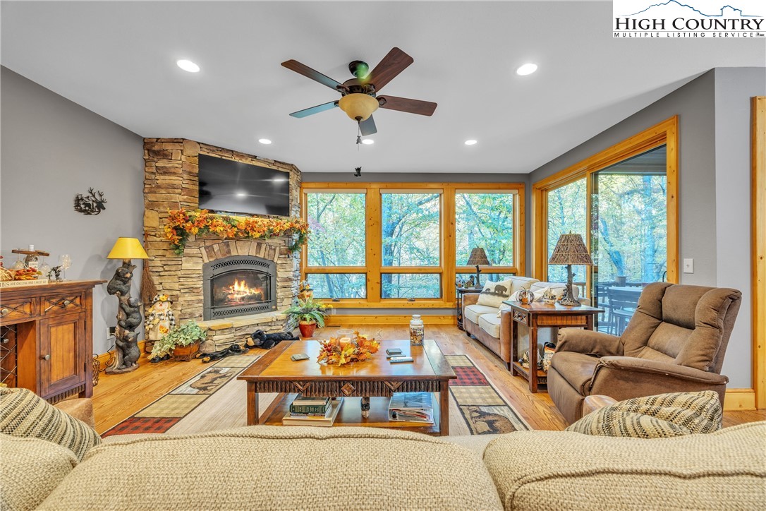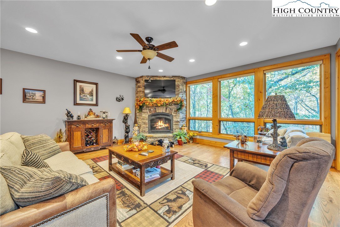 Turnkey Luxury Condo in Headwaters Gated Community. Discover this rare gem: a lower-level, two-story condominium nestled in the Headwaters gated community. Stunning Features: Beautiful hardwood floors and high-end finishes, Gourmet kitchen equipped with granite countertops, custom cabinetry, and top-of-the-line appliances. Inviting living room on the main level, complete with a stone fireplace. Spacious Accommodations: Owner suite and guest bedrooms located on the main level and a guest suite and additional family room with its own fireplace, and a roomy storage room on the lower level, each featuring a full bath for enhanced privacy. Breathe in the cool mountain air and enjoy the serene sounds of nature as you unwind on one of the two decks. The main level deck also boasts an outdoor gas fireplace. This condominium is just a short drive from downtown Banner Elk and there are a variety of attractions, including skiing, hiking, whitewater rafting, theater performances, park concerts, golf, and more. As a resident of Headwaters, you will have access to a stunning mountaintop clubhouse featuring: Fitness Center, Game Room, Theatre Room, Gourmet Kitchen. Your family can also take advantage of the Lakeside Pavilion, Stony Creek Park, Deer Creek Park, Sunset Park, Dog Park, and a Natural Waterfall. Do not miss the opportunity to experience this unique mountain community and this exceptional condominium before it is gone. With restaurants, skiing, and shops nearby, it truly is a prime location! Also see Community Website for more info -https://headwatersatbannerelk.com/headwaters-community/