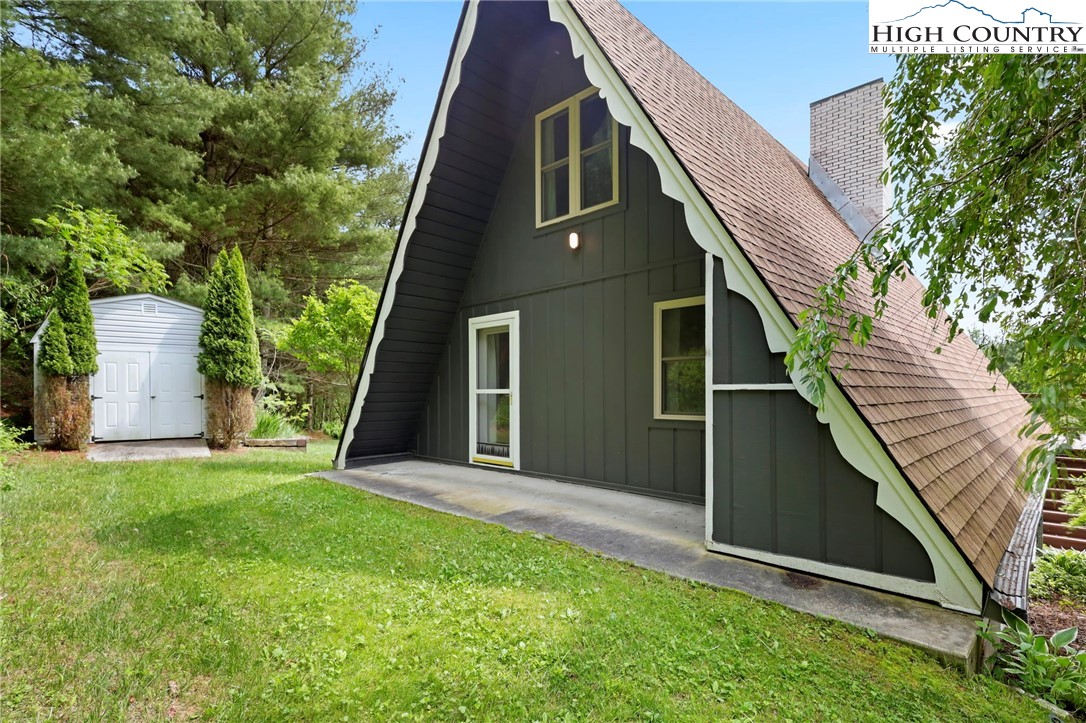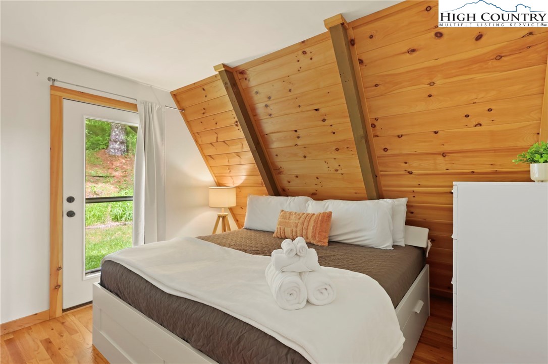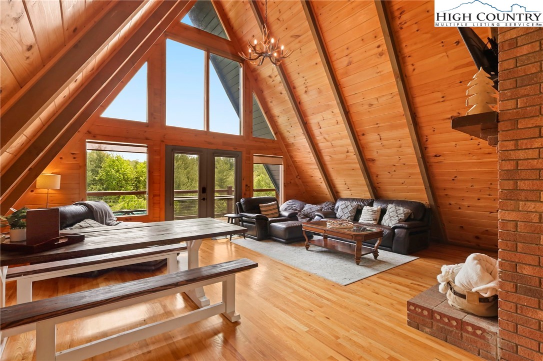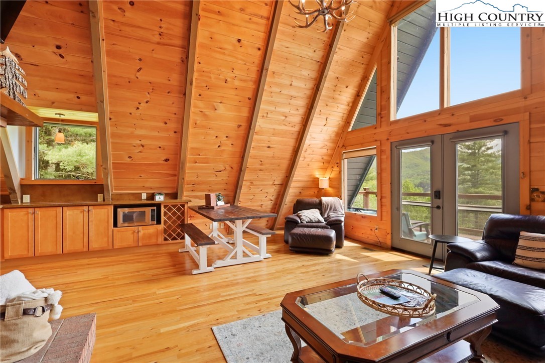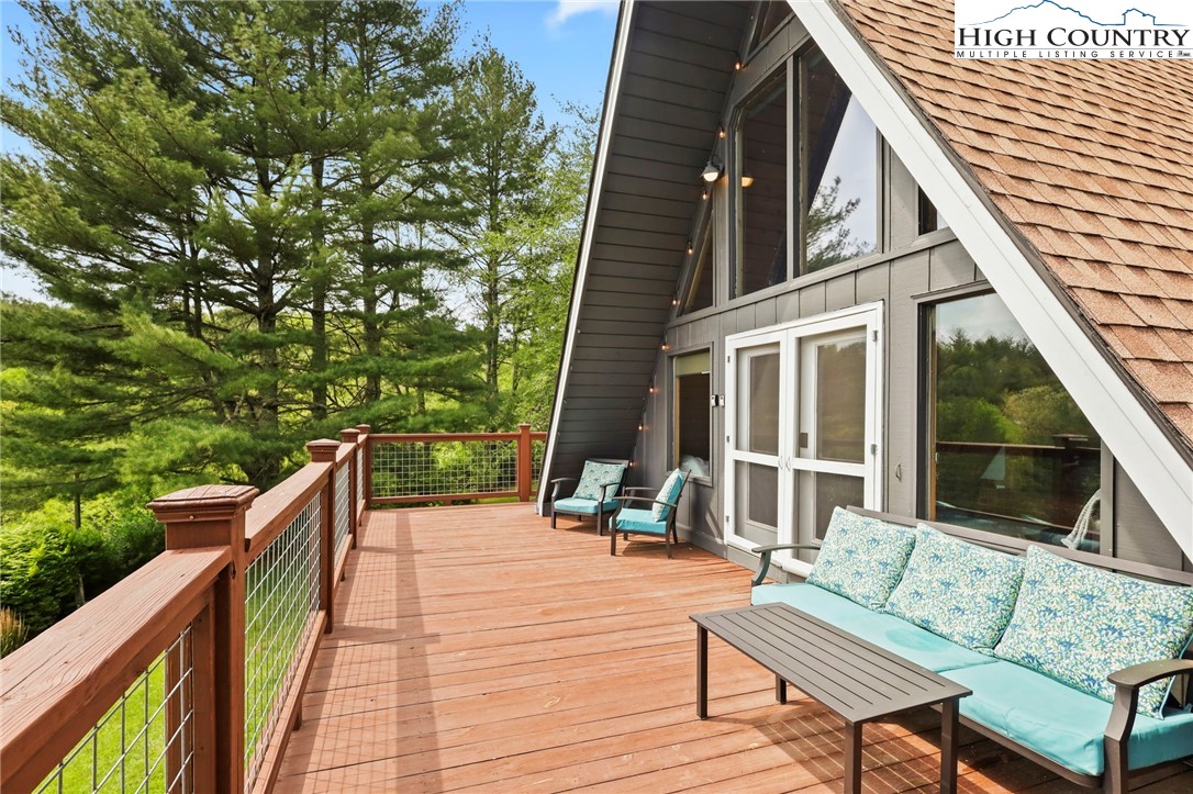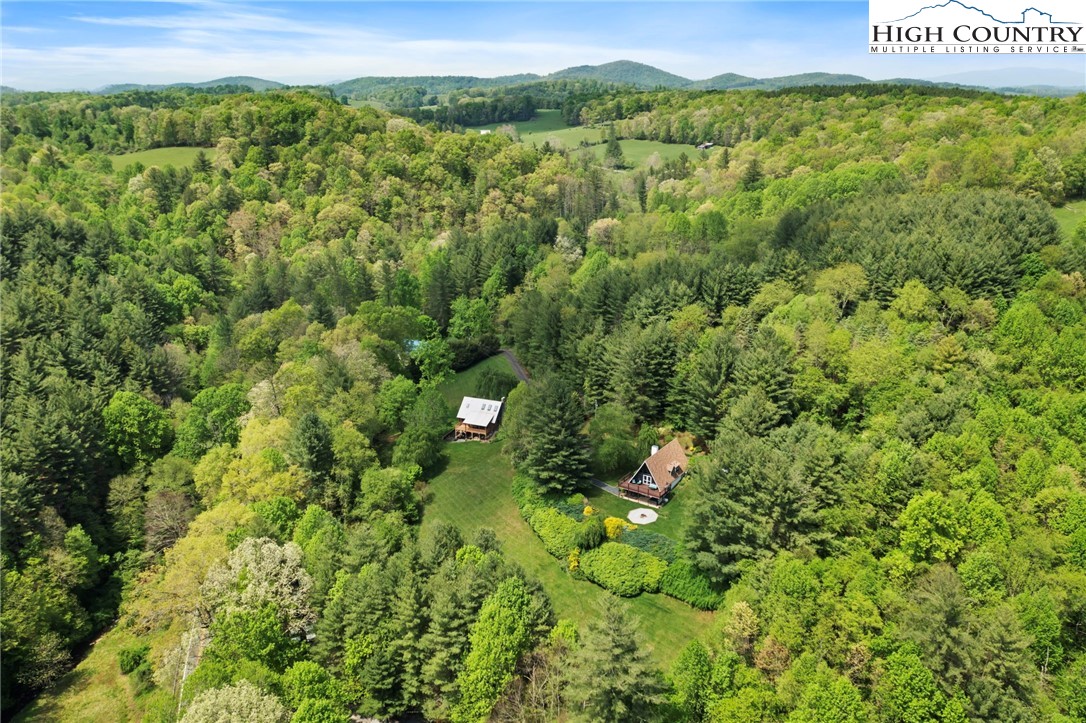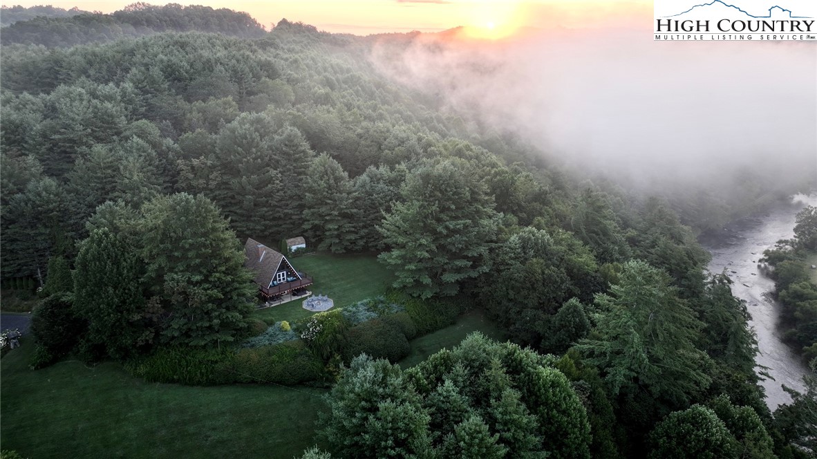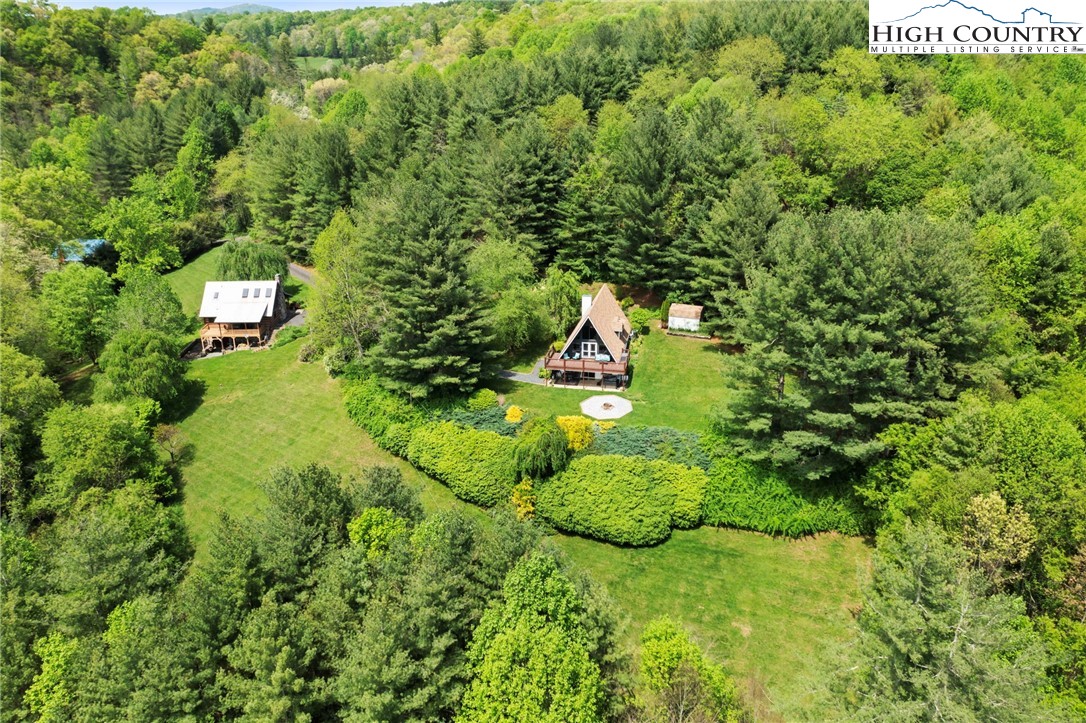 MUST SEE A-Frame Mountain Retreat! This sweet 3-bedroom, 2-bath Mountain house is move in ready, fully furnished and adjoins over 50 acres NC State Park Land and beautiful protected view of The Little Peak Mountain, also owned by the state and part of the New River State Park. Just a stone's throw to the New River and seasonal views of the river are yours to enjoy. Nicely maintained landscaping on just over an acre offers plenty of flat area of enjoy outdoor activities. The main level offers an open great room with gas log fireplace, two bedrooms, fully updated bath, and updated kitchen efficiency with concrete counter-tops, bar refrigerator, sink, and microwave. The loft level, which was used as a third bedroom, offers additional sleeping space. The lower level has an updated full kitchen with granite and stainless steel counter-tops, large island, tons of cabinet storage, open living/dining space, a full updated bath, bonus room with additional storage, and utility/laundry room. Great weekend get-way, vacation rental, or full time home.