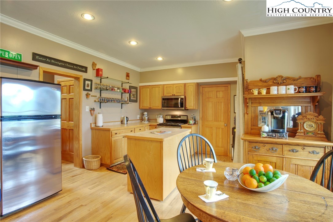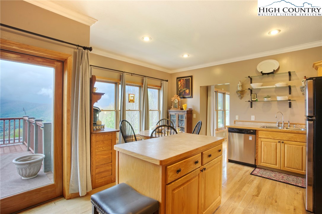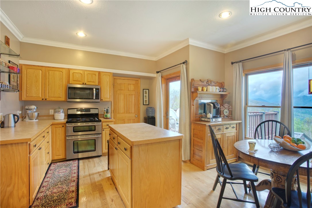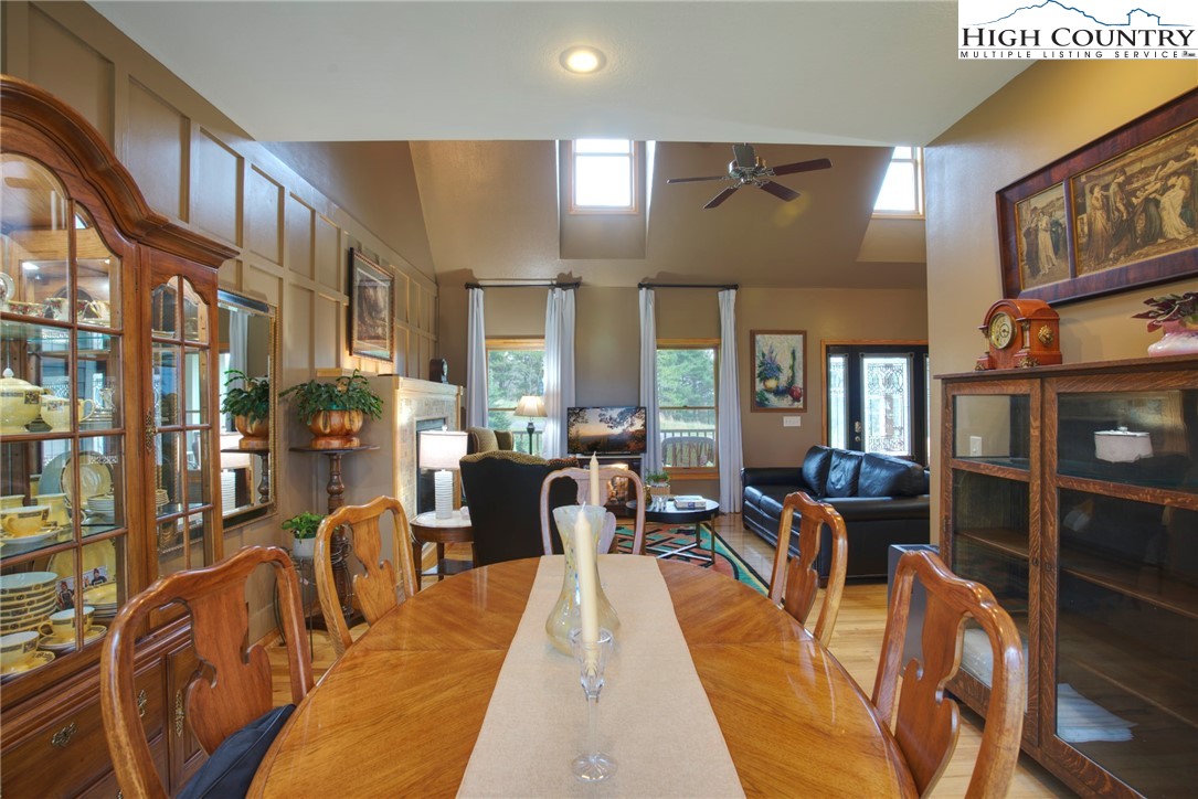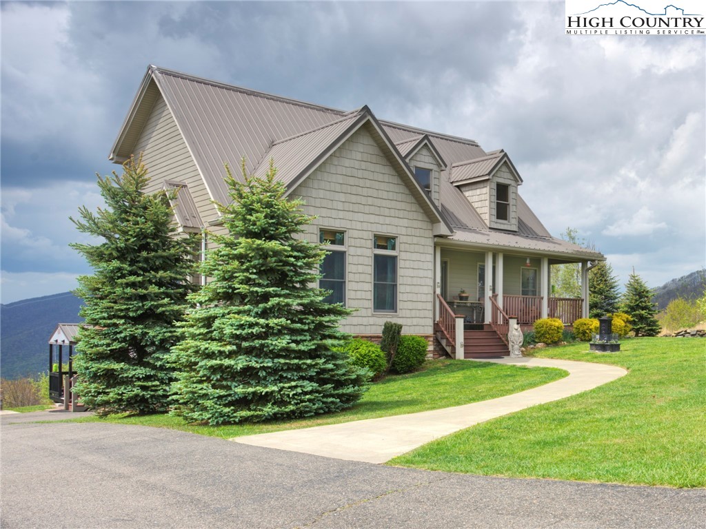 Sunset views, solar power, and space for everyone—this mountain-style cottage on 4+ acres has the kind of charm and practicality that’s hard to come by. With 5 bedrooms, 5 full baths, and 2,500 sq ft of living space, this property offers a flexible layout for full-time living or weekend getaways with room to spare. Add the existing fruit trees and beautifully landscaped gardens and what more could you desire?Located just minutes from downtown West Jefferson, Mountain Aire Golf Course, and Old Barn Winery, you’ll feel tucked away but never too far from good food, good wine, and a good round of golf. The main-level primary suite keeps things convenient, while the cathedral ceiling, gas fireplace, and board and batten accents give the living area cozy character. The kitchen includes a pantry and opens to an open deck with a layered long-range view of Three Top Mountain—your daily dose of sunset magic. You'll love watching a storm roll in from far away. Upstairs, you’ll find two bedrooms with en suite baths, and downstairs, a walk-out basement with a family living area, two additional bedrooms (one currently used for storage), and easy access to the majestic outdoors. If 5 bedrooms aren't sufficient, the property also has a full RV set up for guests arriving with a camper in tow. The outdoor setup is ready for gathering sand quiet moments alike: a grill and patio area just off the basement doors, a fire pit with big sky views, and a second seating area facing the mountains. Three outbuildings, including one currently serving as a home office, one as a workshop and the third for storage, offer so much potential! Two of the three are electrified and can be air conditioned with window units should you desire. And here’s the cherry on top:a full array of solar panels on the western slope helps reduce your energy bills year-round while leaning into clean, renewable living.