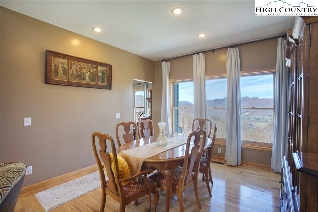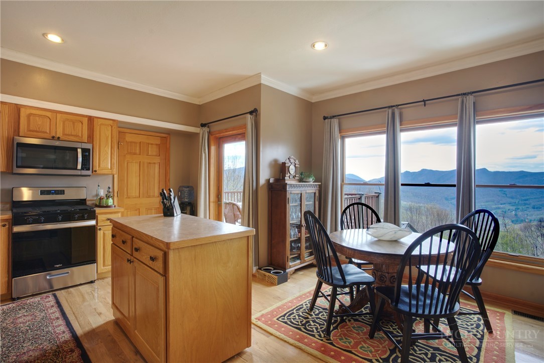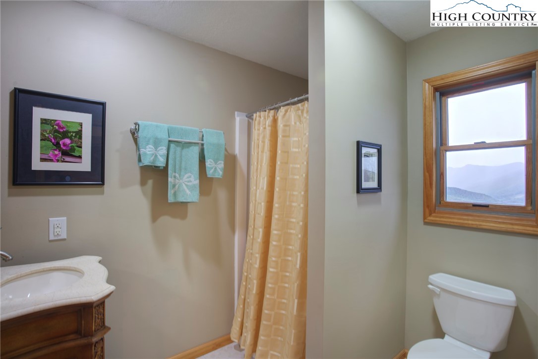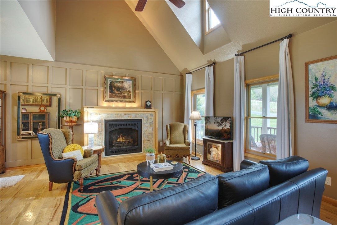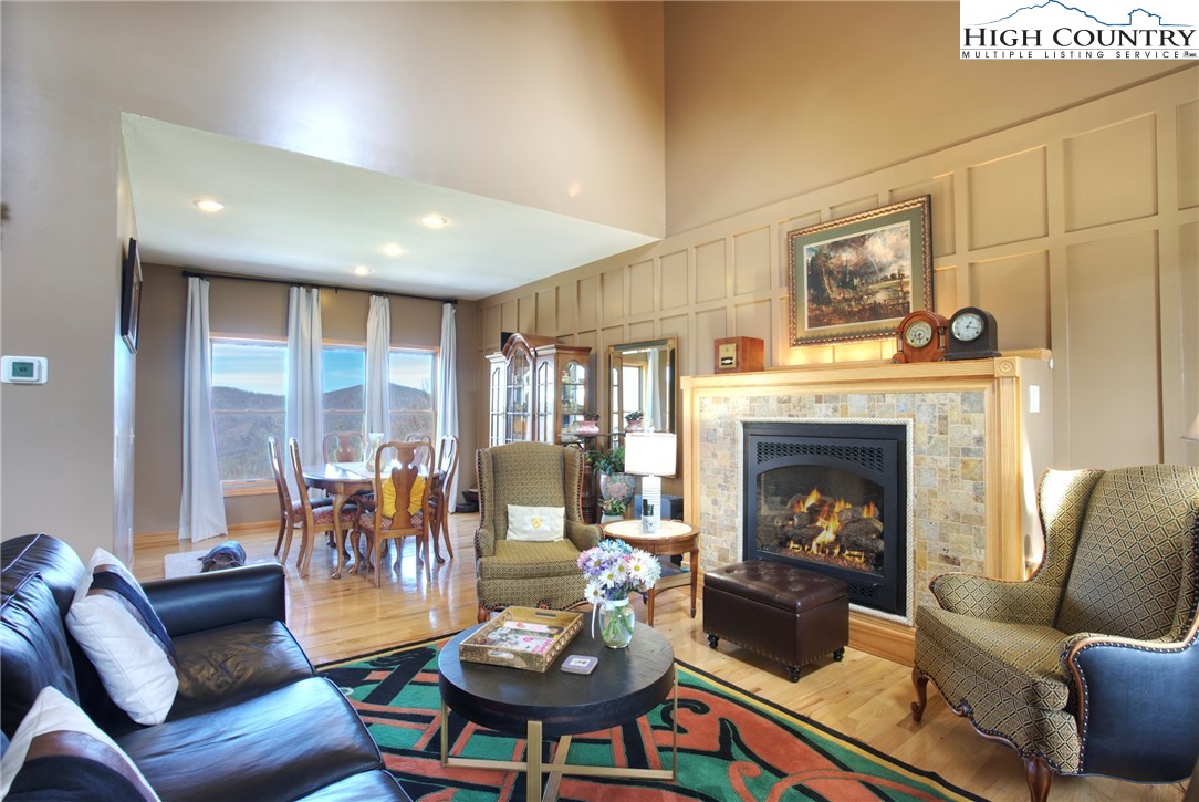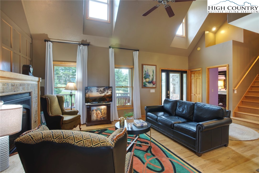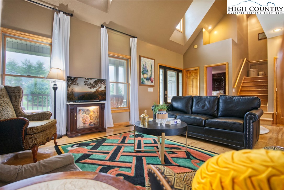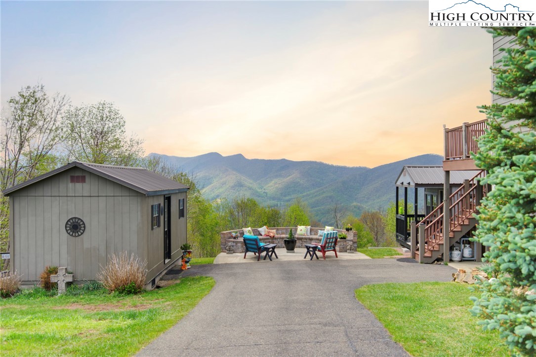 Experience sunset magic and sustainable mountain living in this 5BR/5BA mountain cottage, perfectly perched on 4+ acres with breathtaking, layered views of Three Top Mountain. The interior exudes character with soaring cathedral ceilings, board-and-batten accents, and a cozy gas fireplace that has been recently serviced for peace of mind. The kitchen is ready for the home chef with a brand-new gas range and faucet, while the main-level primary suite ensures effortless one-level living. The walk-out basement has been refreshed with new paint and flooring, offering a bright and modern family room alongside two additional guest rooms. Beyond the main home, the property provides an unparalleled work-from-home setup with three versatile outbuildings—including a dedicated home office and a workshop—plus a full RV hookup for visitors. Sustainability meets luxury with a full solar array to reduce energy costs, complemented by an outdoor oasis featuring a fire pit, stone patio, and established fruit trees. Located just minutes from Downtown West Jefferson, Mountain Aire Golf, and Old Barn Winery, this estate offers a rare blend of secluded retreat and modern updates.