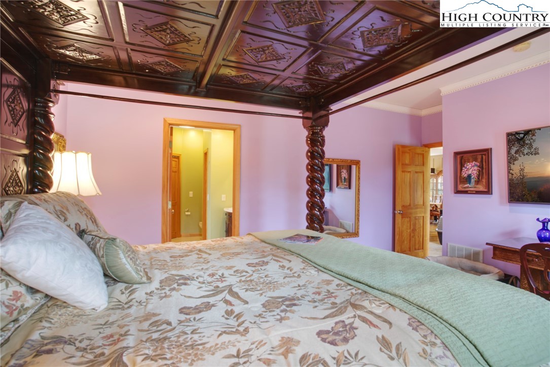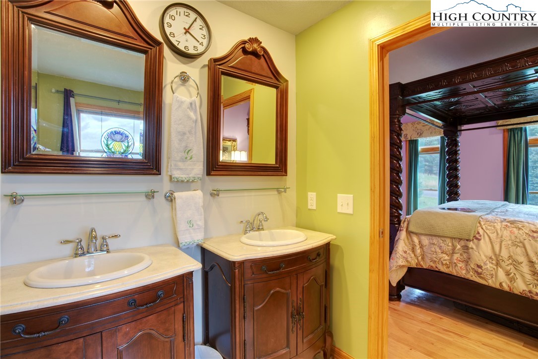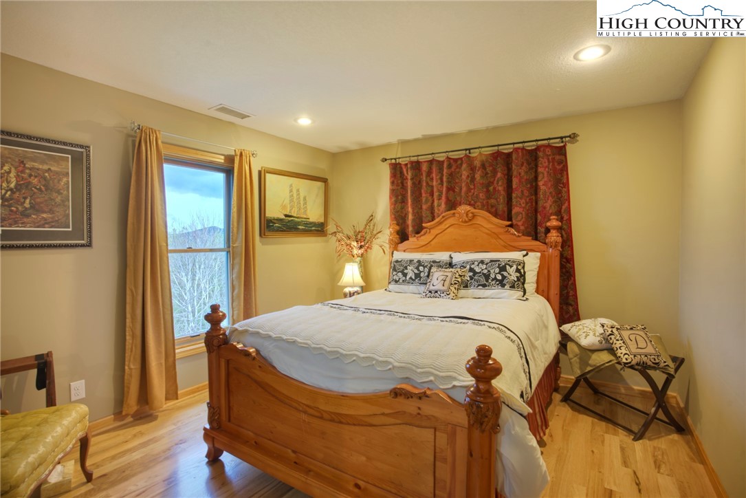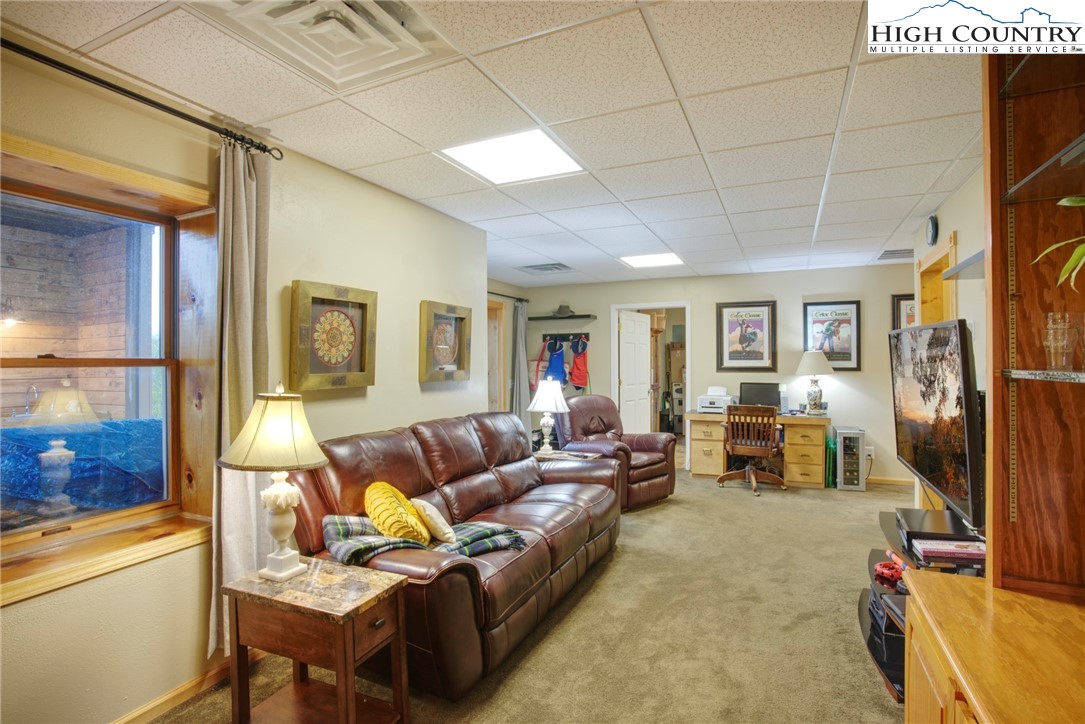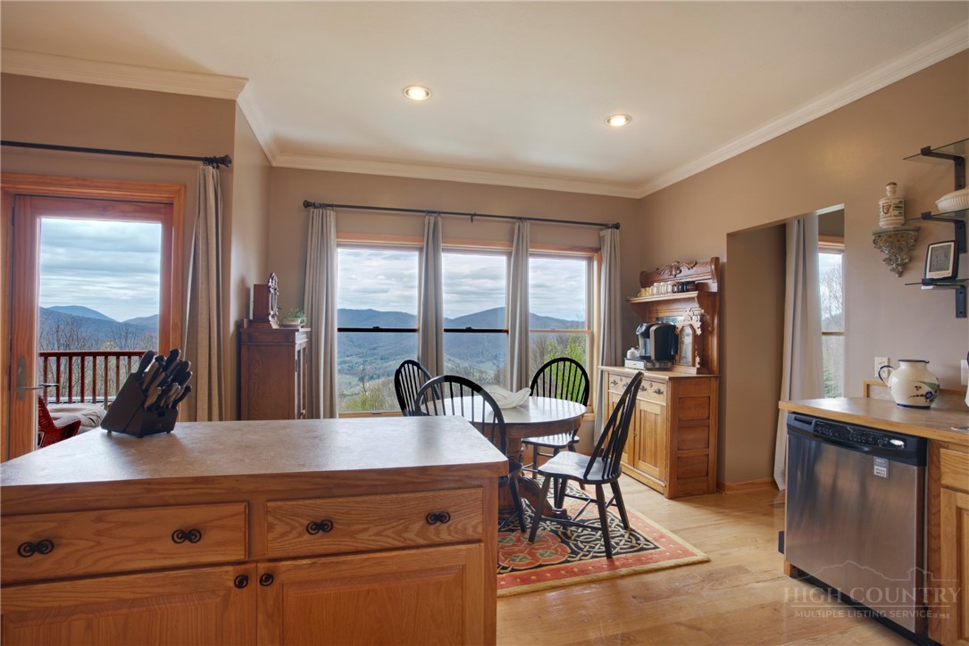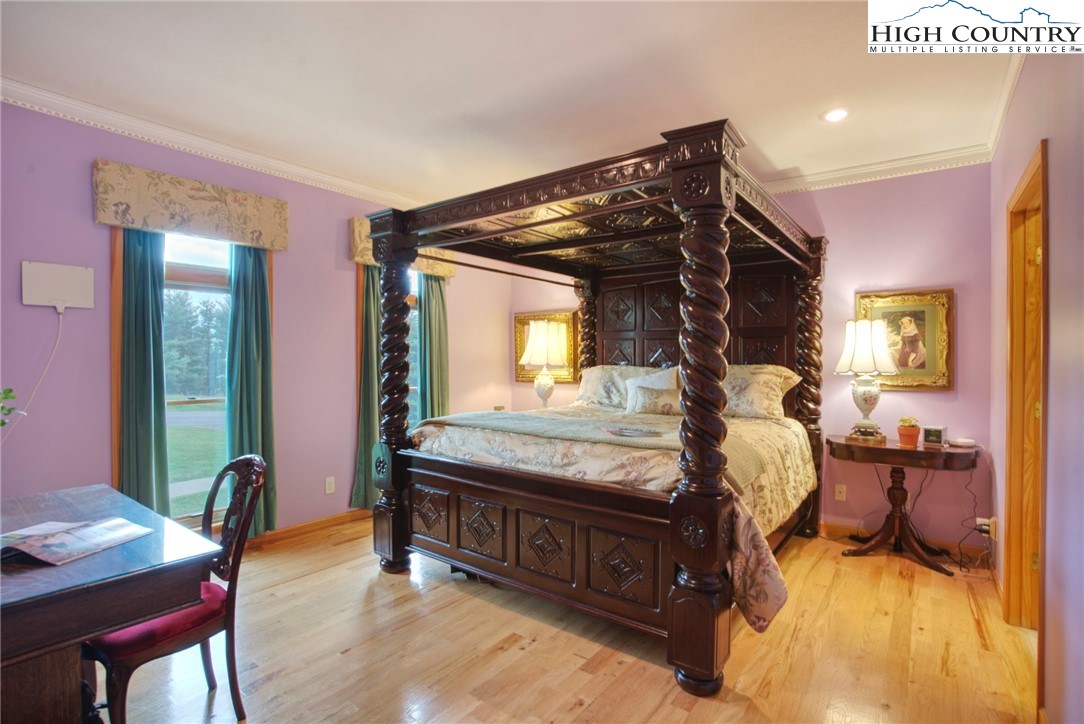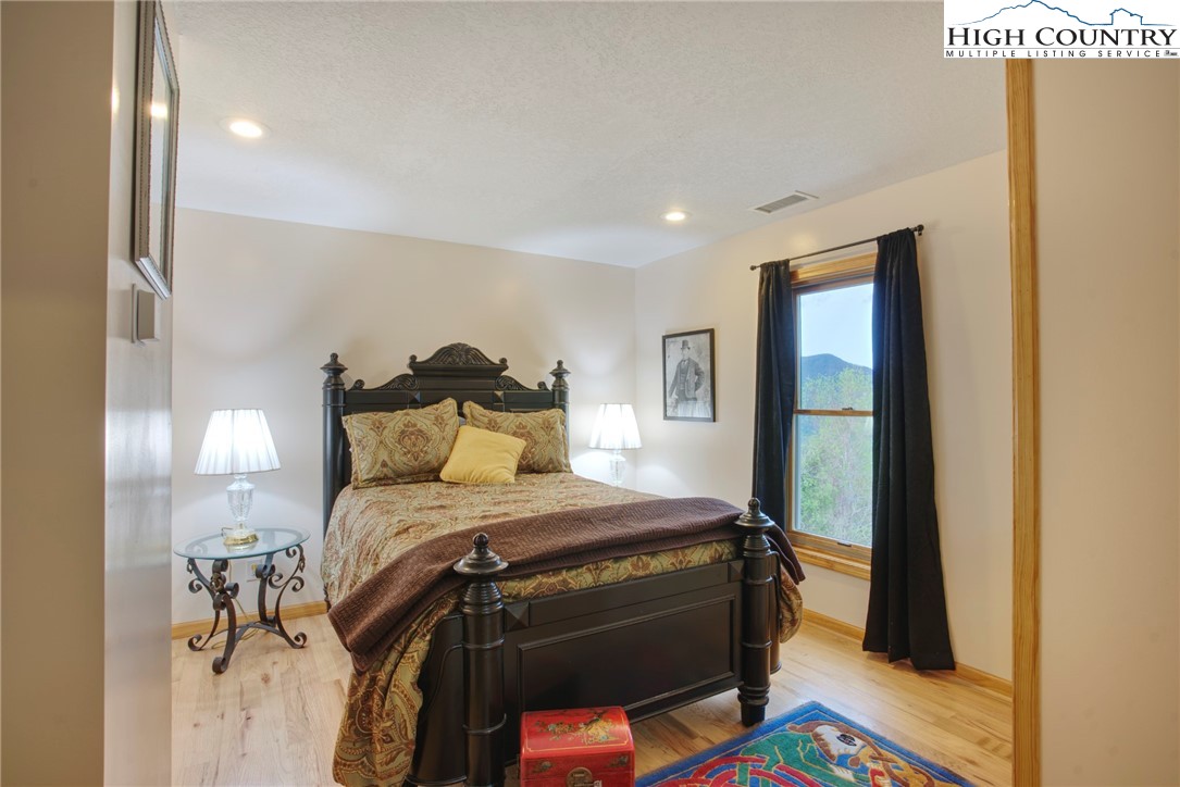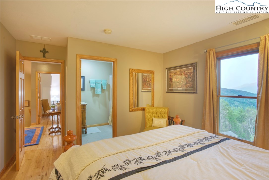 Experience sunset magic and sustainable mountain living in this 5BR/5BA mountain cottage, perfectly perched on 4+ acres with breathtaking, layered views of Three Top Mountain. The interior exudes character with soaring cathedral ceilings, board-and-batten accents, and a cozy gas fireplace that has been recently serviced for peace of mind. The kitchen is ready for the home chef with a brand-new gas range and faucet, while the main-level primary suite ensures effortless one-level living. The walk-out basement has been refreshed with new paint and flooring, offering a bright and modern family room alongside two additional guest rooms. Beyond the main home, the property provides an unparalleled work-from-home setup with three versatile outbuildings—including a dedicated home office and a workshop—plus a full RV hookup for visitors. Sustainability meets luxury with a full solar array to reduce energy costs, complemented by an outdoor oasis featuring a fire pit, stone patio, and established fruit trees. Located just minutes from Downtown West Jefferson, Mountain Aire Golf, and Old Barn Winery, this estate offers a rare blend of secluded retreat and modern updates.