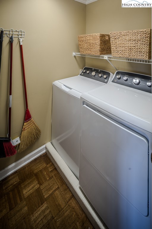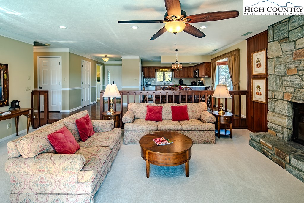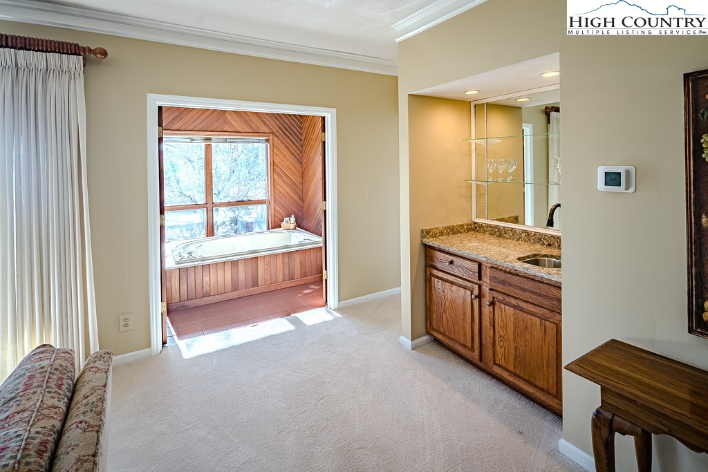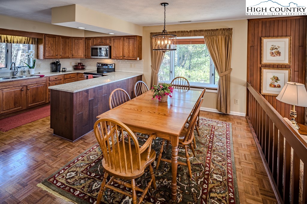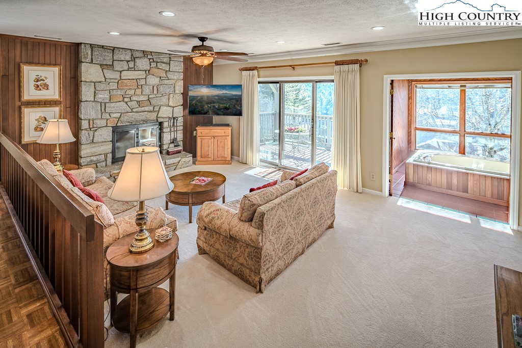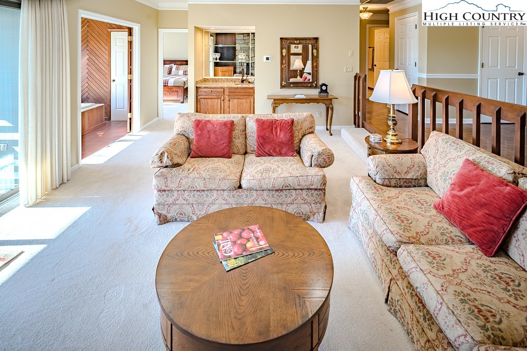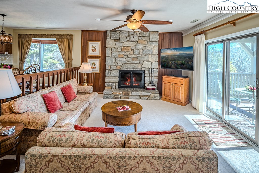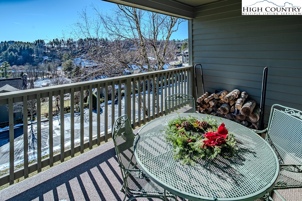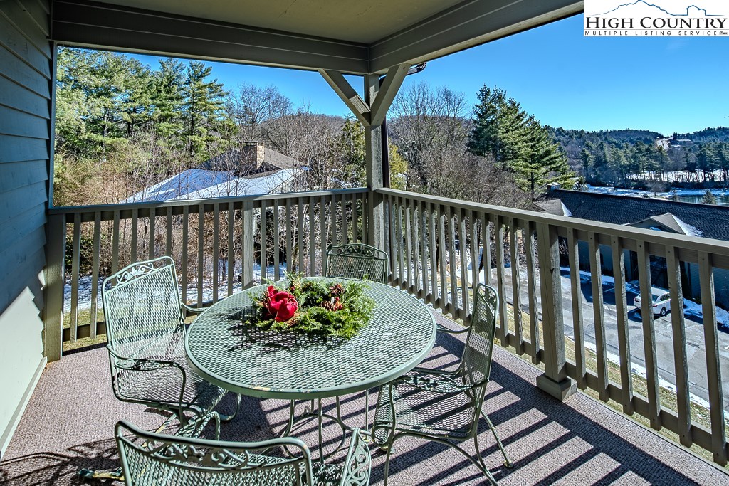 Classic Chetola Resort condo offered by the original owners. First time on the market. One level living. Updated granite countertops in kitchen, bathrooms and wet bar. Subway tile backsplash and stainless steel appliances and faucet in kitchen. Ceramic tile shower and flooring in bathrooms. Parquet hardwood floors in foyer, kitchen and dining area. Window seats in dining and primary bedroom. Like new carpeting in den and bedrooms. Hardwood paneling. Grandfather Mountain stone wood burning fireplace. Classic tile jacuzzi room. Walk-in closet in primary. Separate laundry room with full size washer and dryer. Upstairs, corner unit at the back of the resort for privacy. Enjoy a walk to town, access to shopping and dining in Blowing Rock, as well as at Chetola resort amenities and access to Moses Cone trails. Listen to the annual Synphony on the Lake from the deck and enjoy the beautiful view of the lake and Chetola's famous Christmas lights! Turn key with a short list of exclusions. Enjoy yourself or as an investment property. Don't let the sun set on this listing.