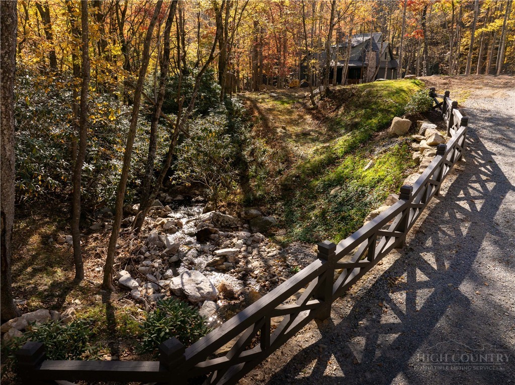Set along a scenic stretch of creek frontage in the growing Blackberry Homestead community, only ~10 minutes from Main Street, Blowing Rock, this is a limited opportunity. 5 of 17 homes already sold—The Corbin Cottage stands out as one of the final move-in-ready opportunities this year. Our newest design offers unmatched creek views, main-level living, and exceptional outdoor space. Blending classic character with a clean, modern edge, perfectly positioned to capture what may be the best creek view in the community. Upon arrival at the nostalgic rocking chair front porch designed for comfort and livability, the home welcomes you through a formal foyer with a well-appointed laundry area, pantry, and powder room—creating a practical and organized entry point. The main level features a true primary suite with direct access to the outdoors, offering a private retreat with the sights and sounds of the creek just beyond your door. Upstairs, two guest bedrooms and a full bath provide ideal accommodations for family or visitors, along with ample storage for linens and seasonal items. What truly sets this home apart is its outdoor living. Expansive covered porches at both the front and back offer multiple spaces to gather, but the rear porch is the showpiece—complete with a wood-burning fireplace, built-in wood storage, and enough space for both a full living area and dining setup. It’s even stubbed for your grill, making it ready for effortless entertaining. From here, you’ll enjoy unmatched views and the calming sounds of Blackberry Creek. Additional features include covered parking for two vehicles, with a one-car garage and an attached carport for added convenience. If you’ve been searching for new construction, intentional design, and a truly special creekside setting within a cohesive neighborhood, schedule your private showing today or call to learn more—this is one of the last opportunities for Summer 2026 completion.