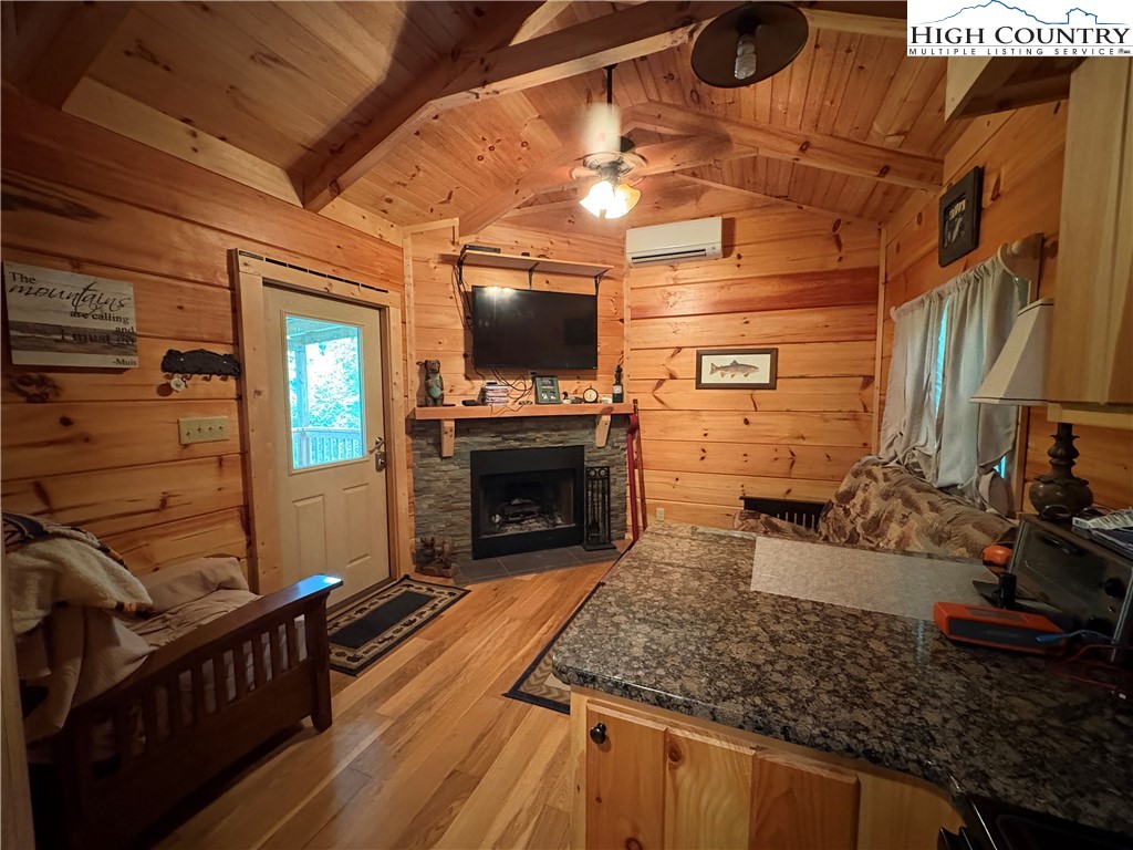 Escape to the mountains with this cozy 399 sq. ft. park model cabin situated on approximately one acre of land (additional acreage available if desired). Enjoy peaceful surroundings and a seasonal view of Helton Creek, all with easy access from NC Hwy 16 North. The property is fully equipped with water, septic, internet, and power already in place. A local surveyor has the property scheduled for completion in December, and the final acreage will be determined before closing. Inside the cabin, you’ll find: 1 bedroom with washer and dryer Sleeping loft for extra guests Full kitchen and cozy living room Fireplace for those cool mountain evenings Two mini-split systems for year-round comfort Outside, the property includes a storage building and plenty of space to enjoy the outdoors. Whether you’re looking for a mountain getaway, rental opportunity, or full-time tiny home, this cabin offers the perfect blend of comfort, convenience, and rustic charm.
