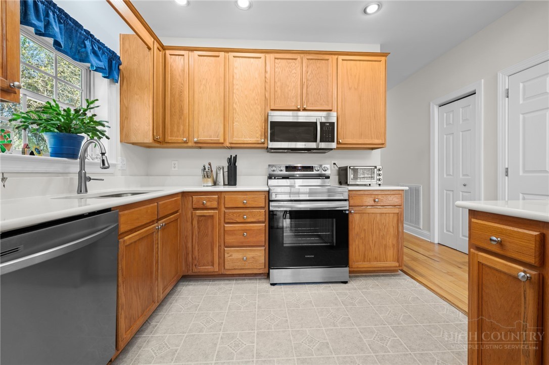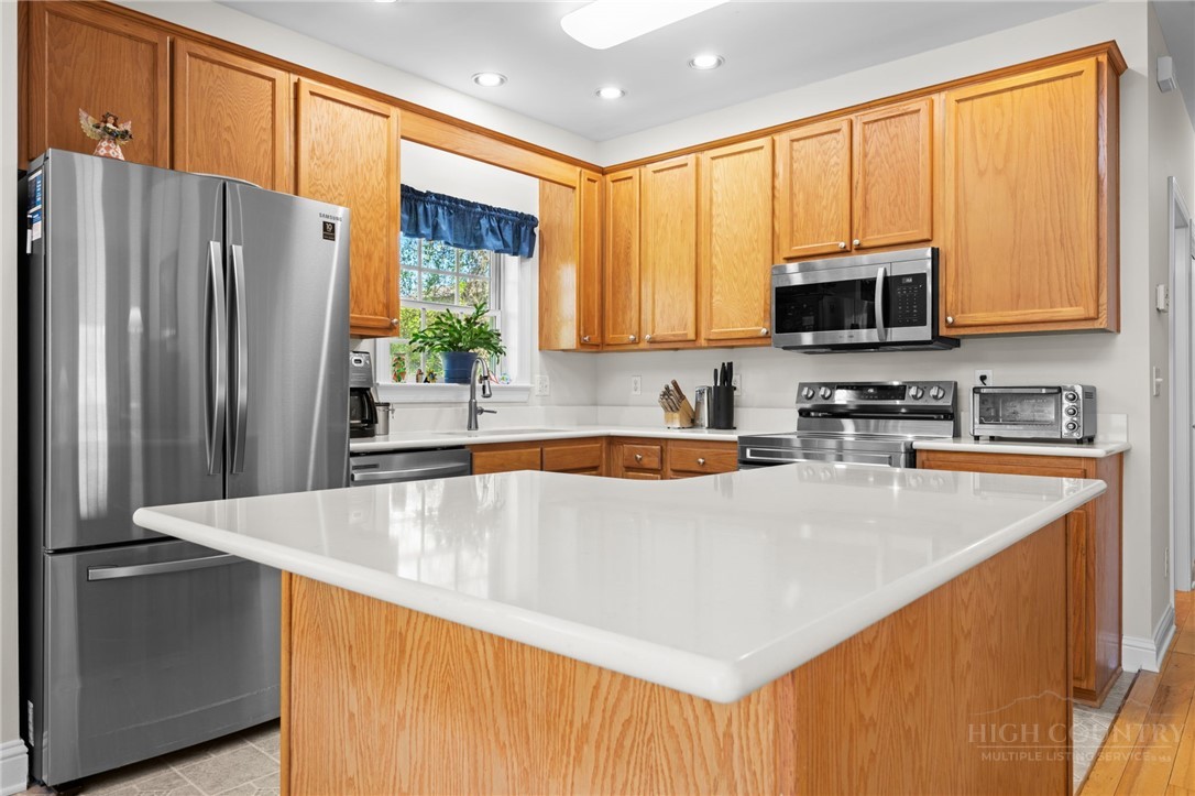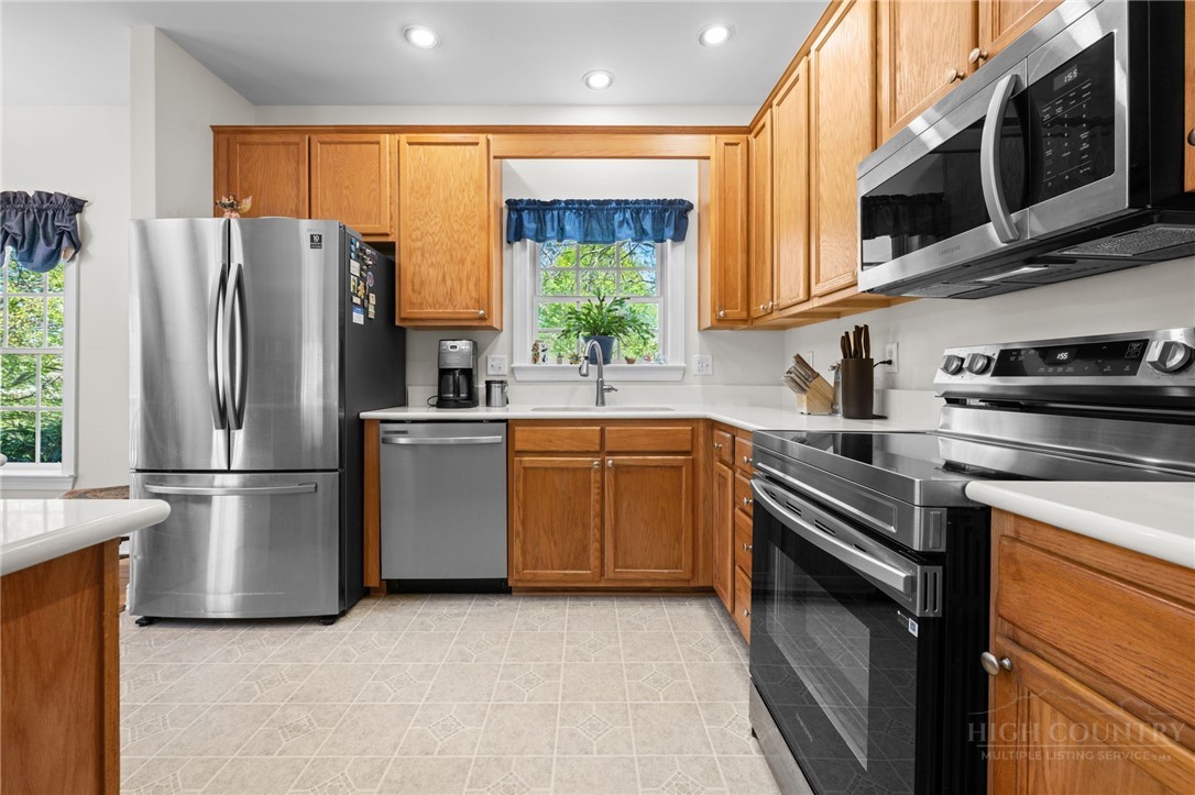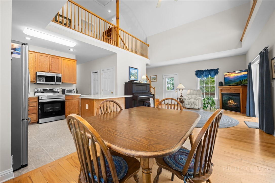Beautifully Maintained & Centrally Located Boone Home! This well-cared-for home features 3 bedrooms, 4 bathrooms, and over 2,300 sqft of living space. Set on 0.6 acres, it sits atop a small knoll offering both privacy and ample yard space. The open-concept main level boasts a spacious living room with vaulted ceilings, a gas fireplace, and sliding glass doors that open to a spacious deck, perfect for entertaining or relaxing. The kitchen features new stainless steel appliances (2024), new countertops (2024), a large island, and dining space just off to the side. The main floor also features a primary suite with en-suite bath and walk-in closet, as well as a second bedroom and full bathroom off the hall. This level also includes the laundry room. Upstairs, you'll find an additional bedroom with en-suite bath, as well as a loft space with enough room for a small office or reading nook. The walk-out lower level features a large second living area for additional entertaining or play space, along with another full bathroom. From here, you can access the oversized 2-car garage, as well as enjoy direct access to the outside. Large sloping yard and plenty of deck space for those who wish to enjoy time outdoors. New roof installed in 2024. Well-cared-for home in a desirable Boone location!