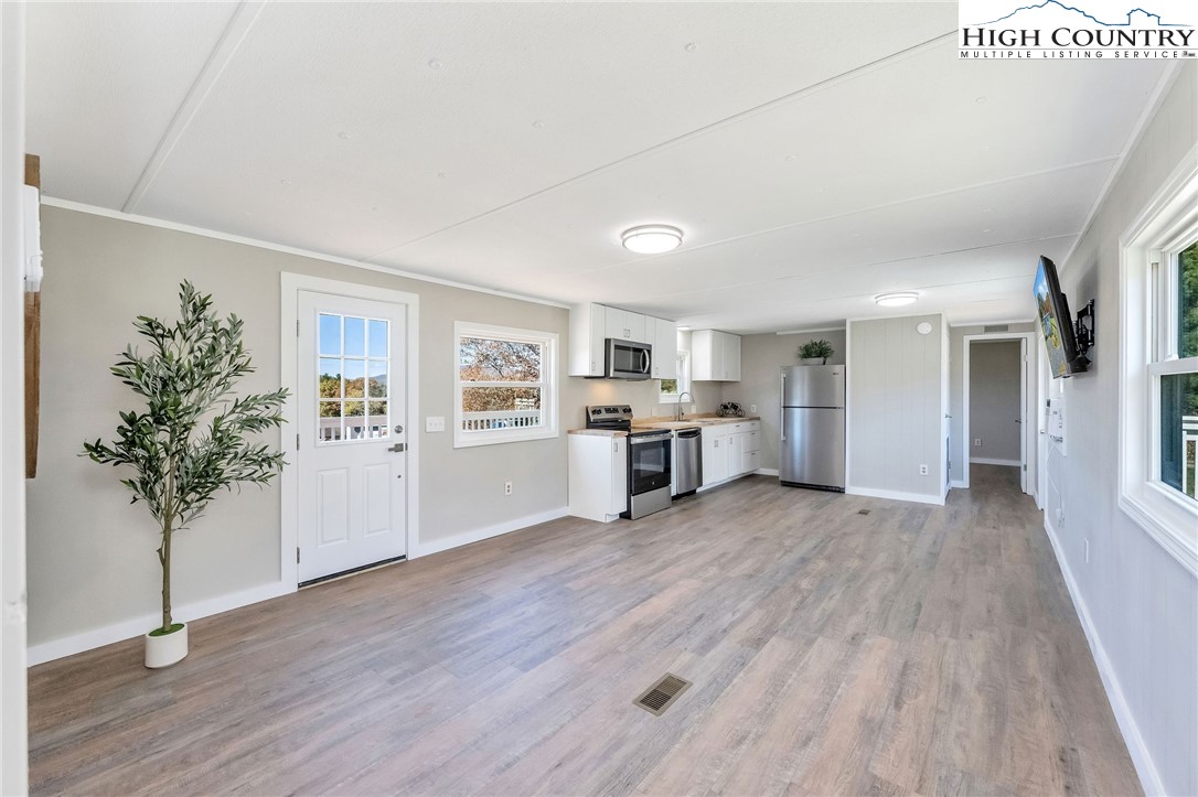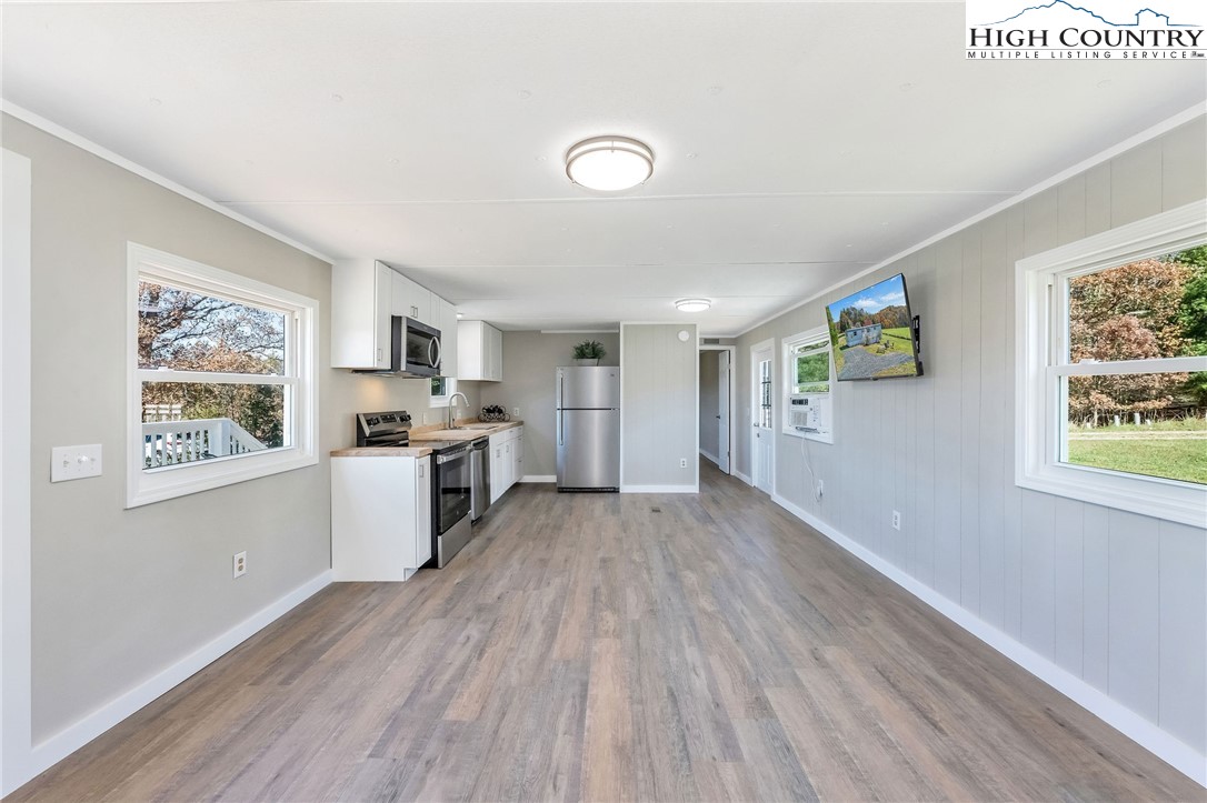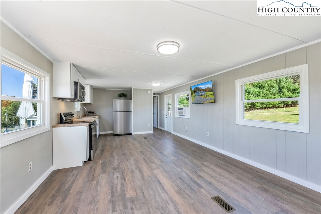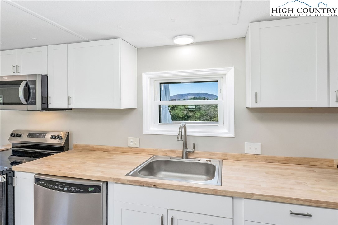 Think new! Think beautiful! This home has been completely renovated! The kitchen and bathrooms have been entirely updated. New kitchen and bath cabinets! New tub/showers! New flooring, paint, and lighting! New deck! New appliances! Did we say think new? Now think complete privacy! Enjoy the beautiful and peaceful setting. Enjoy the adjacent farm pasture. Enjoy the deer retreat at dusk. How about the view from your living area, kitchen and master bedroom! You will gaze at Mount Jefferson, big and bold. There are nine more identifiable mountain peaks from your new home site. Want more? The New River State Park is less than 0.2 miles away! We expect that your family and friends will be spending time canoeing, kayaking and tubing! This home is perfect as your private residence, second home retreat or vacation rental. Your choice!!