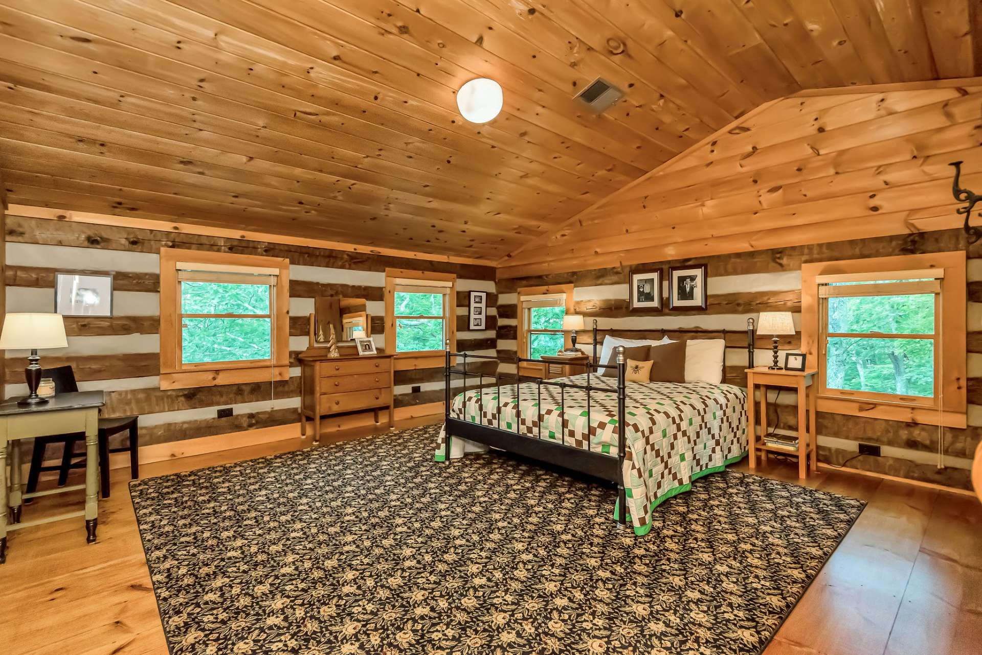 Wake up to the view of Grandfather Mountain while enjoying your morning coffee on the covered back deck of this exquisite antique log cabin. This cabin masterfully combines rustic charm with modern conveniences, creating an inviting retreat. Upon entering the front door, you are greeted by a spacious foyer and a convenient 1/2 bath. The great room seamlessly integrates the kitchen, dining, and living areas, making it ideal for hosting gatherings. The chef's kitchen presents commercial-grade appliances and an expansive island. The main level boasts a luxurious primary suite with stunning mountain views to greet you every morning. The private en-suite bath is a haven of relaxation, offering granite double sinks, a tiled shower, and a soaking tub. The upper level is designed with guests in mind, featuring 2 spacious bedrooms and a full bath. Each room provides comfort and privacy, making your guests feel right at home. The lower level is a versatile space, featuring an expansive family room. Also includes another full bath and 2 bonus rooms currently set up as bedrooms, ideal for accommodating additional guests. The wrap-around covered porches and expansive outdoor living room make this cabin an entertainer's dream. Whether hosting a summer BBQ or enjoying a quiet evening by the wood-burning outdoor fireplace, you'll love spending time outdoors. The fenced backyard is ideal for gardening and/or pets. A detached garage offers even more space for guests, featuring a sitting room, sleeping area, and full bath, creating a private guest suite. The lower level of the garage provides parking for 2 cars and room for a workshop, catering to all your storage and hobby needs. Every detail of this home has been thoughtfully designed and meticulously maintained, making it a truly exceptional property. With its stunning views, lavish amenities, and charming rustic appeal, this antique log cabin is the perfect mountain retreat for making lifelong memories with family and friends. Call today to schedule your tour of our listing B105!