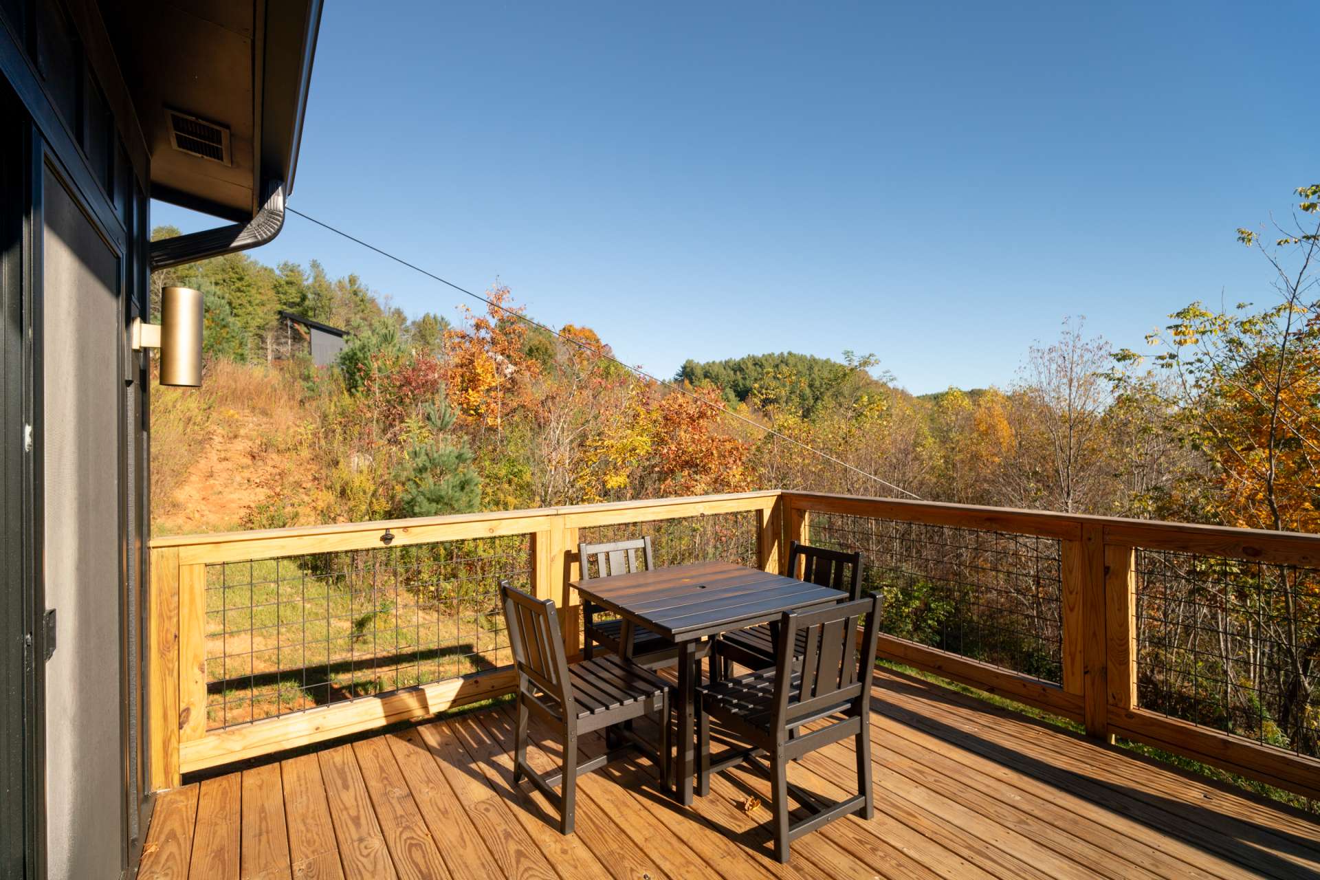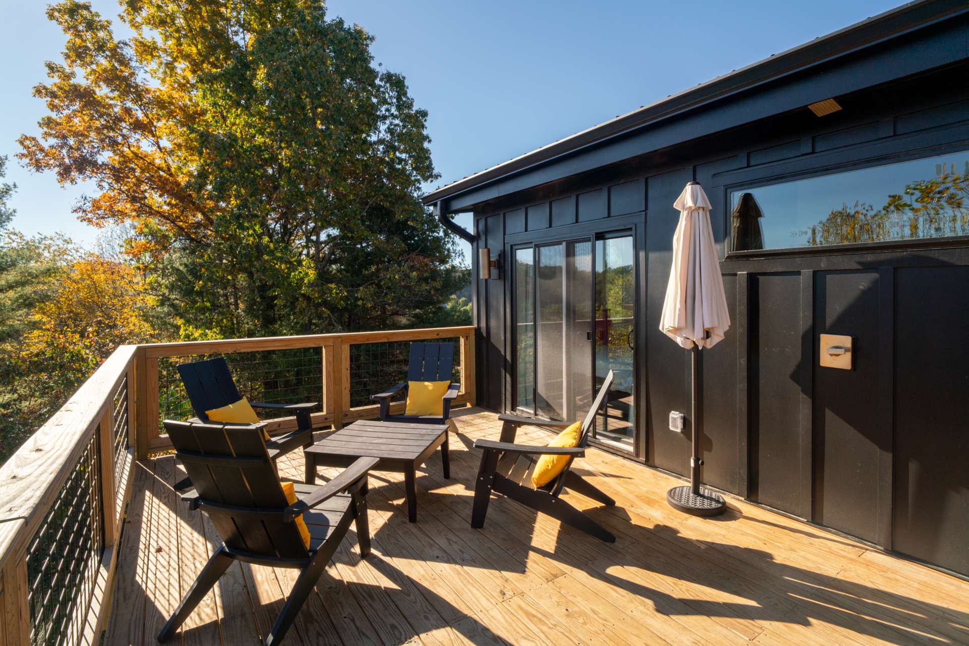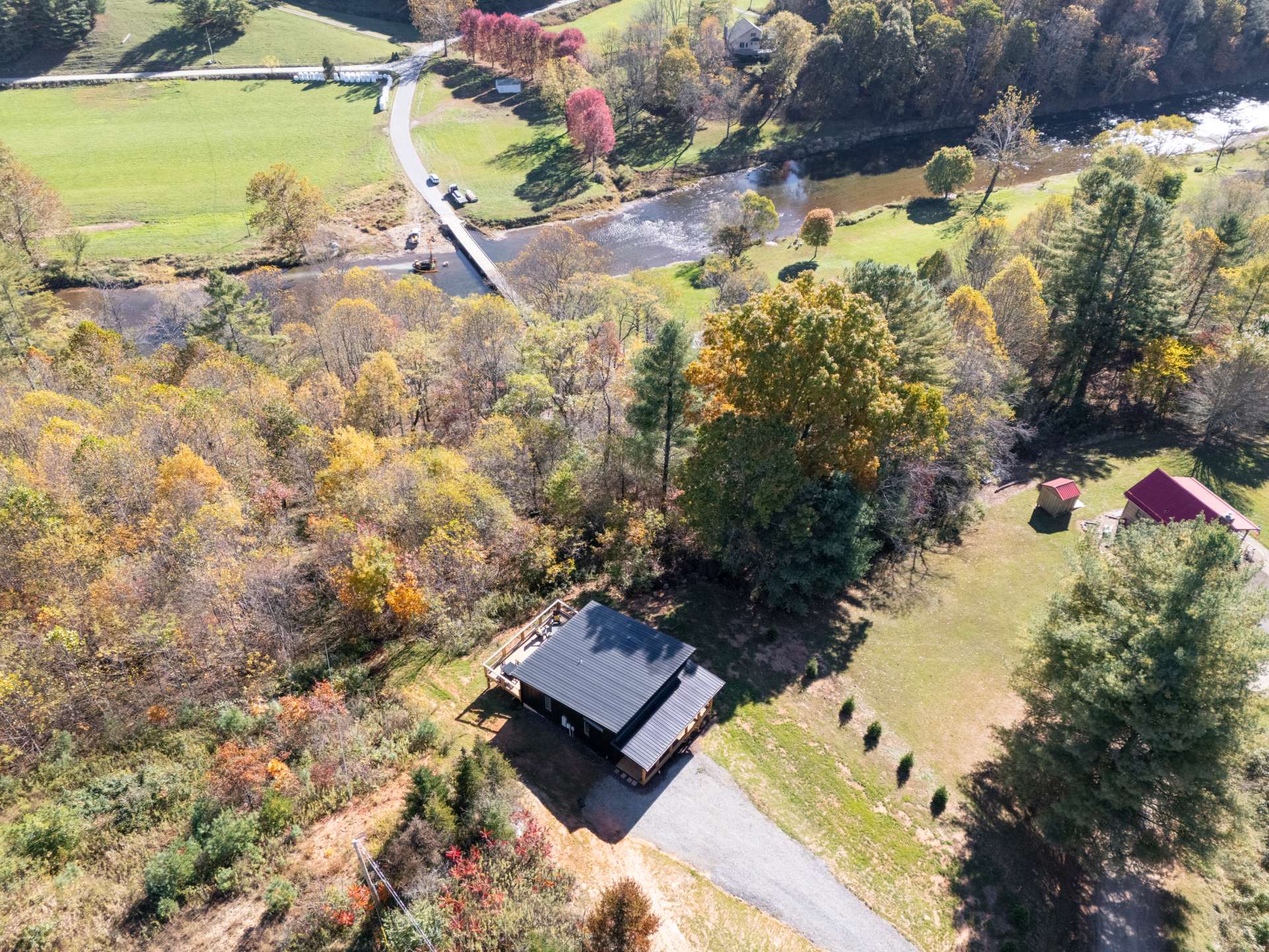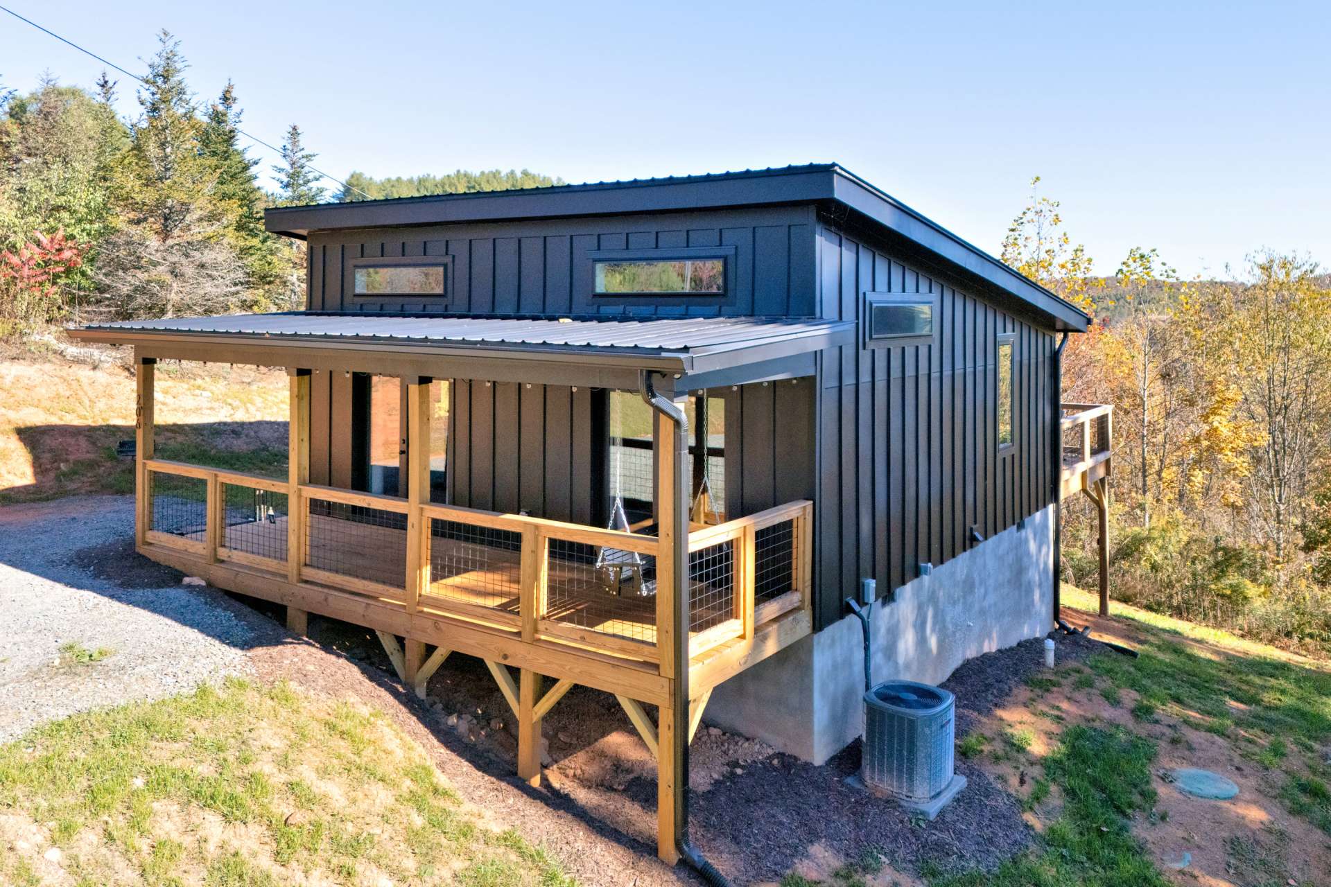 This modern mountain home maximizes light and views. This 2-bedroom and 1 Bath home with large windows and vaulted ceilings throughout. Completed in 2025, the modern decor creates a sense of calm and allows you to focus on relaxation. Enjoy the views from both inside the home and outside on the 300 sq ft deck overlooking rolling mountains and long-range peaks in the distance. The front porch is a great spot for sunsets, and the adjacent fire pit area with Adirondack chairs is a great place for connecting with friends and family while roasting marshmallows and stargazing. The home features an open concept living room with dining and gourmet kitchen, all with vaulted ceilings. The kitchen has expansive cabinet space, GE stainless steel appliances, and quartz countertops. The two equally sized bedrooms feature nice-sized closets and sliding doors to access the deck. The bathroom is sleek and modern with quartz countertops and porcelain tile floors, and a shower. The home is fully furnished and comes complete with a fully stocked kitchen and bed, and bath linens. Short-term rentals are allowed, and the home is currently on AirBNB. The New River is within walking distance and is well known for its multiple recreation opportunities, including kayaking, tubing, and fishing. Call for more information or a private viewing of our listing W142.